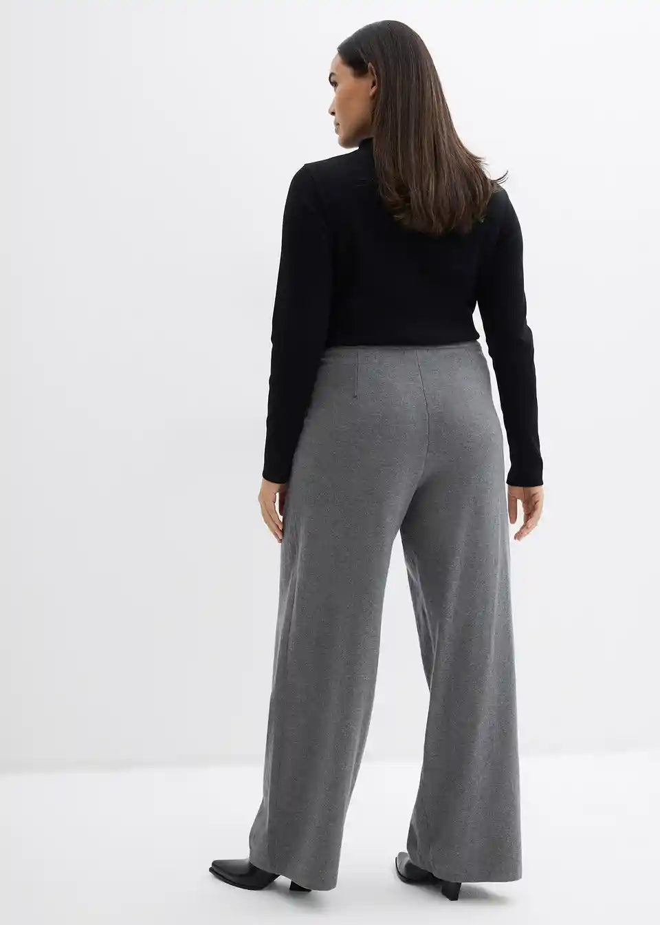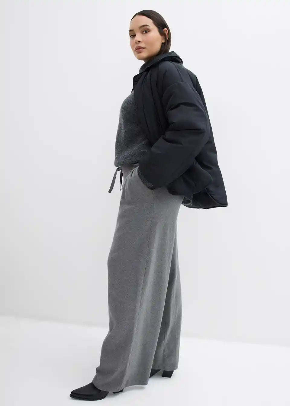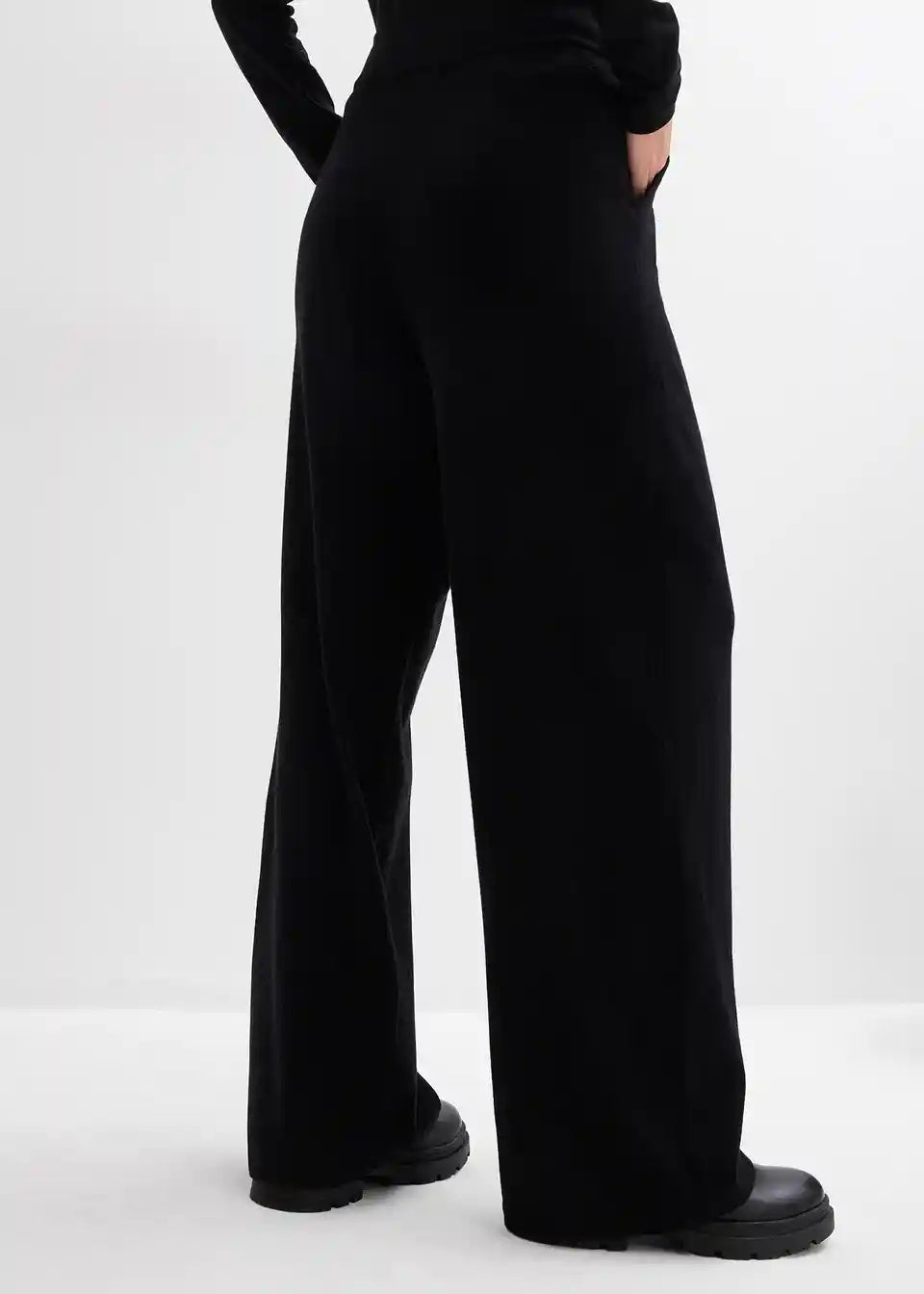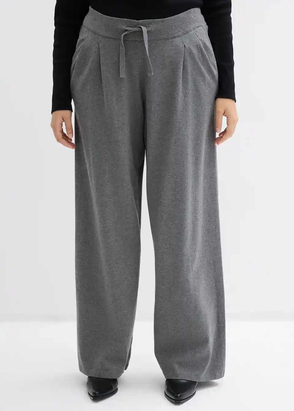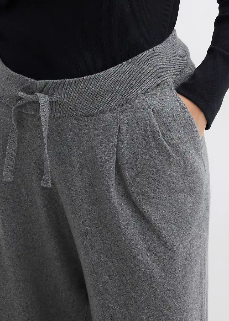 Pletene hlače s širokimi hlačnicami in elastičnim nastavljivim pasom s trakom za zavezovanje iz mešanice s kašmirom