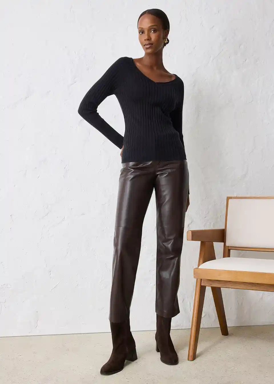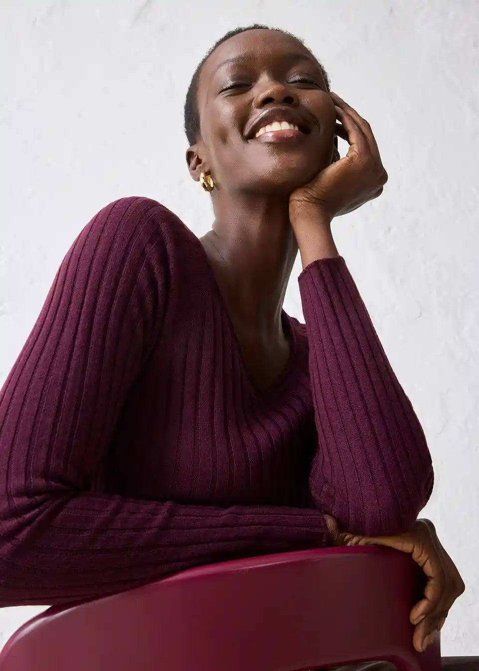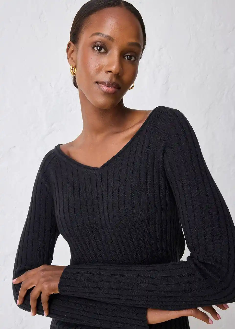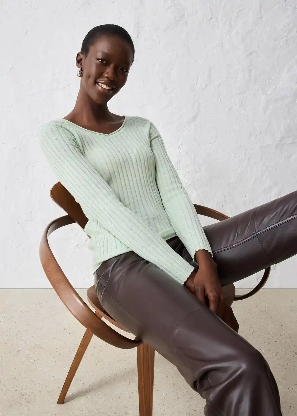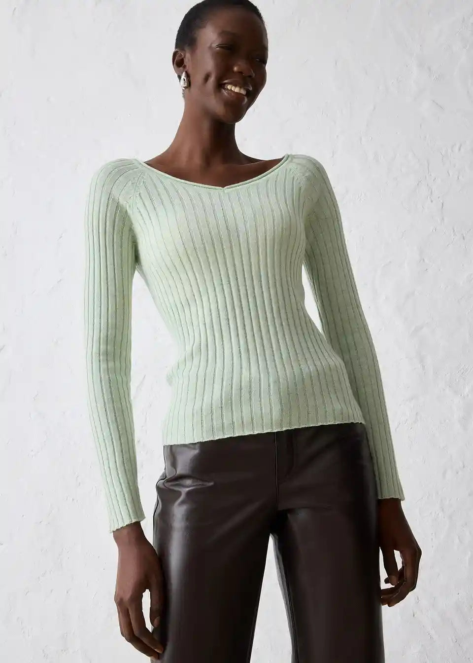 Mehek rebrast pulover iz merino volne