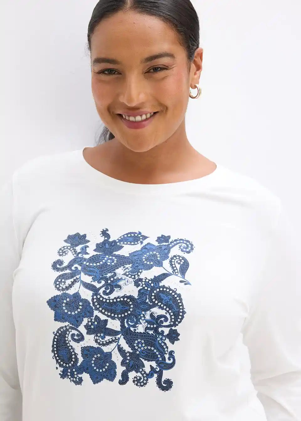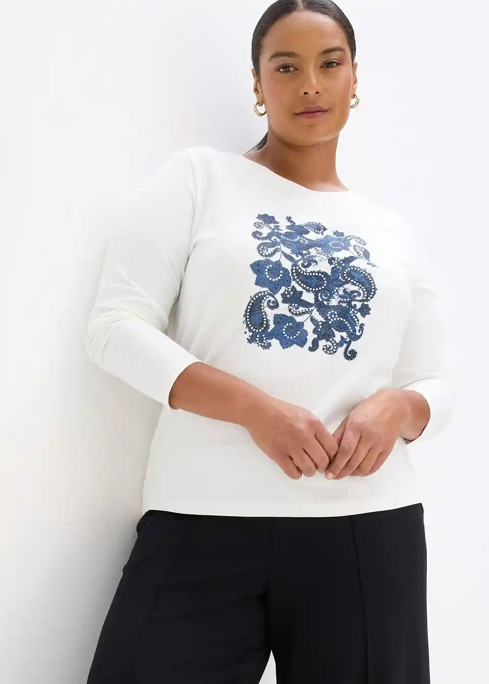 Elegantna majica z dolgimi rokavi in velikim potiskom