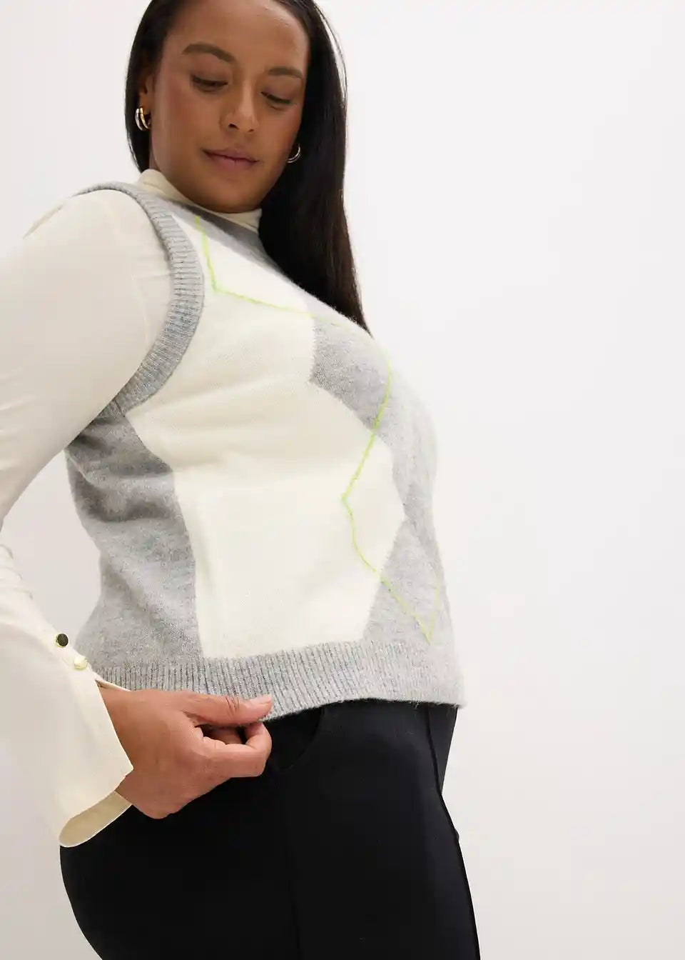 Eleganten brezrokavnik z brezčasnim vzorcem rombov