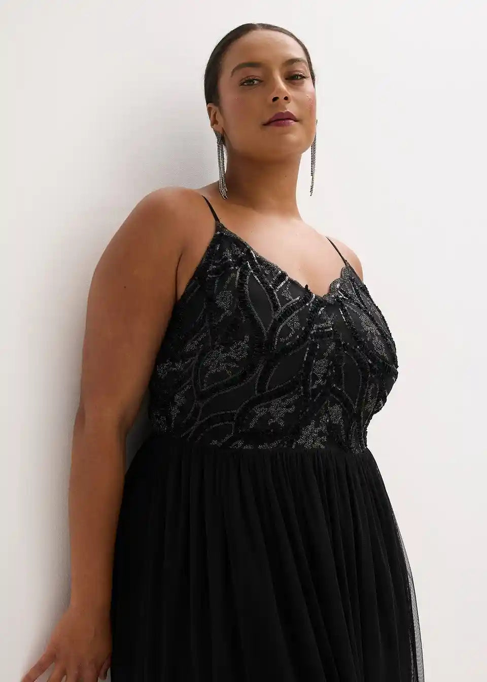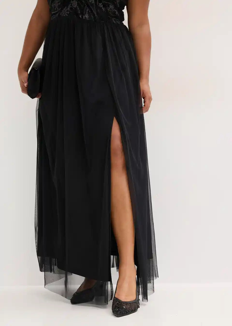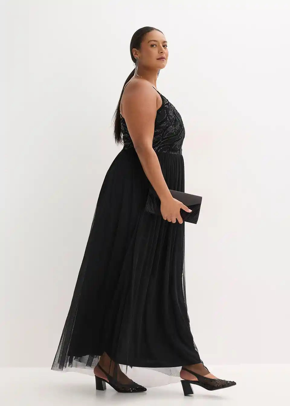 Očarljiva svečana obleka iz nežnega tila z nastavljivimi naramnicami