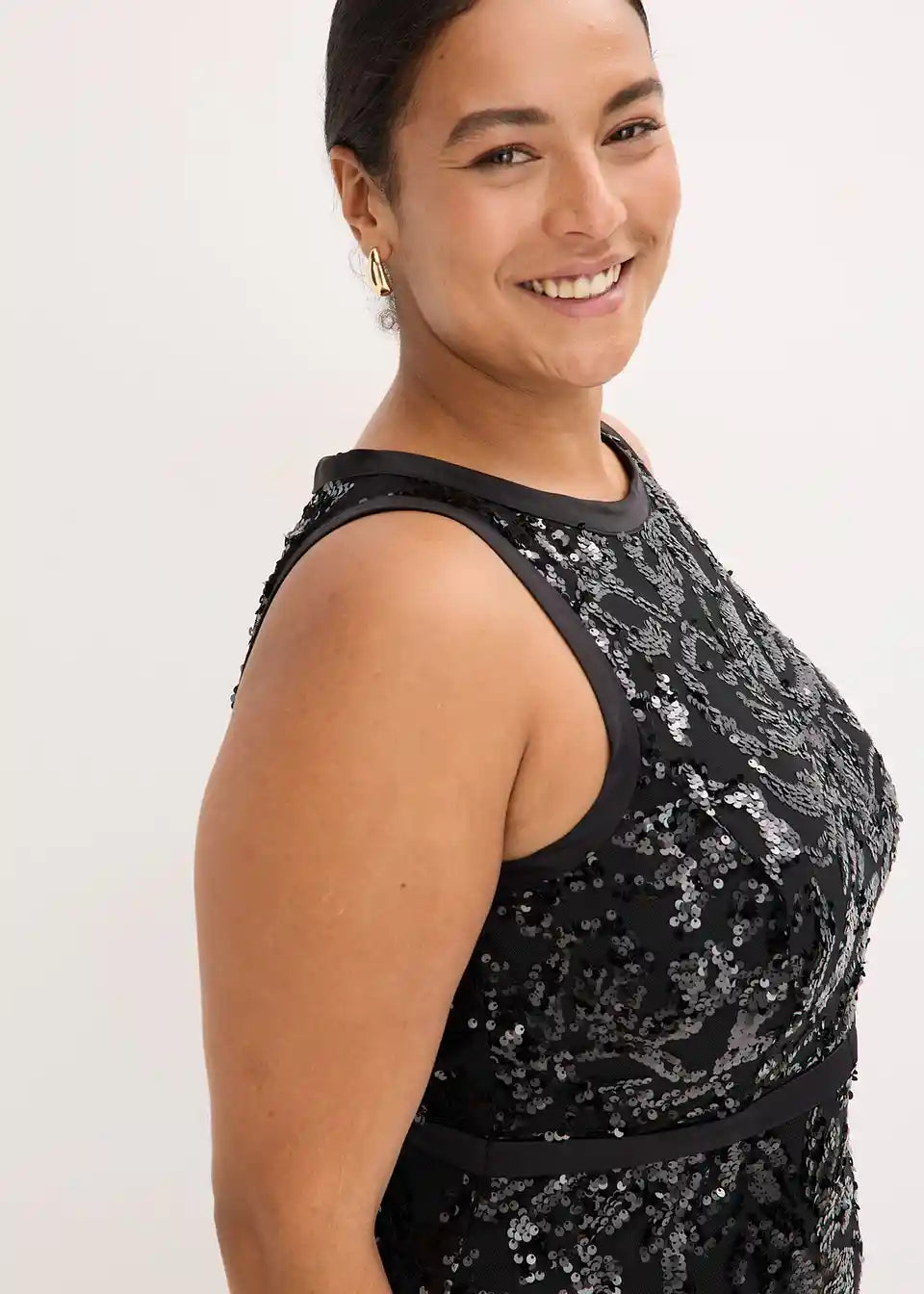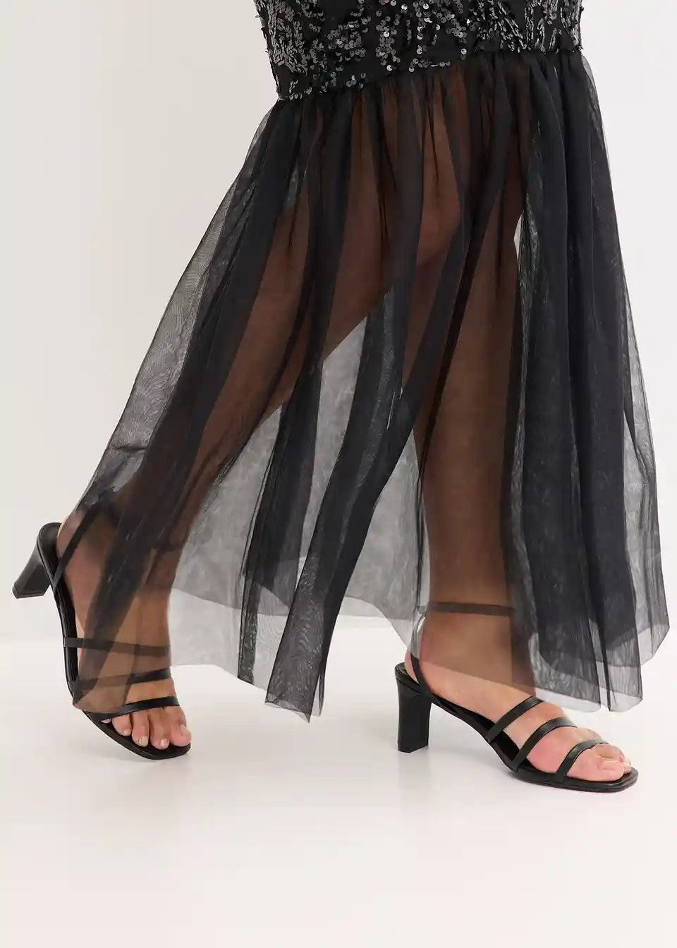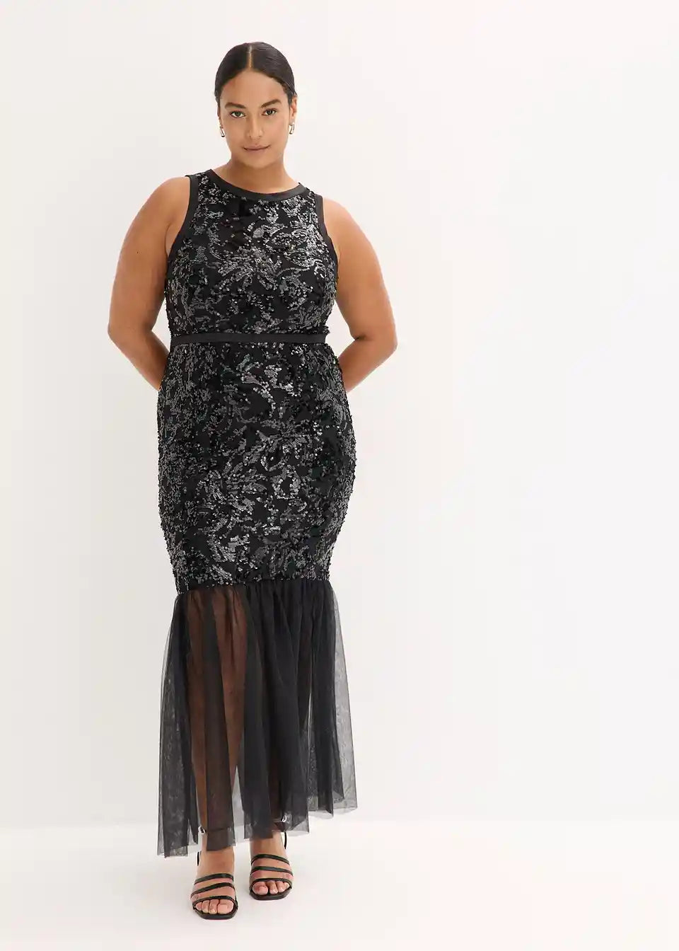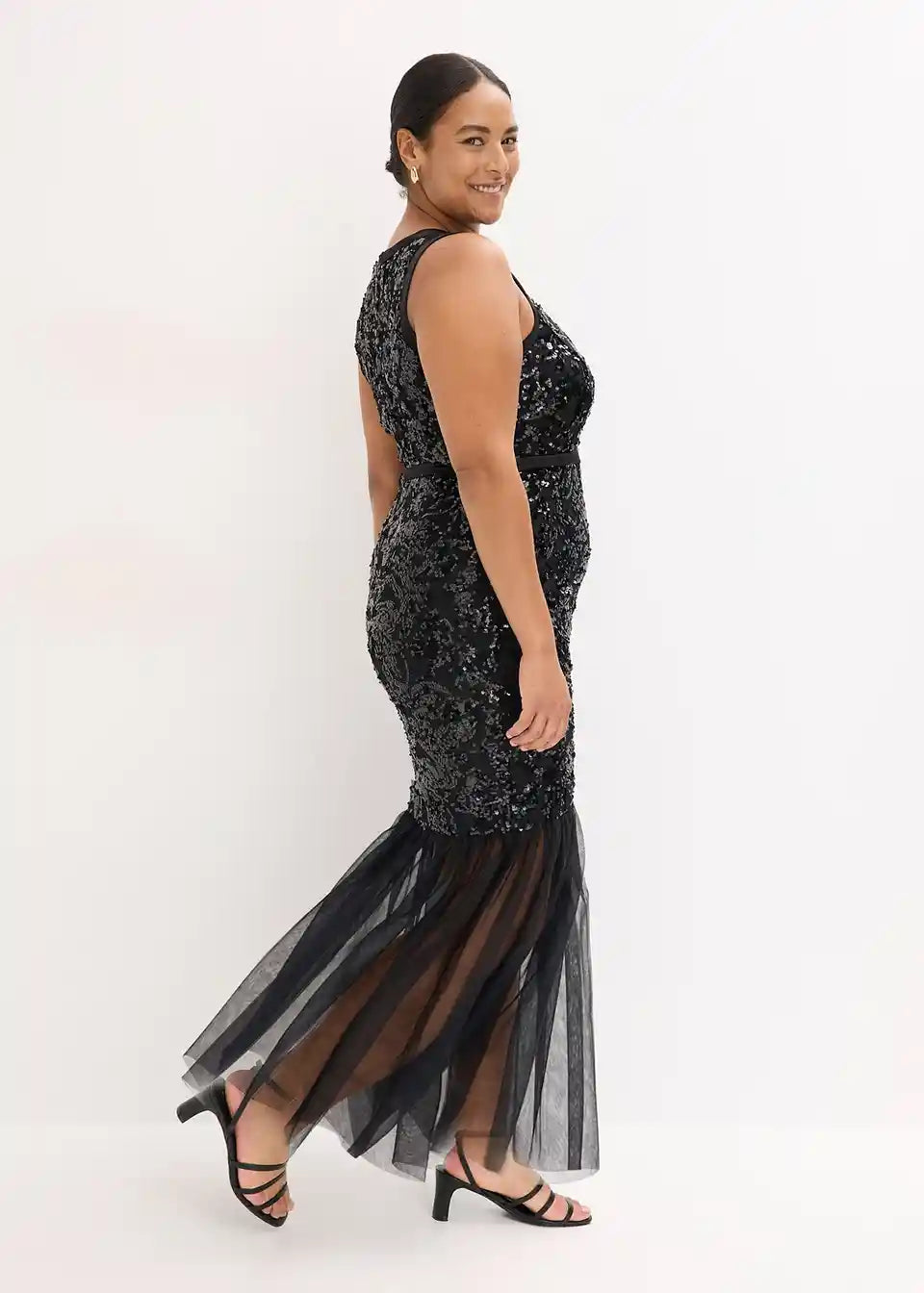 Moderno in ženstveno: očarljiva svečana obleka v stilu morske deklice z vezenino iz bleščic in volani iz nežnega tila