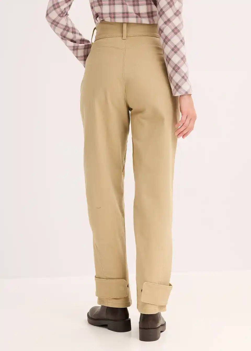 Moderne hlače v balonastem kroju iz kepra z visokim pasom in zapenjanjem z gumbi na spodnjem robu
