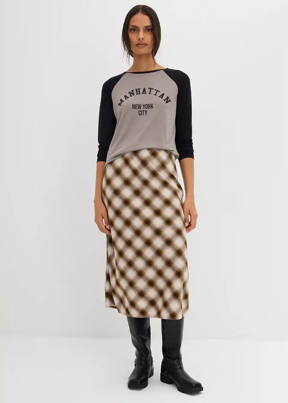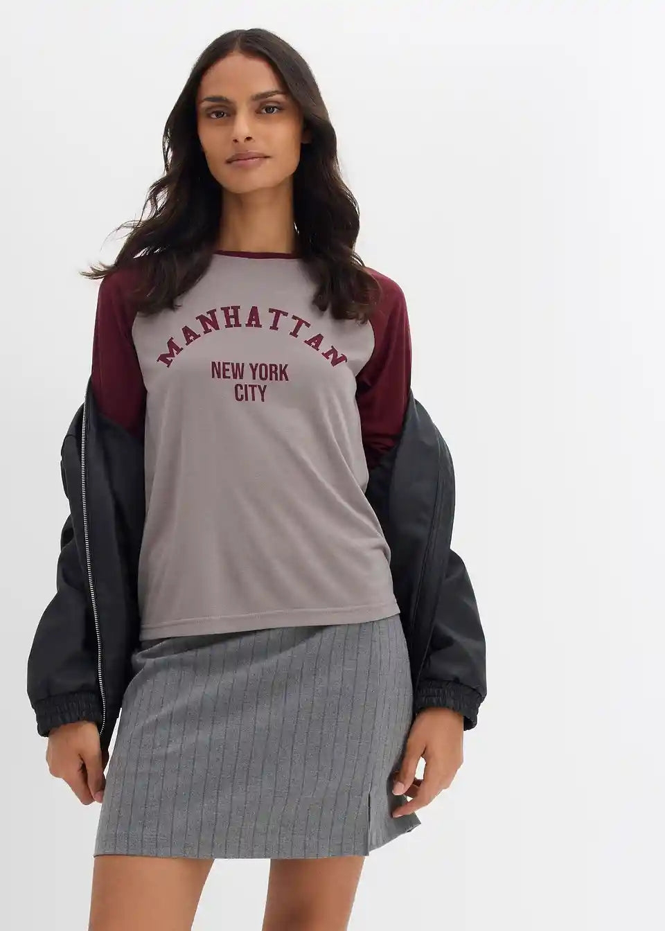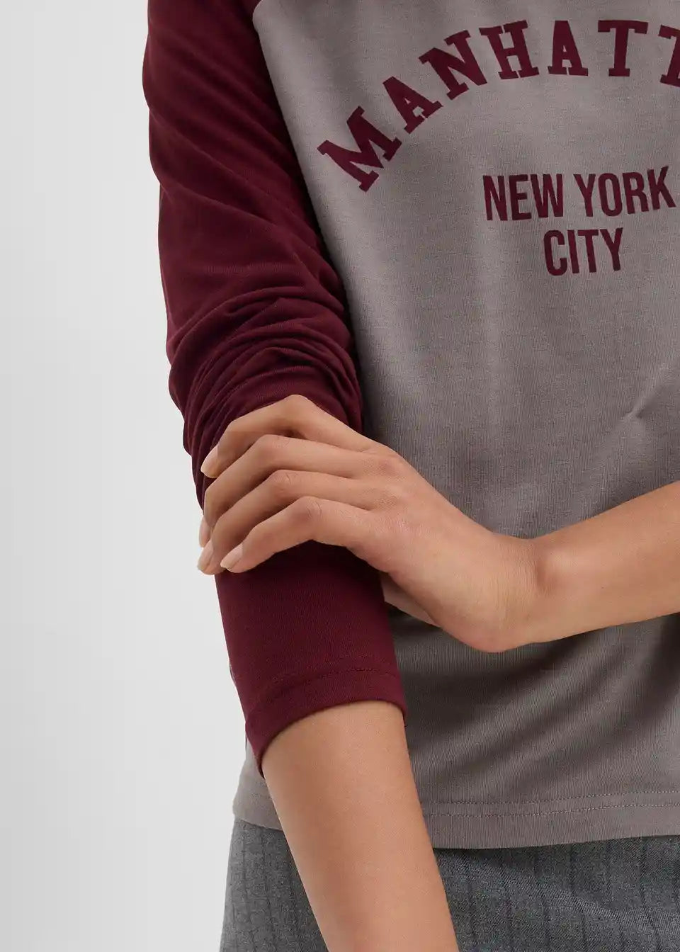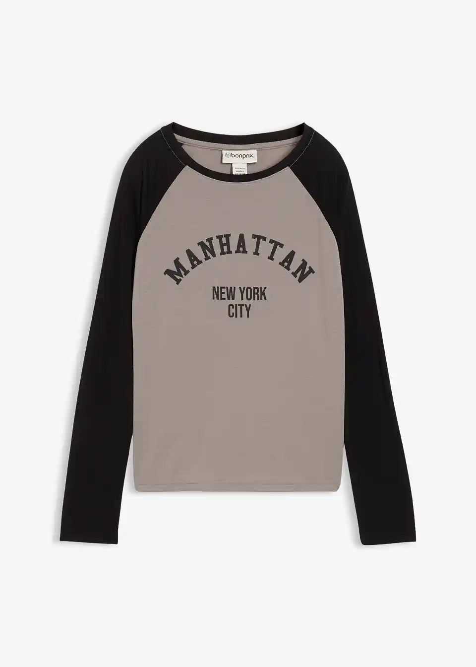 Udobna majica z dolgimi rokavi iz jerseyja s potiskom