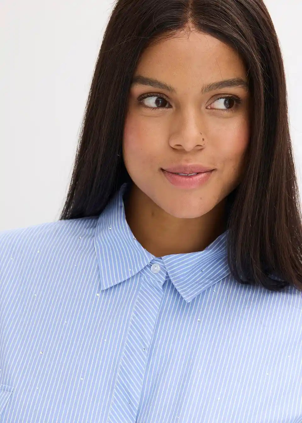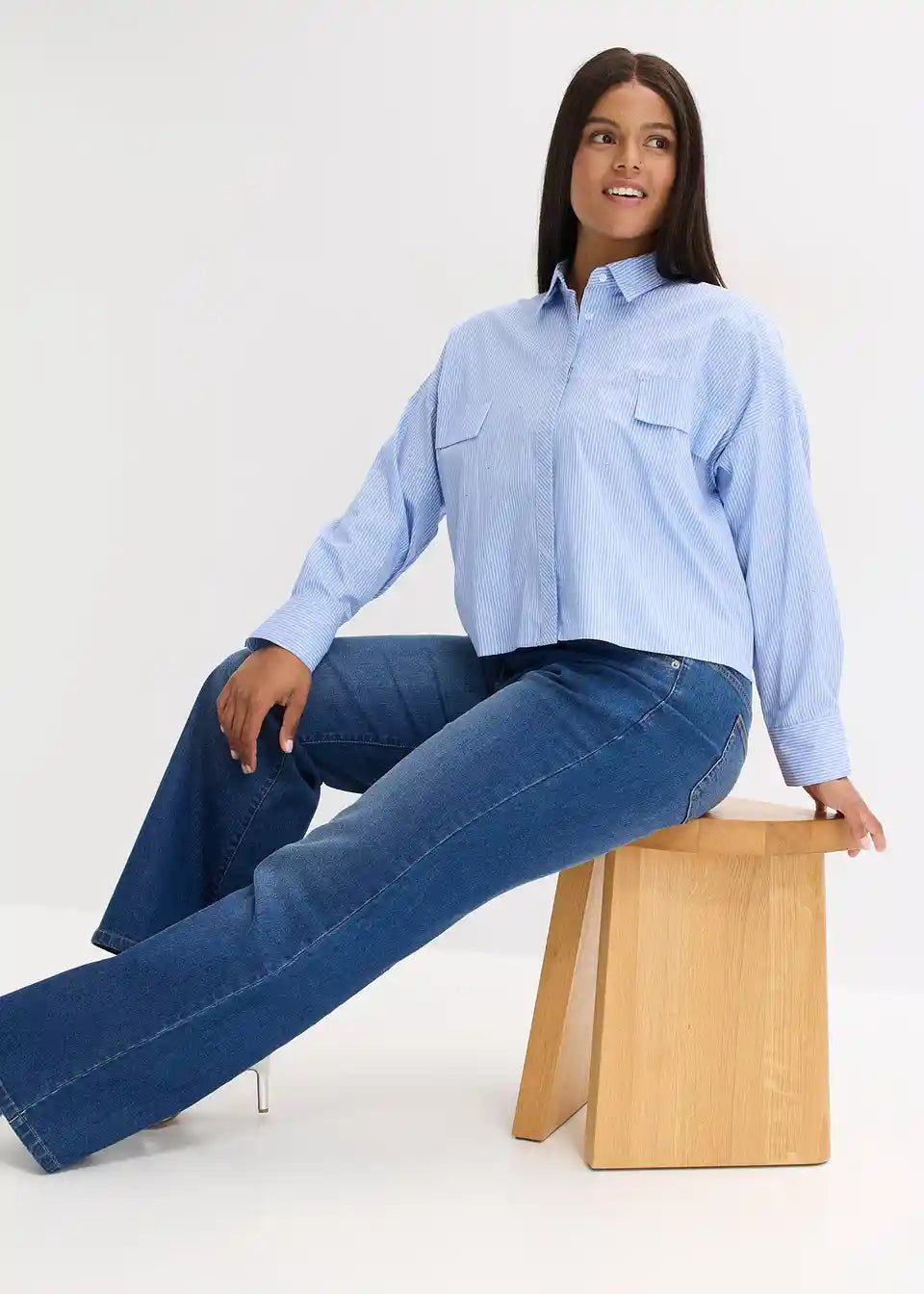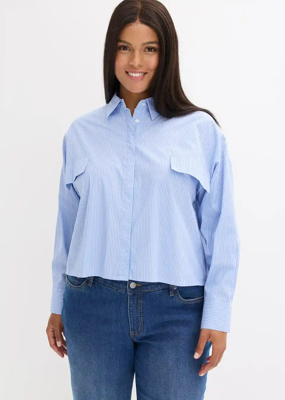 Kratka bluza s črtastim vzorcem z našitimi poklopci