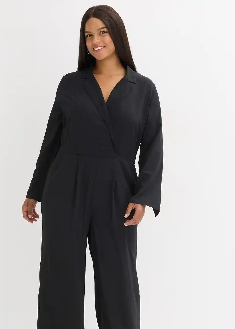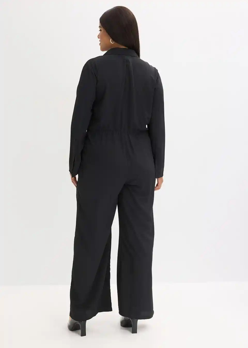 Kombinezon s fazona ovratnikom in vpeljano elastiko zadaj v pasu