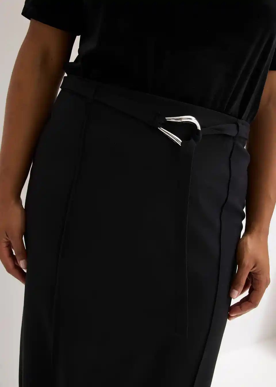 Dolg ozko krilo s pasom za zavezovanje in okrasno zaponko