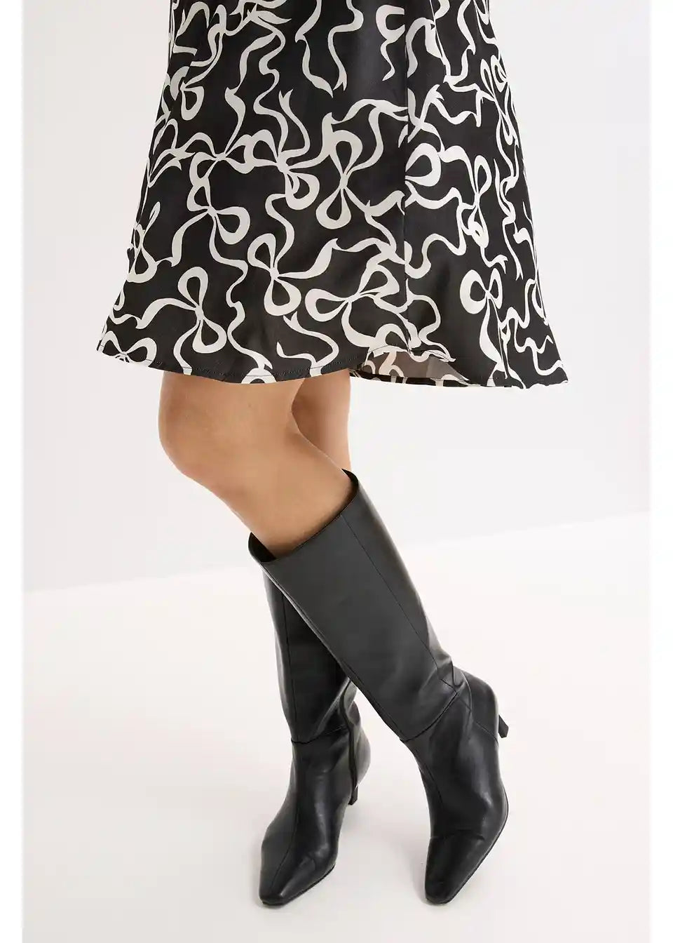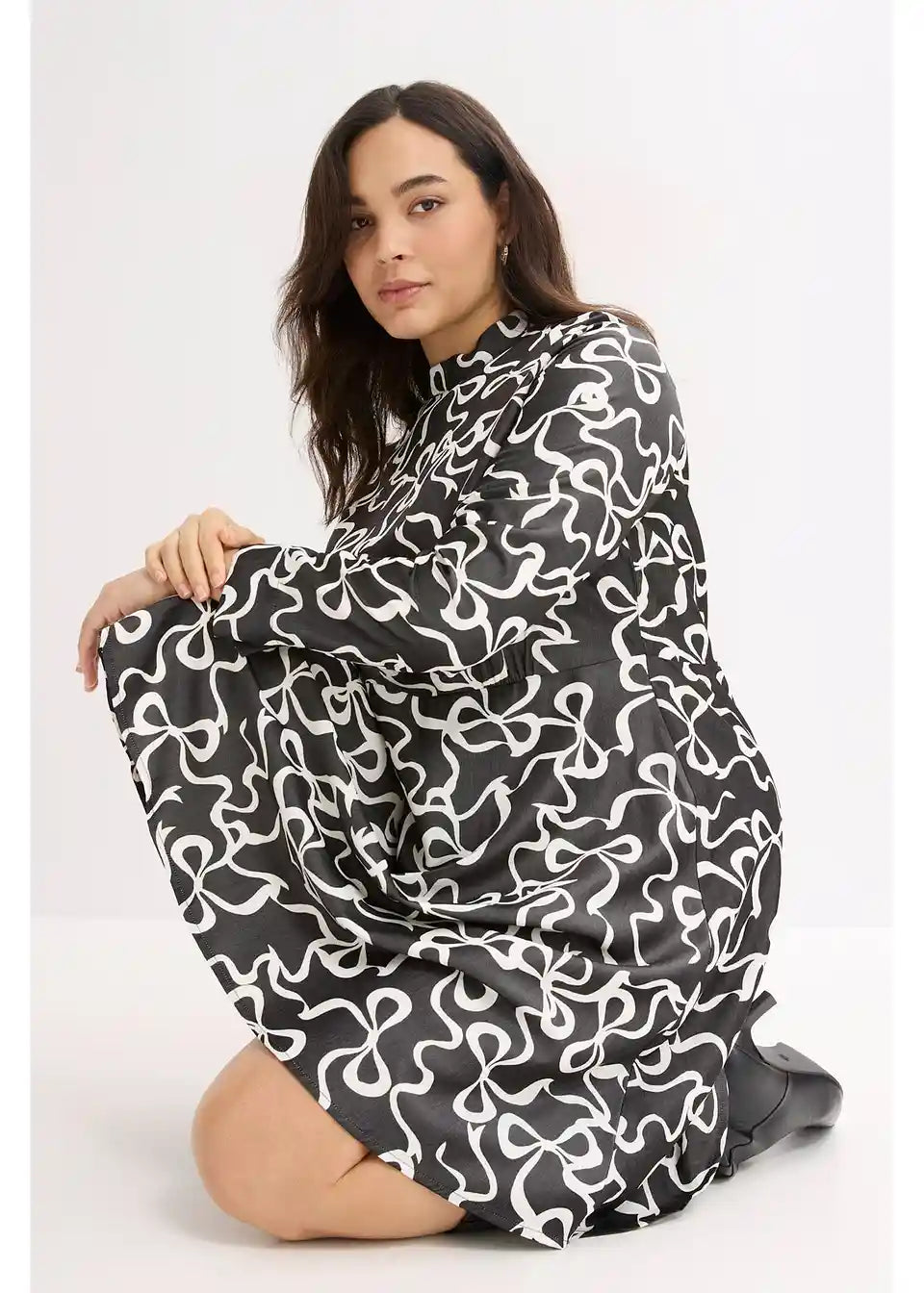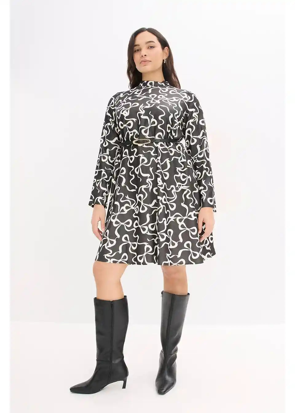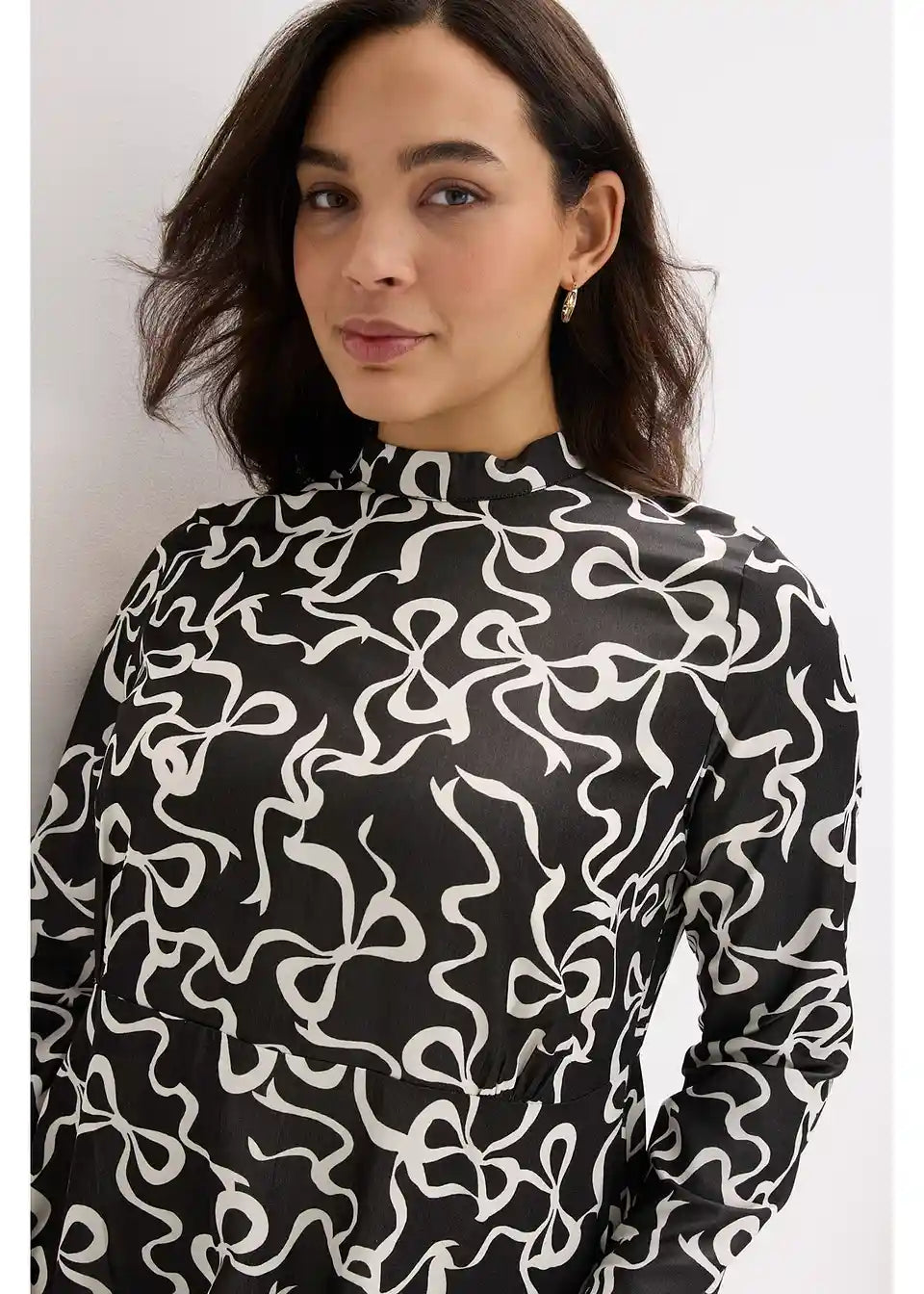Padajoča obleka iz satena s pokončnim ovratnikom