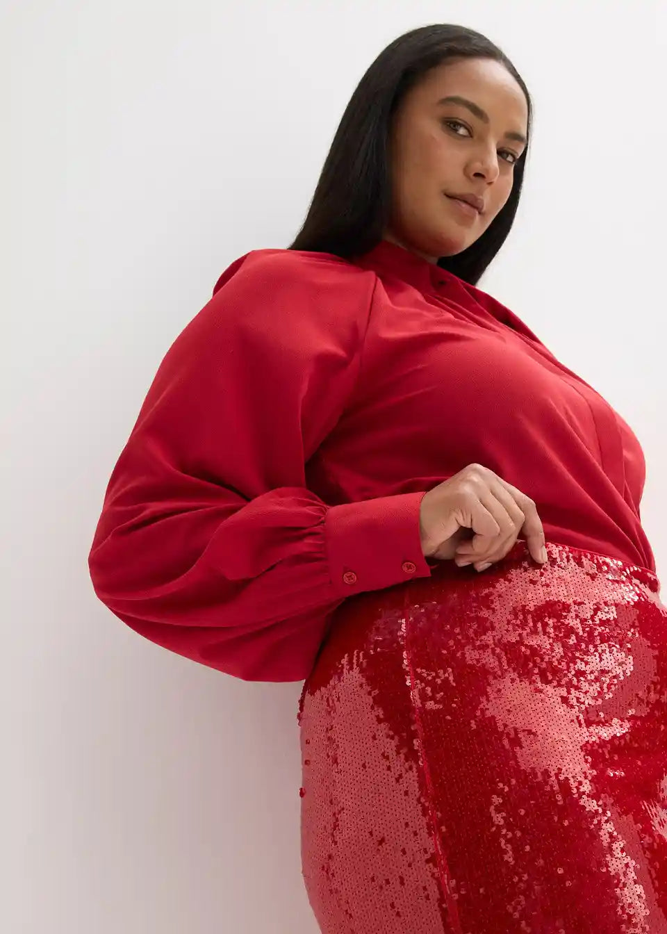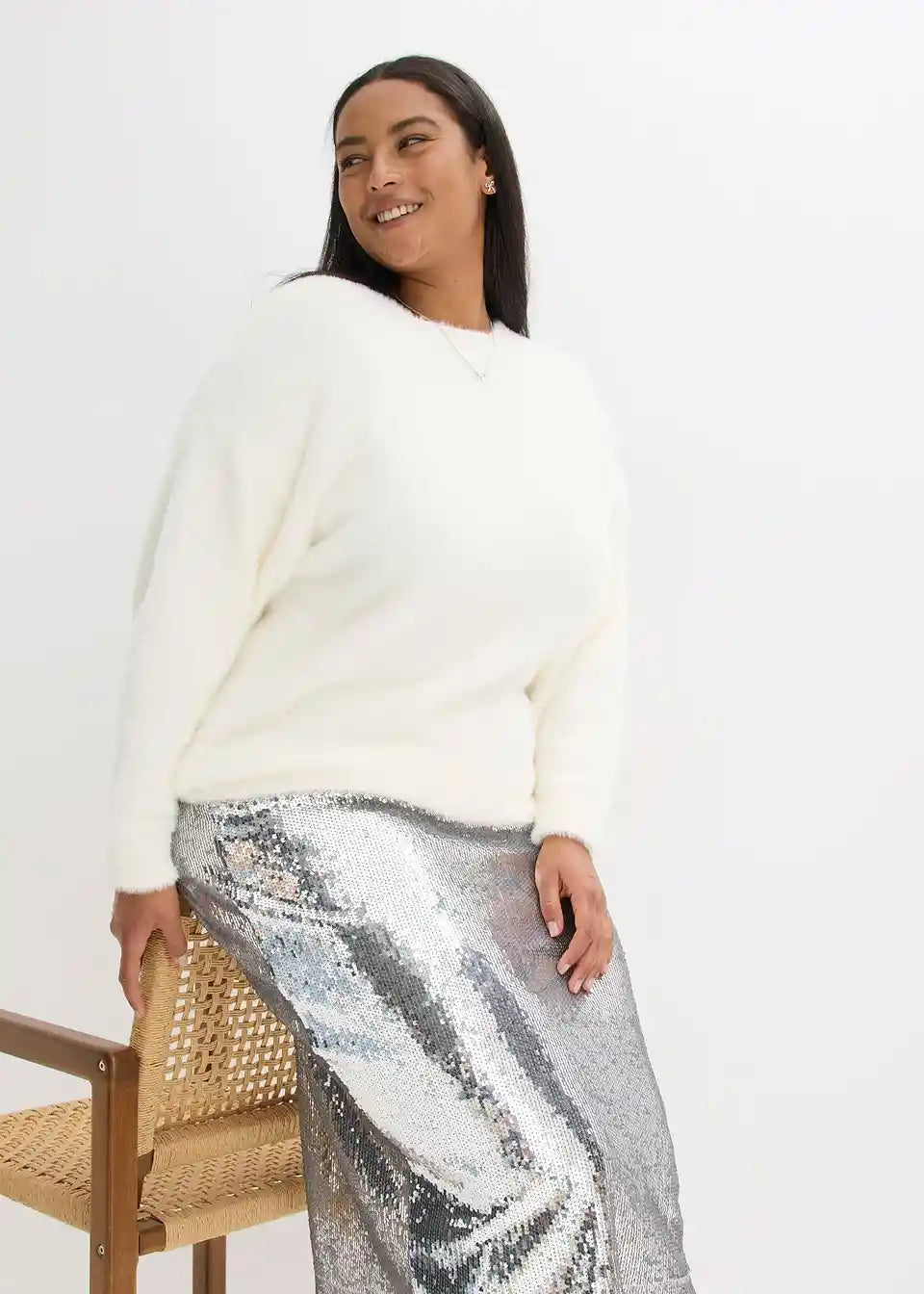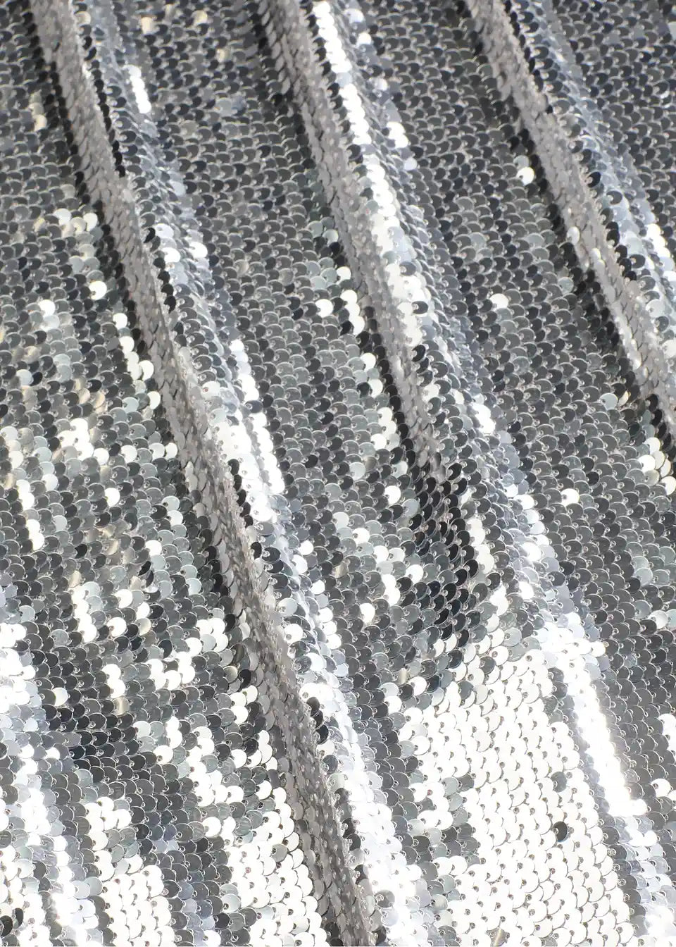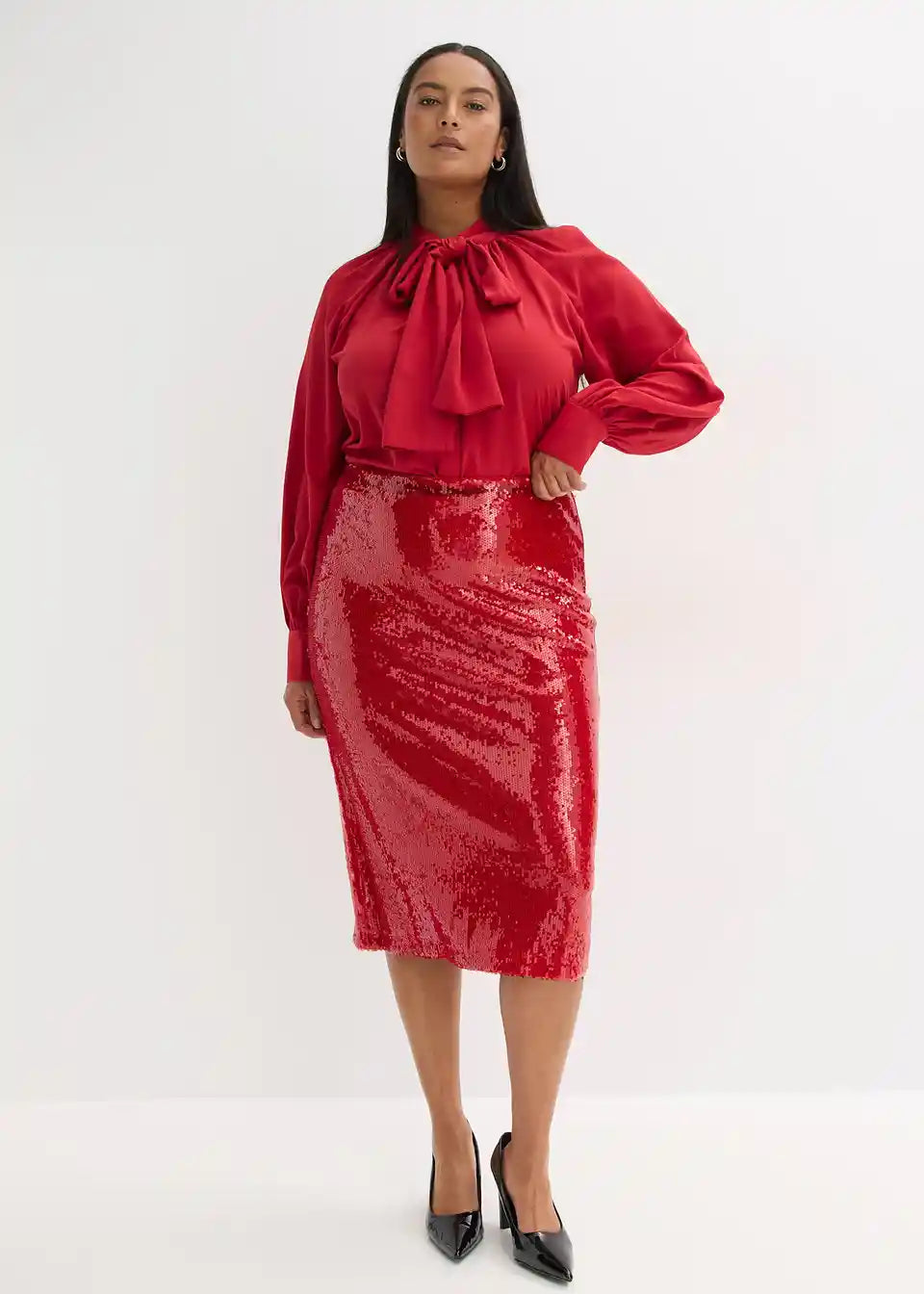 Modno krilo z bleščicami v midi dolžini z znotraj ležečo elastiko v pasu in razporkom zadaj na spodnjem robu