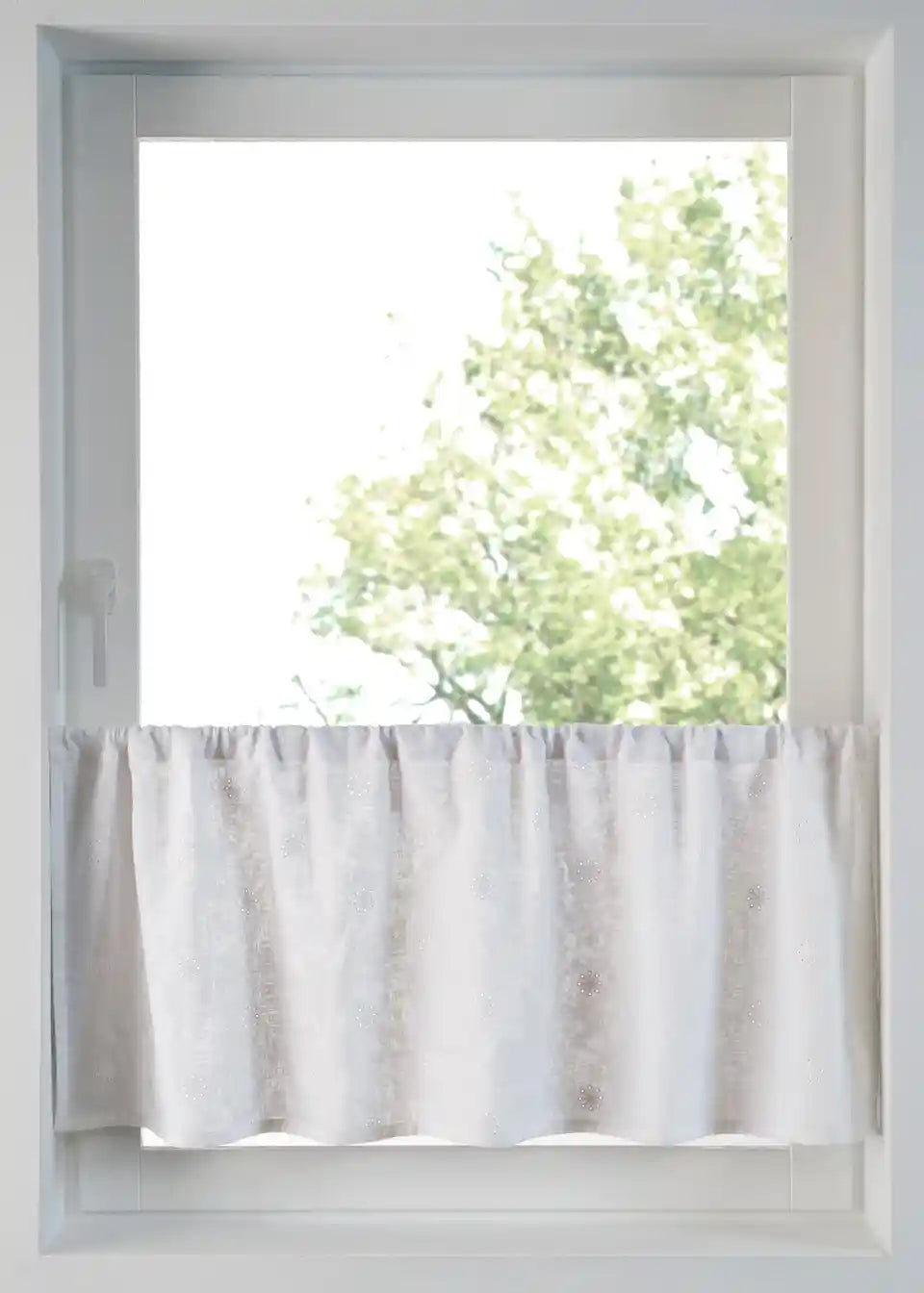 Dvoplastna polovična zavesa iz ekološkega bombaža z vezenino