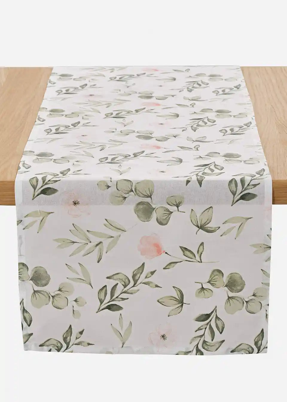 Tekač za mizo ima nežen tisk s cvetličnimi motivi. Nežno okrasi tvojo mizo in je izdelan iz visokokakovostnega bio bombaža.