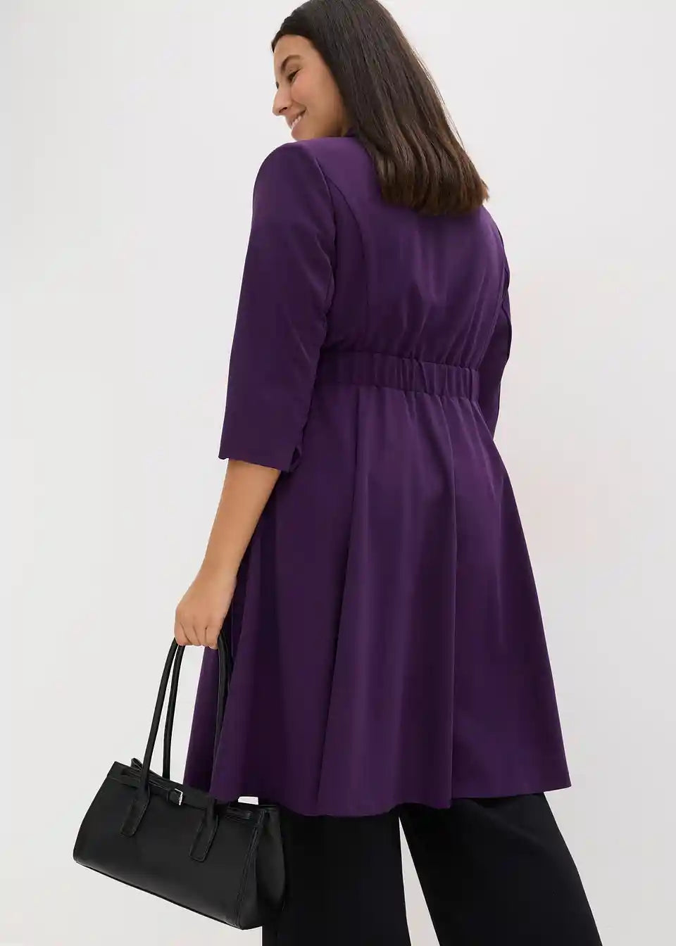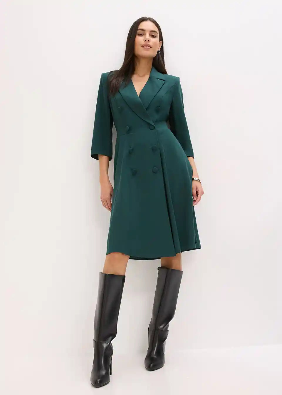 Elegantna obleka v kroju blazerja z razširjenim krilnim delom