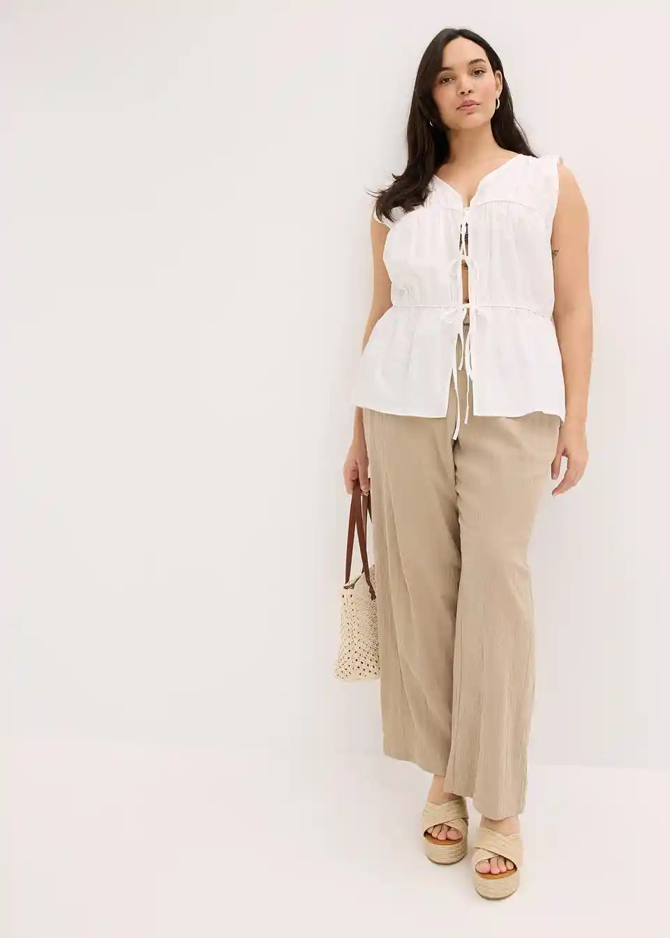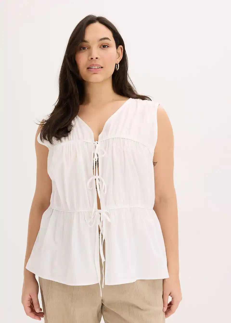 Razširjena bluza z okrasnimi trakovi za zavezovanje