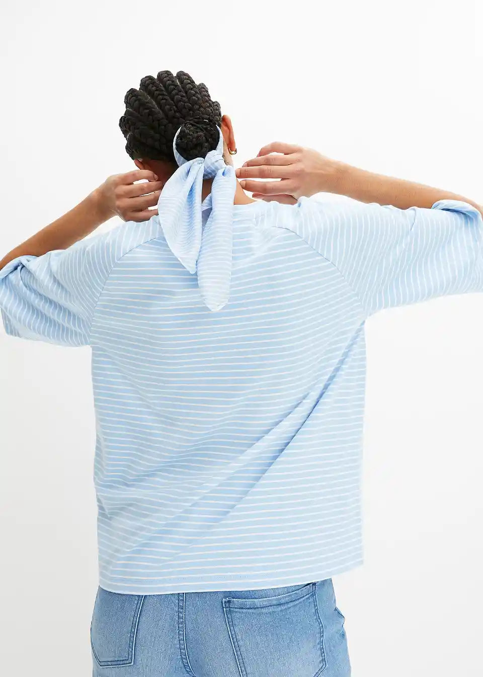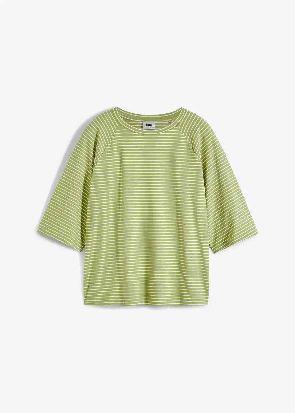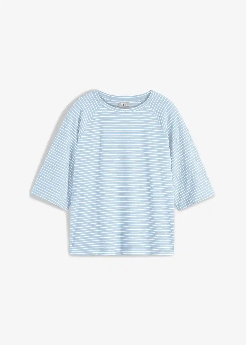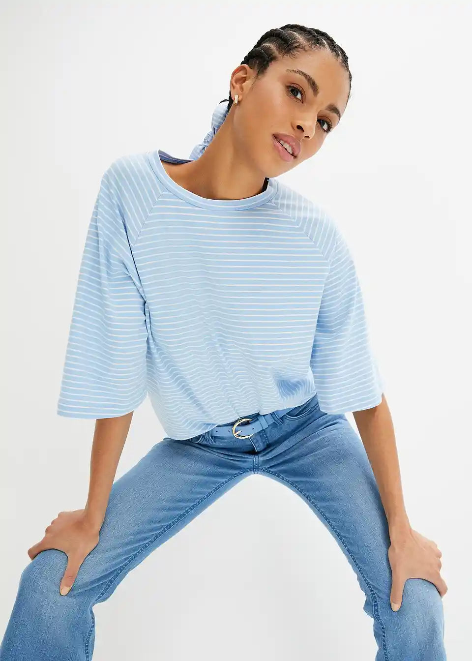 Črtasta T-Shirt majica z raglanskimi rokavi in visokim izrezom