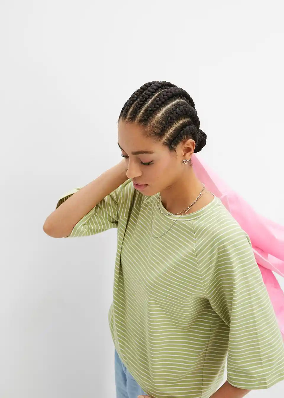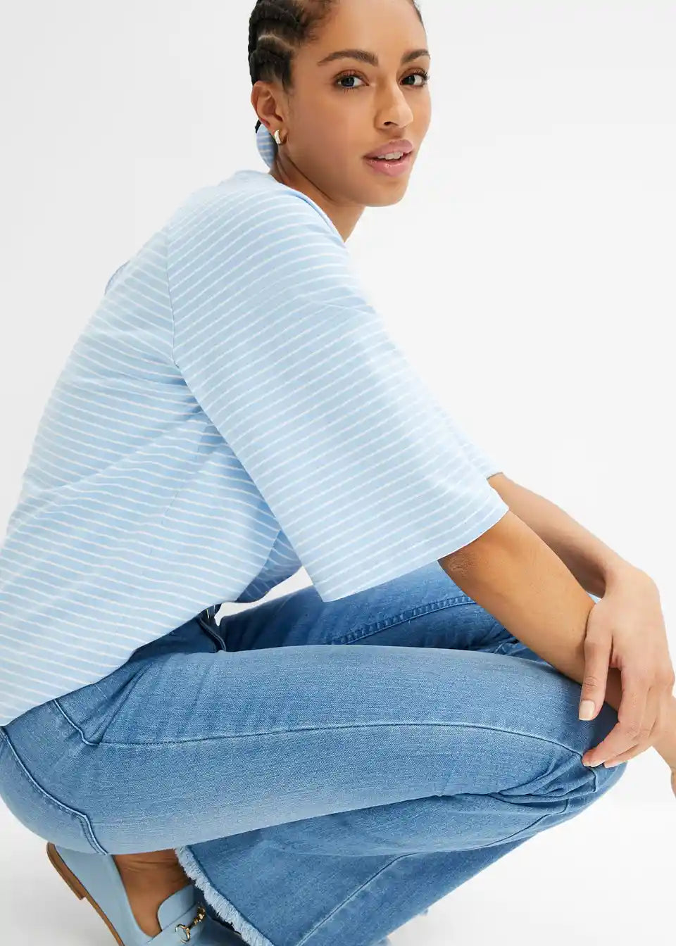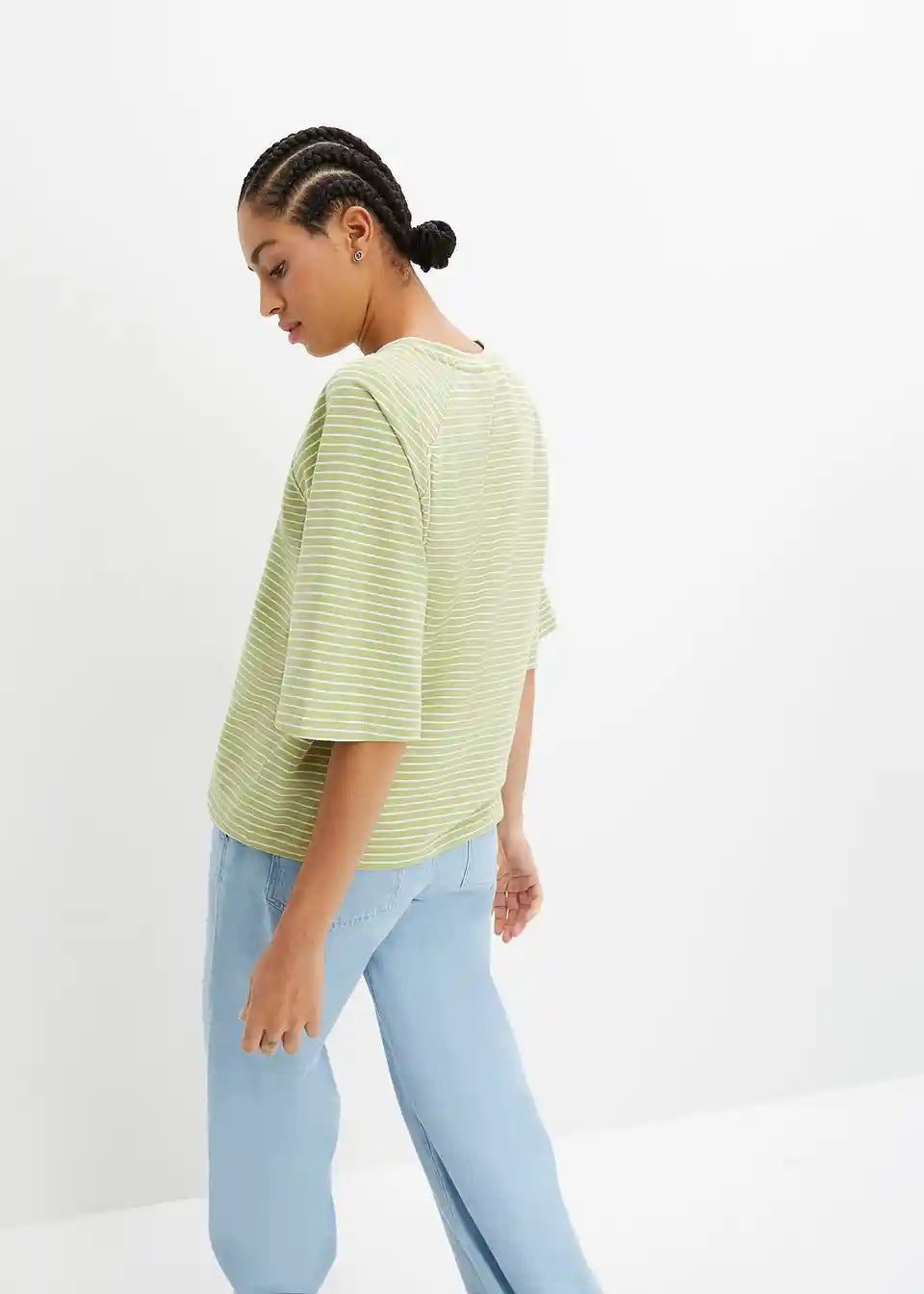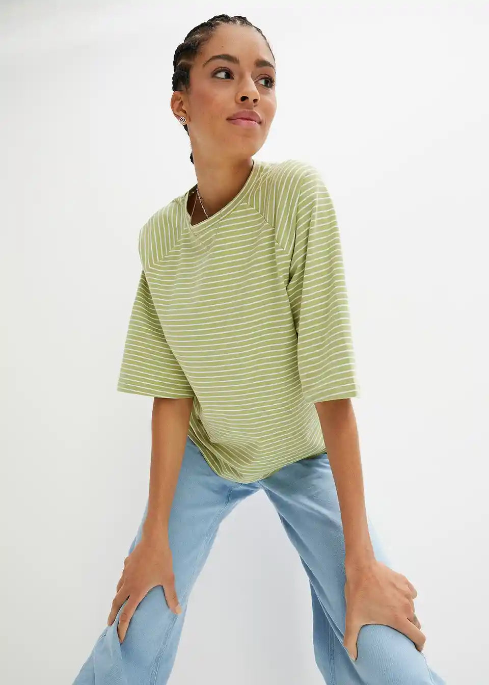 Črtasta T-Shirt majica z raglanskimi rokavi in visokim izrezom