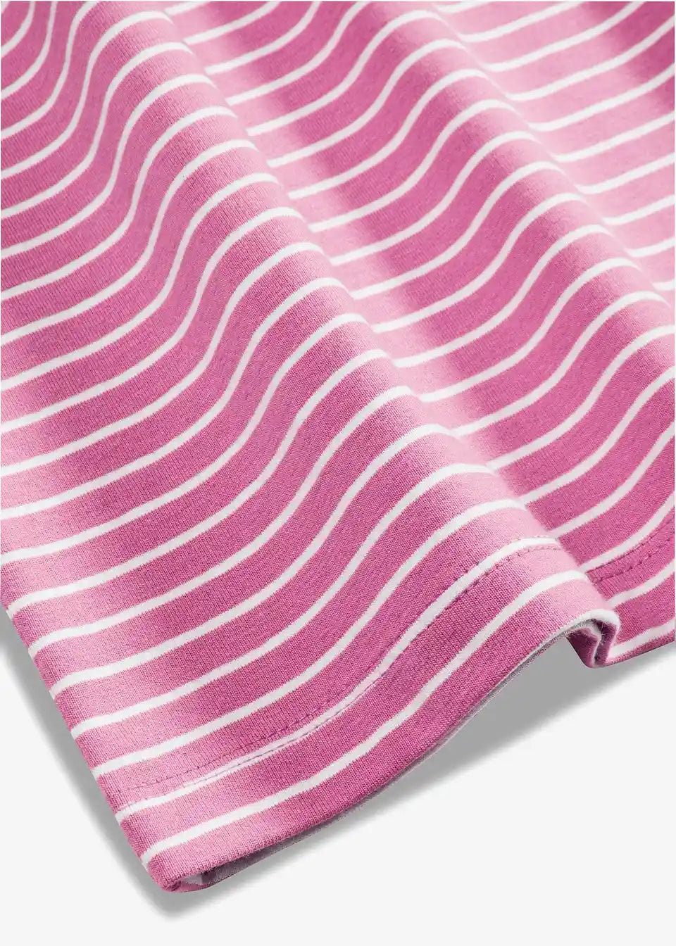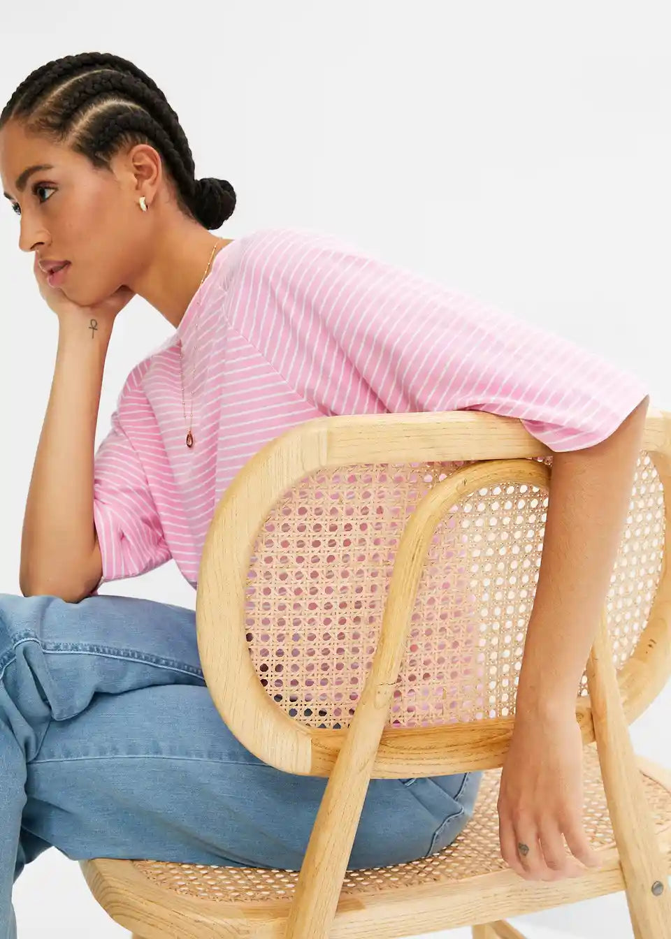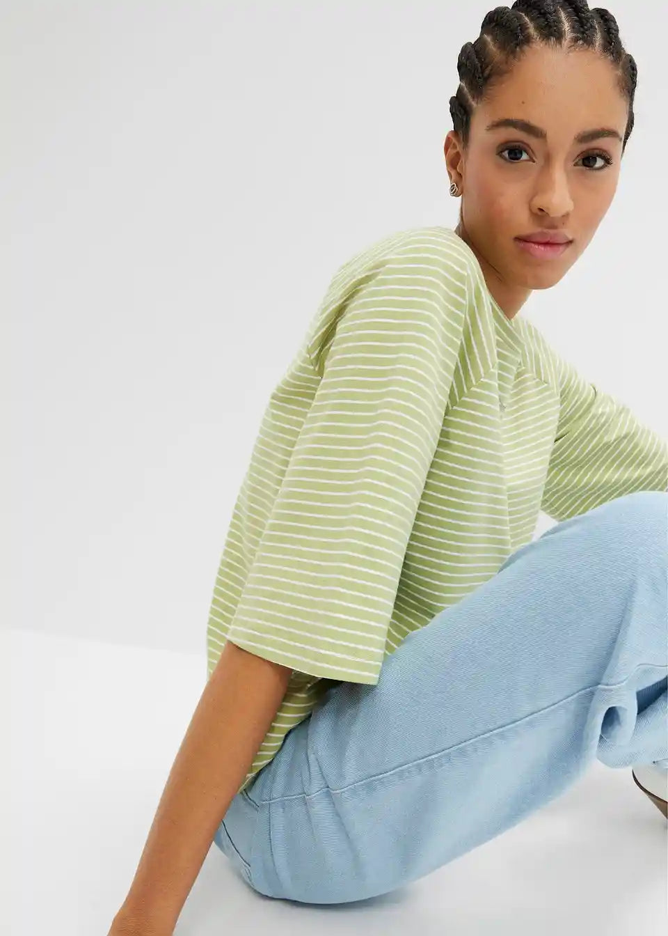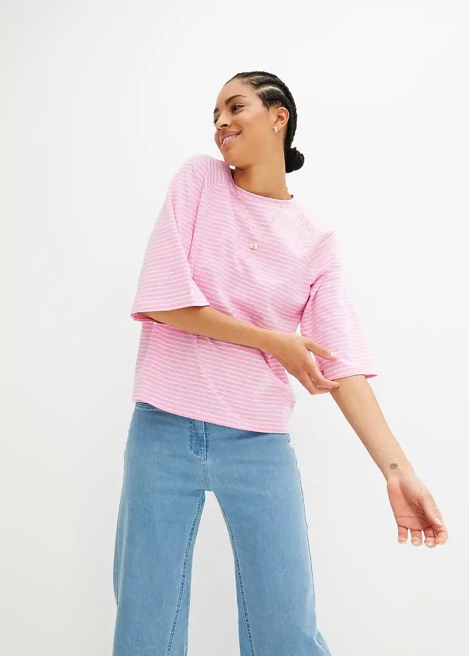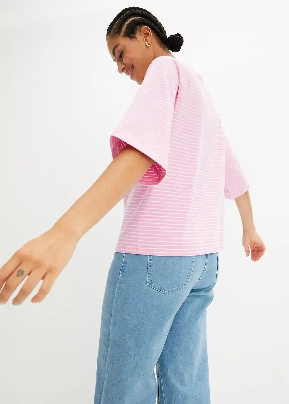 Črtasta T-Shirt majica z raglanskimi rokavi in visokim izrezom