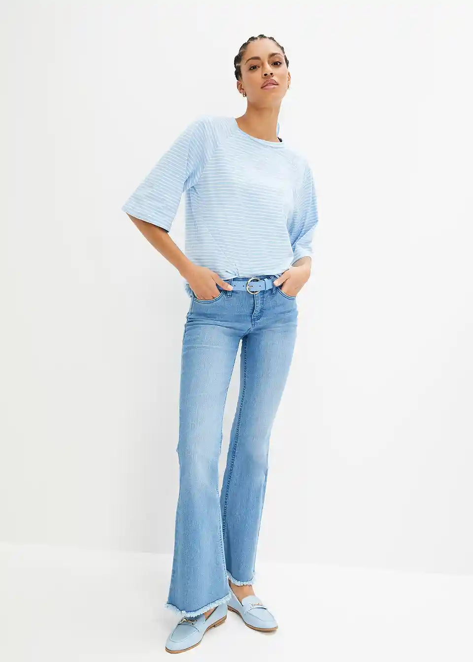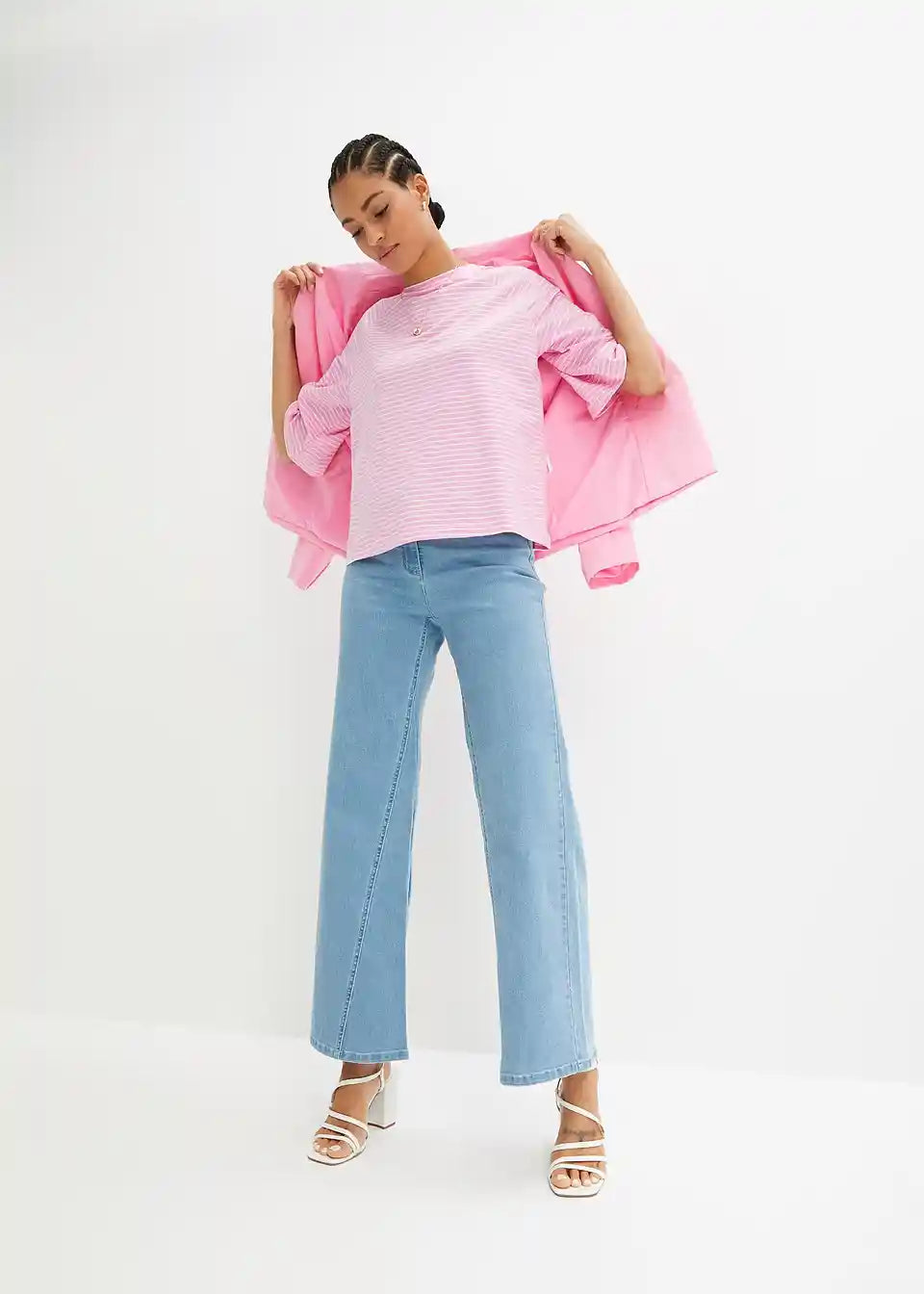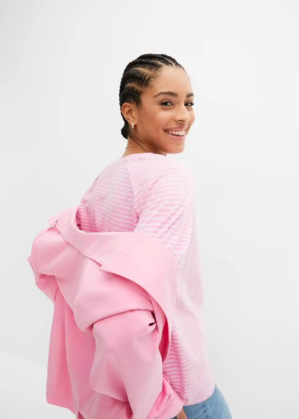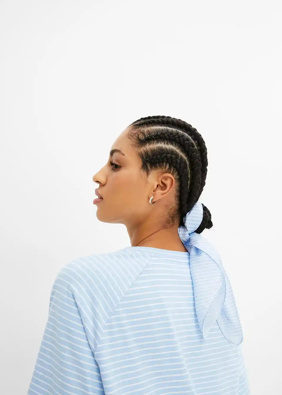 Črtasta T-Shirt majica z raglanskimi rokavi in visokim izrezom