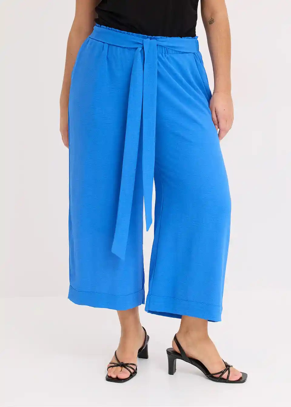 Culotte hlače brez zapenjanja z zavihkom