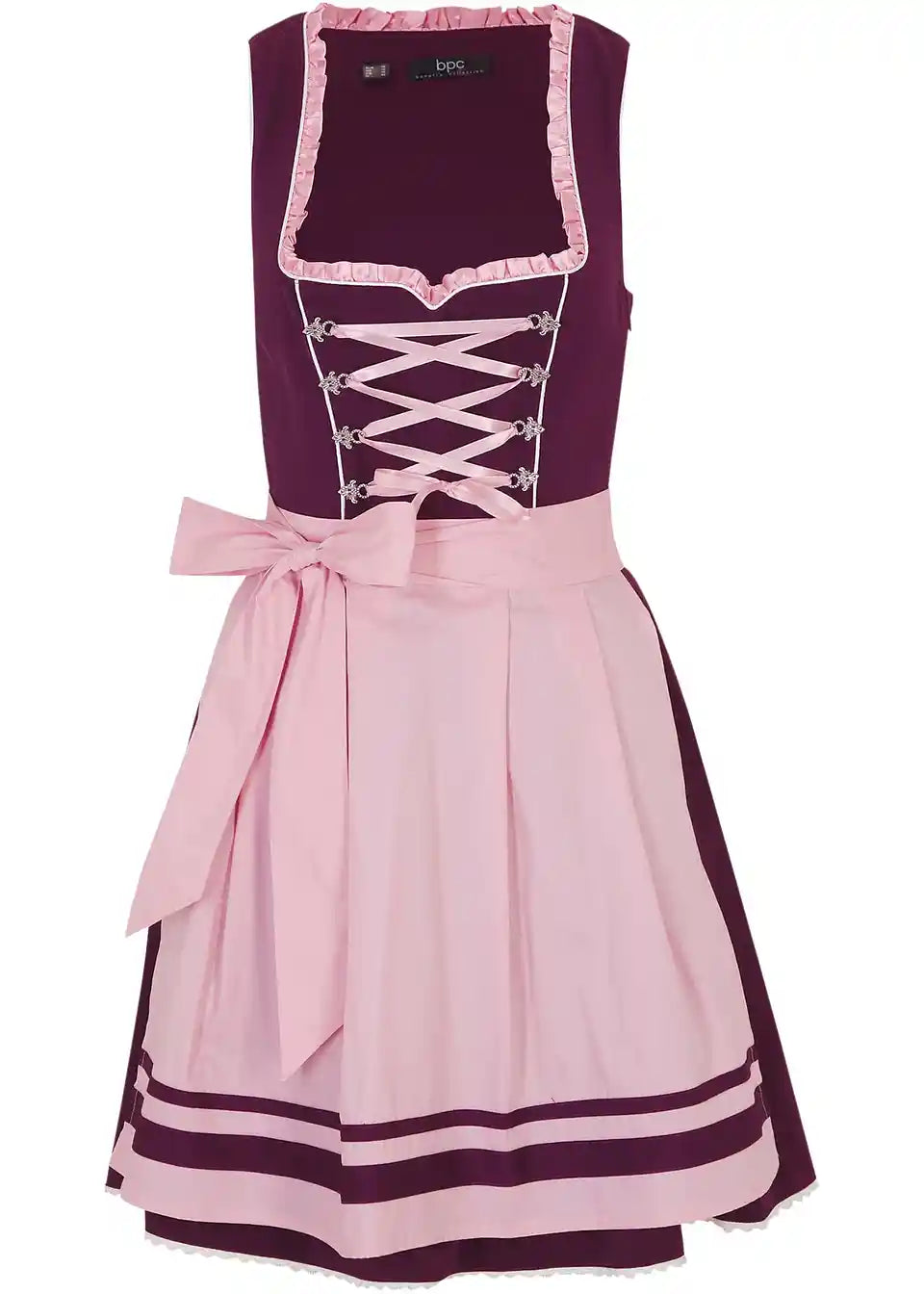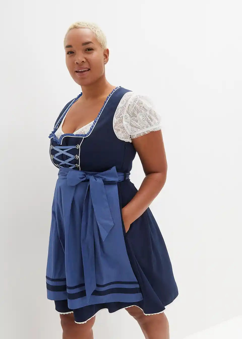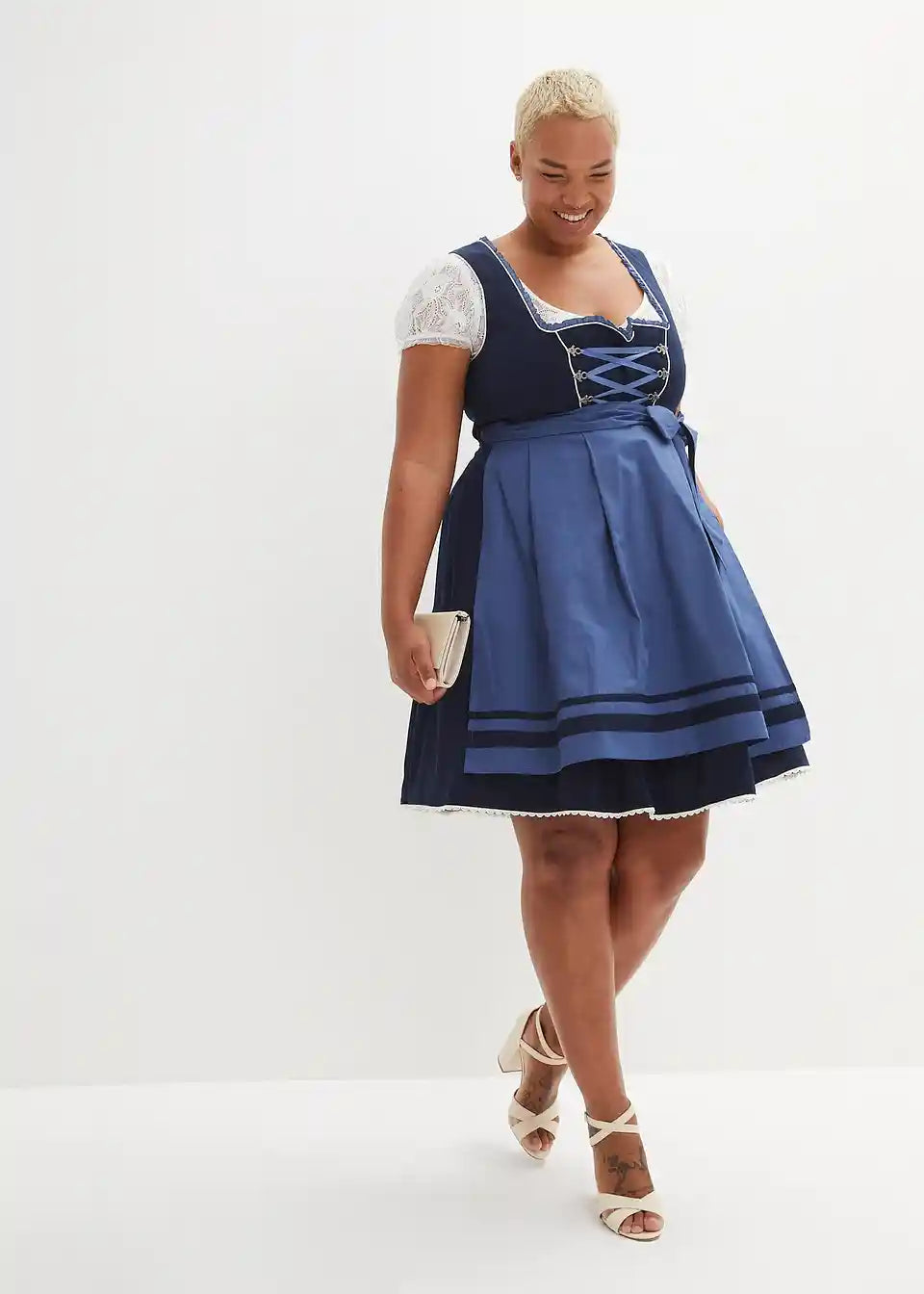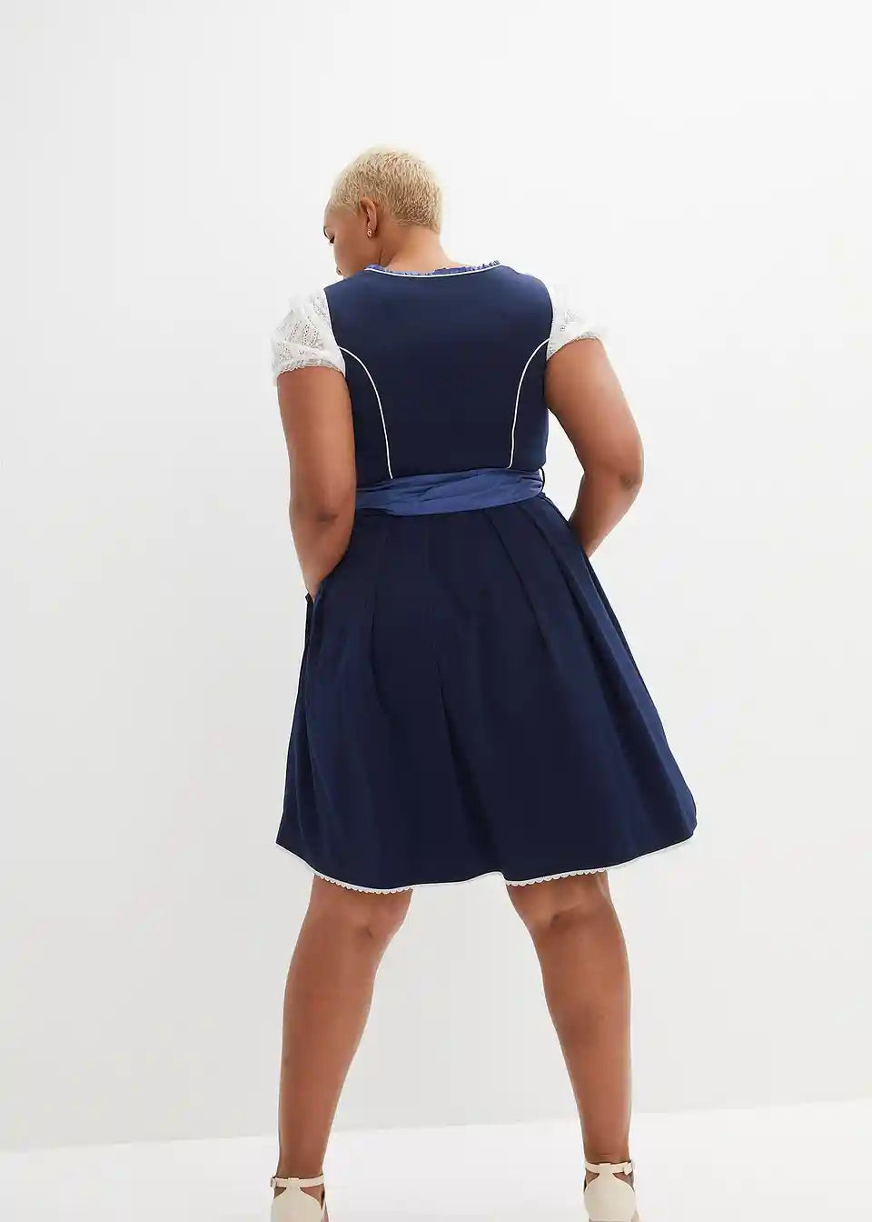 Časovno neomejen Dirndl z dekorativnim kontrastnim robom, krilo je podloženo s prijetno bombažno tkanino.