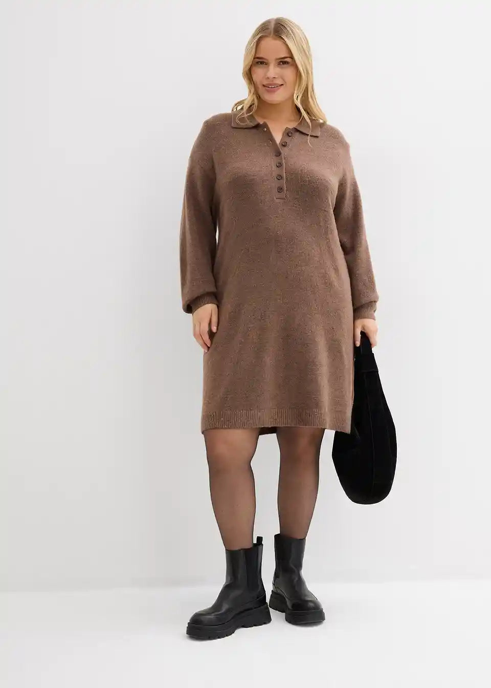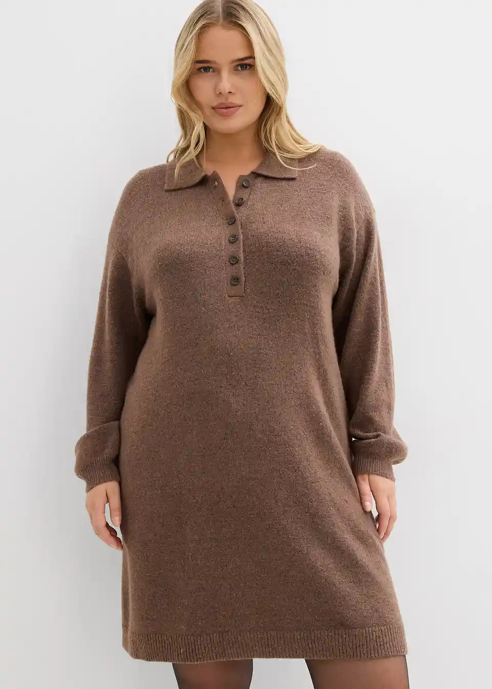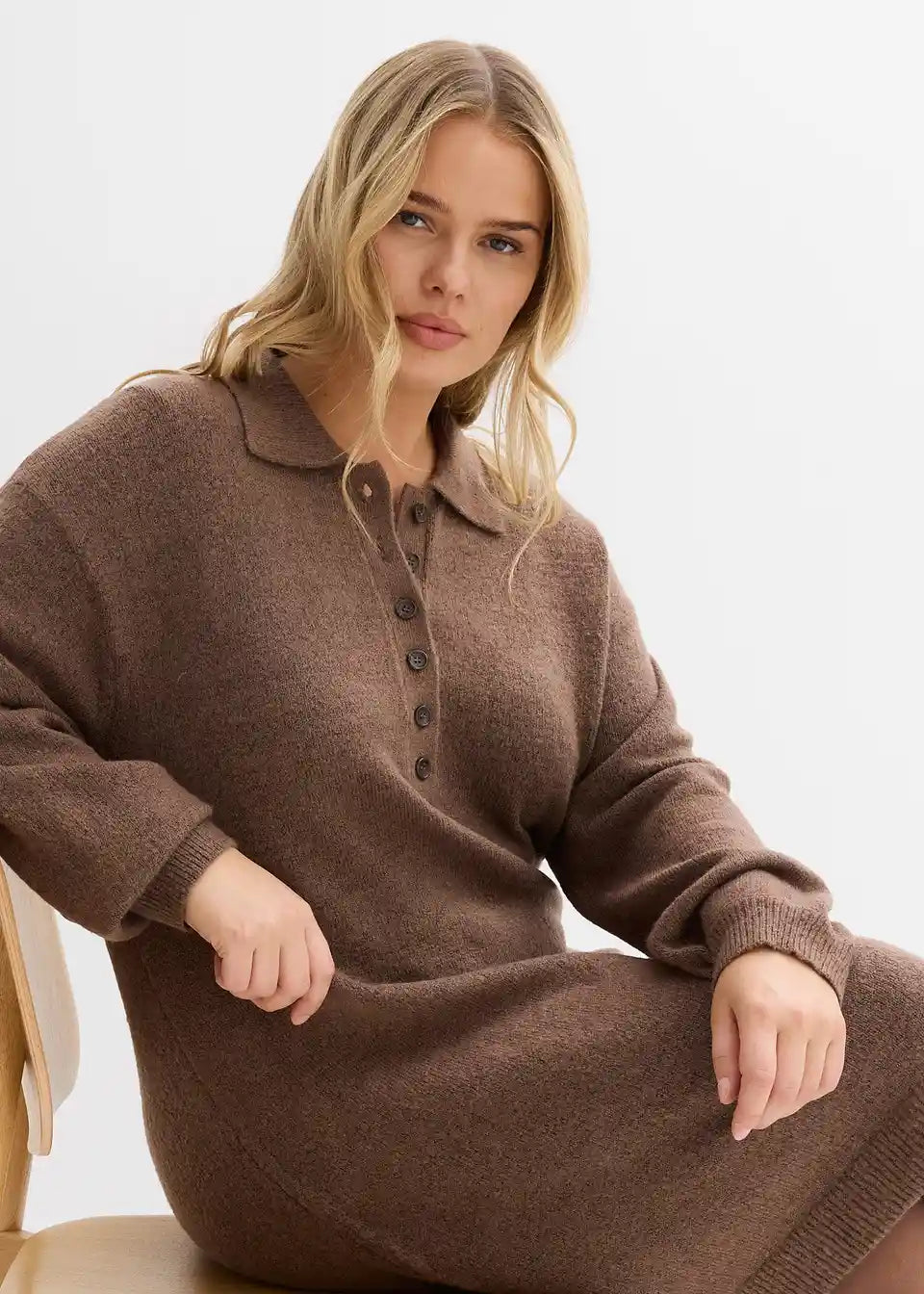 Moderna pletena obleka z gumbi
