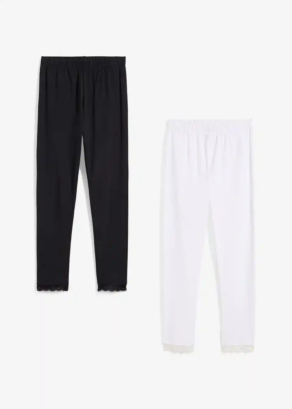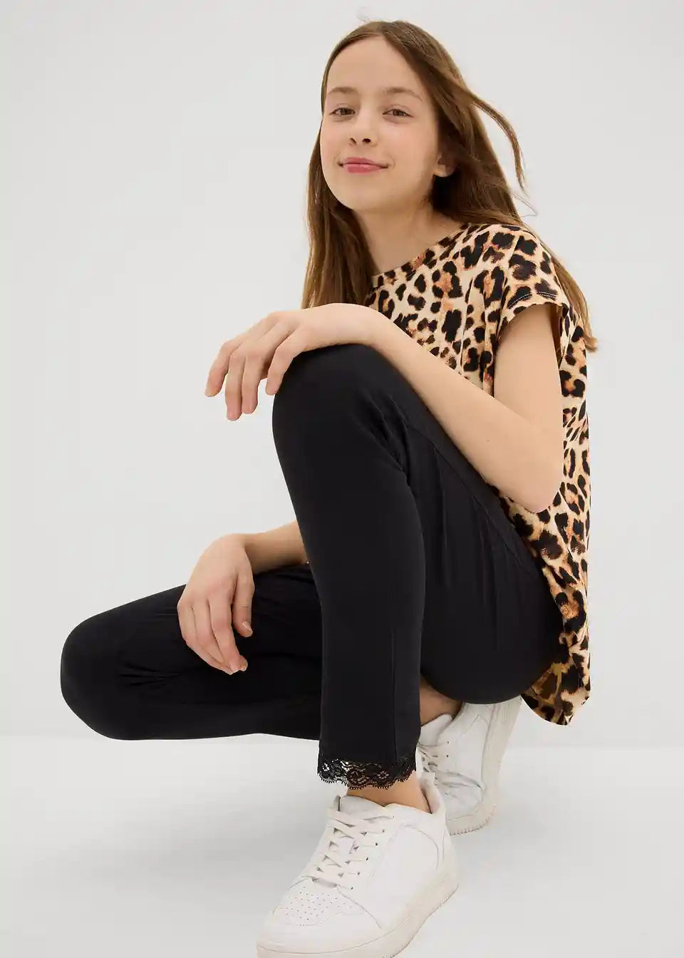 Dekliške leggings iz bio bombažne mešanice z dekorativno čipko