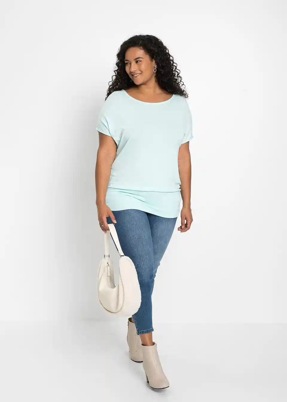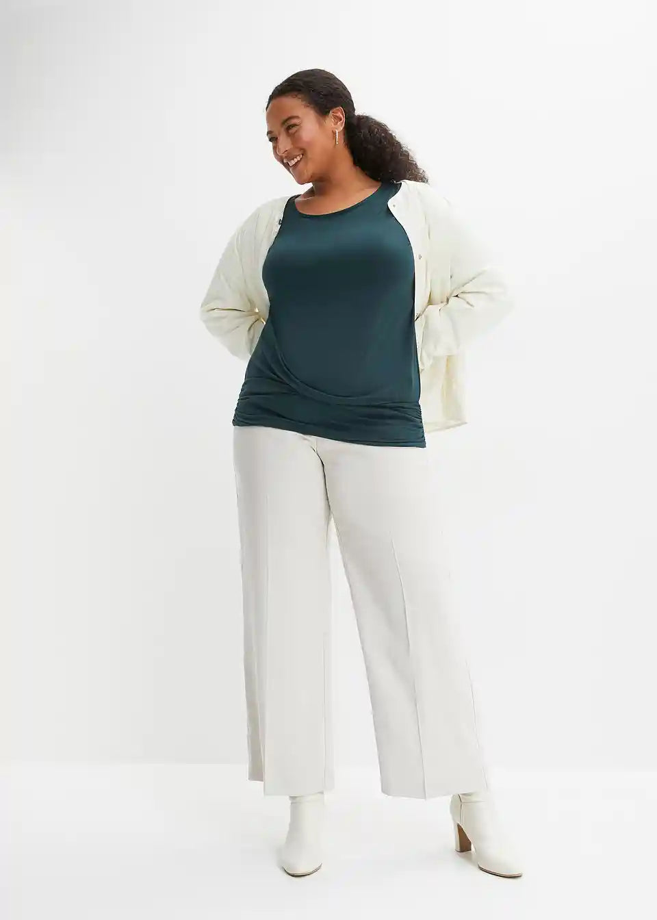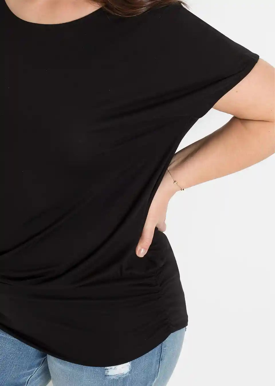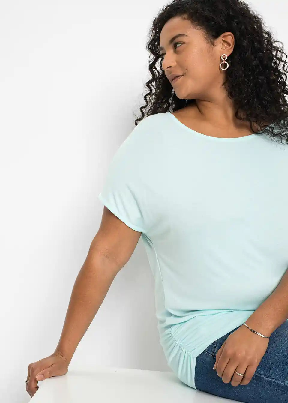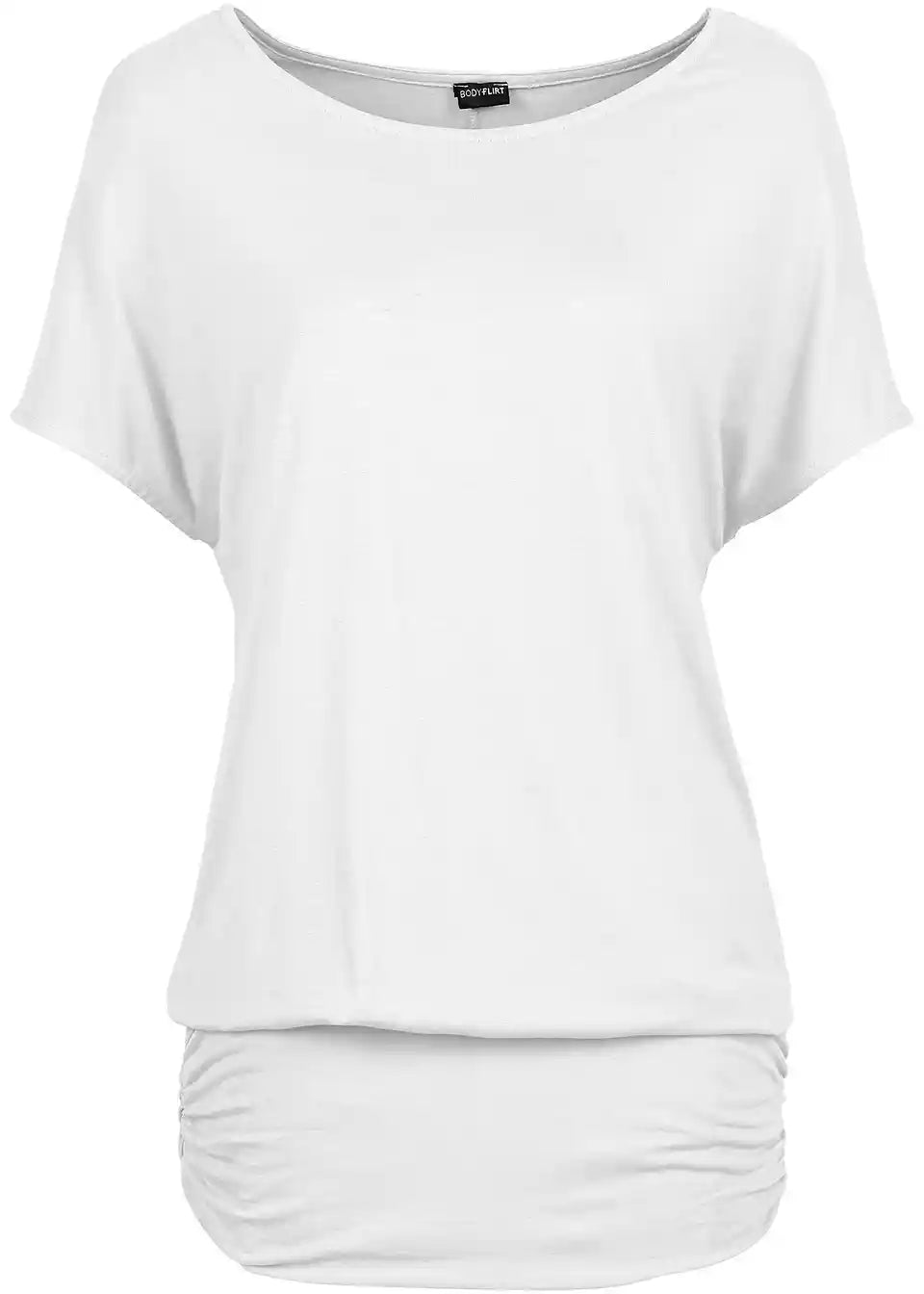 Ta čudovita majica znamke BODYFLIRT poudari žensko karizmo. Kratkoročna majica s širokim okroglim izrezom lepo objame postavo in ima širok nabran rob, ki omogoča odlično prileganje. To čudovito majico odlično kombinirate s tesno prilegajočimi kavbojkami, kapri hlačami ali kratkimi hlačami.