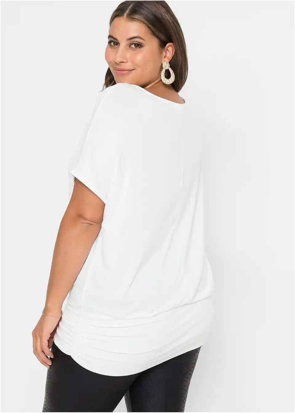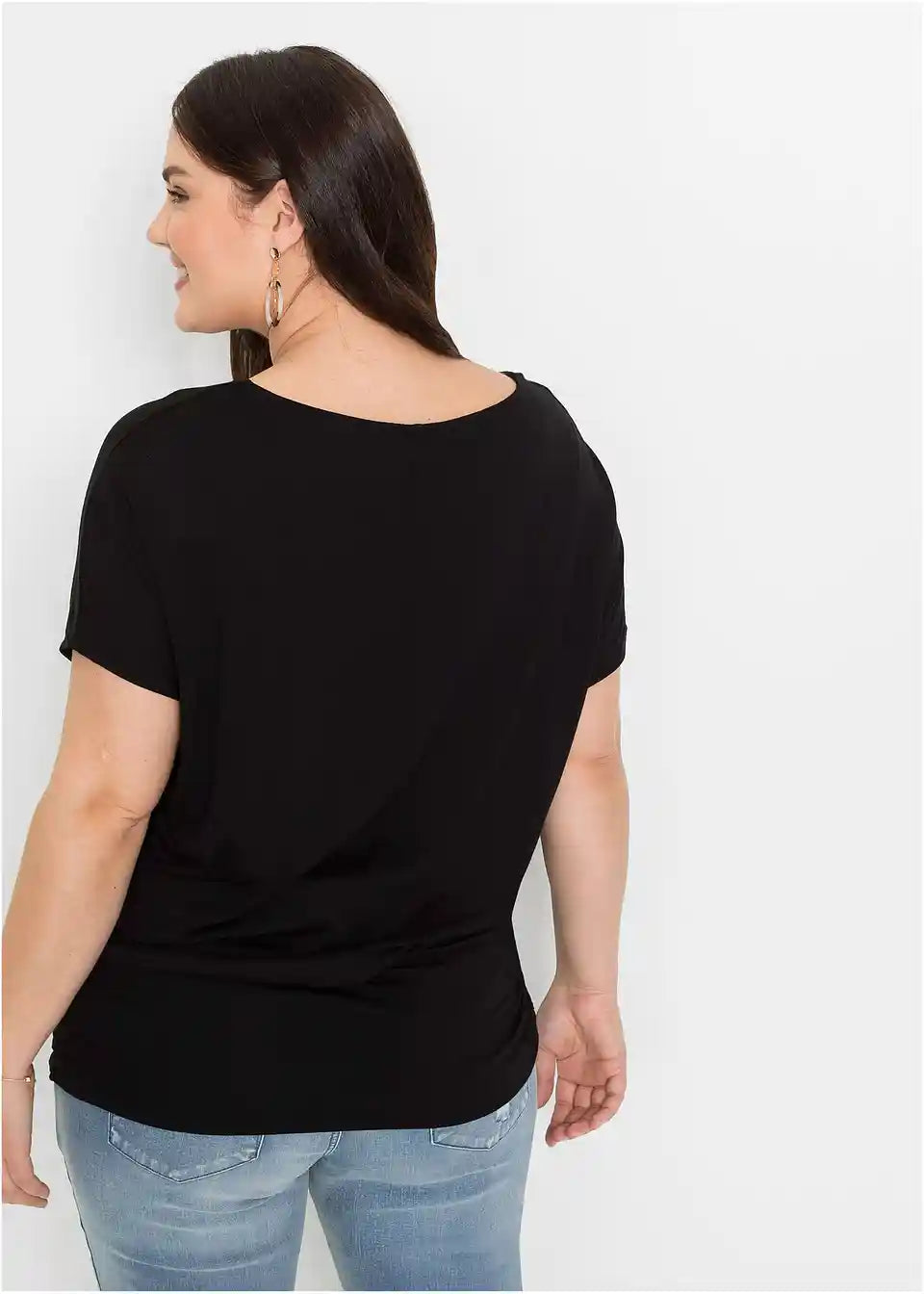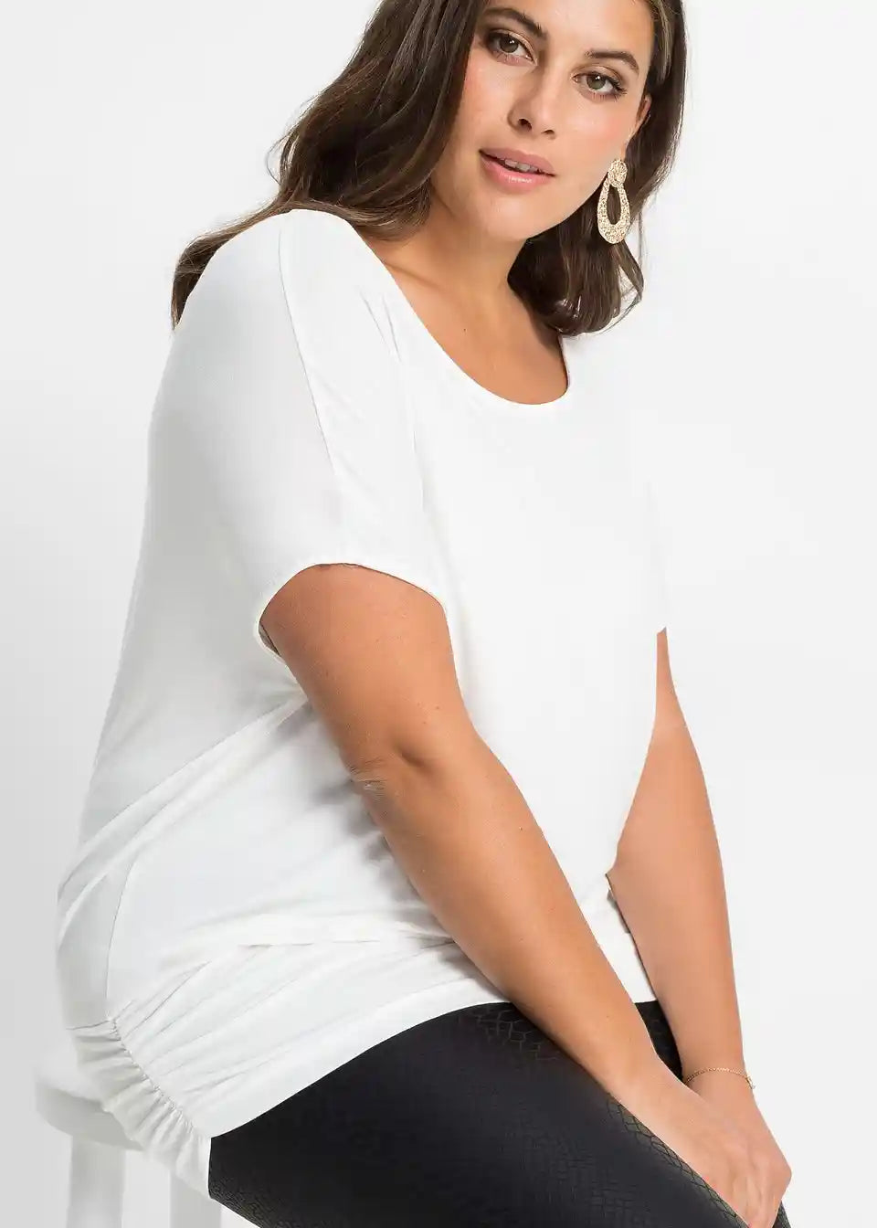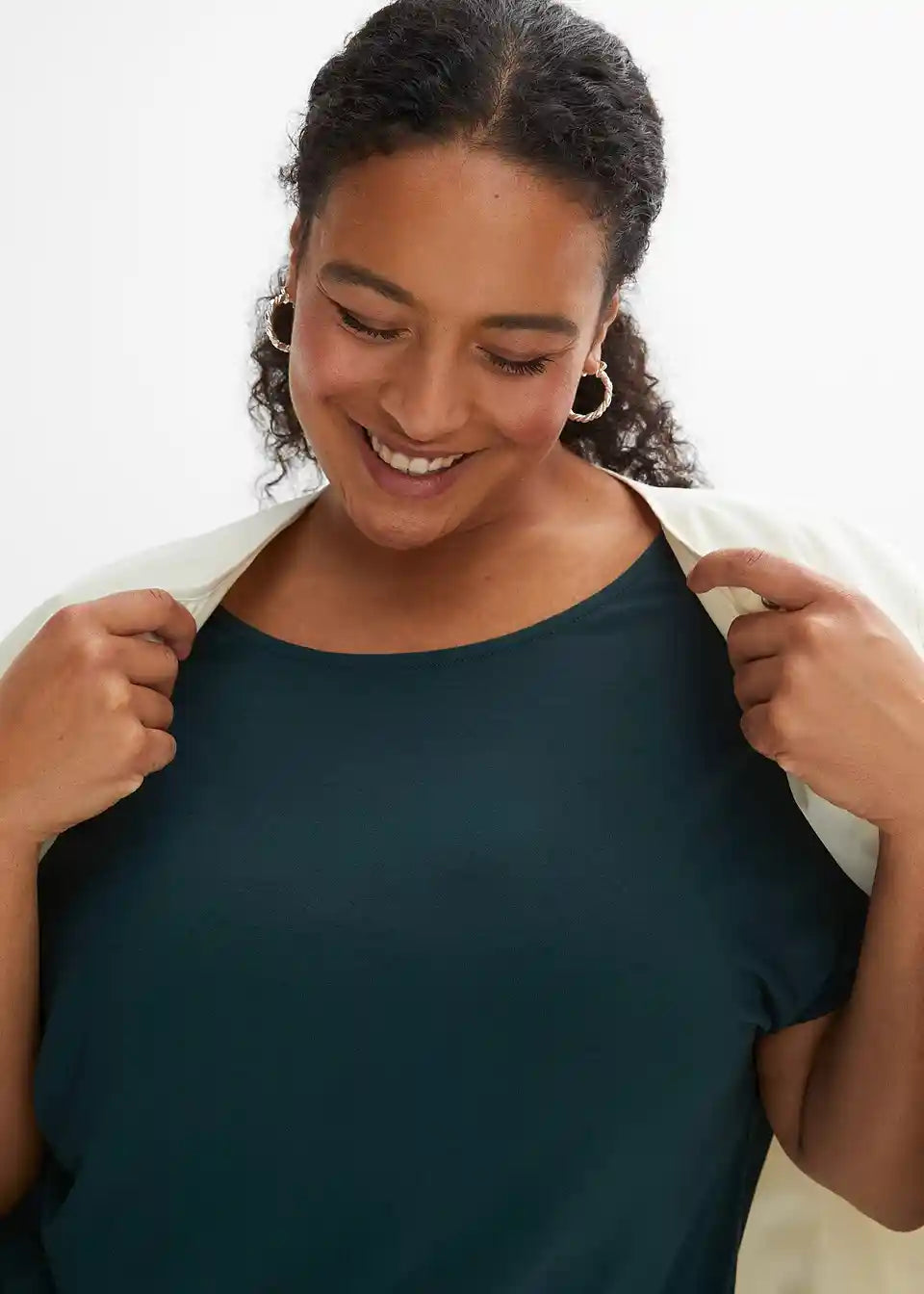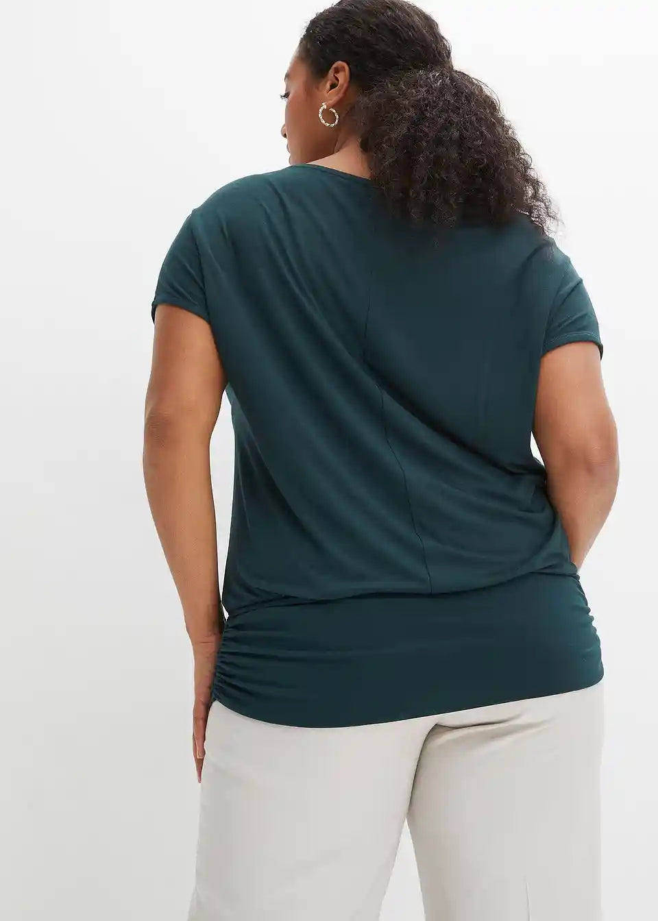 Ta čudovita majica znamke BODYFLIRT poudari žensko karizmo. Kratkoročna majica s širokim okroglim izrezom lepo objame postavo in ima širok nabran rob, ki omogoča odlično prileganje. To čudovito majico odlično kombinirate s tesno prilegajočimi kavbojkami, kapri hlačami ali kratkimi hlačami.
