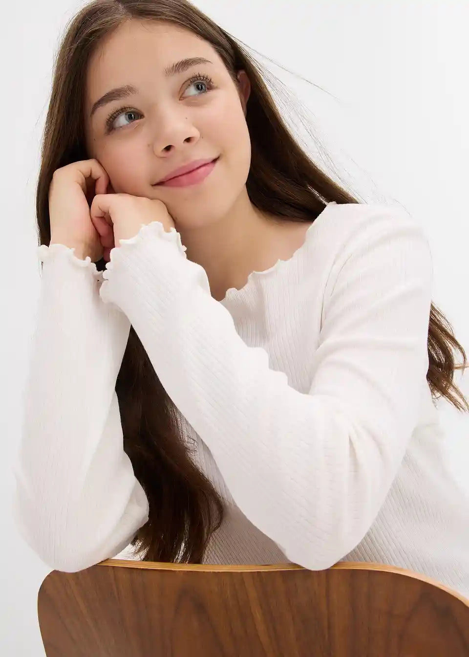 Brezčasna majica z dolgimi rokavi za dekleta iz čistega ekološkega bombaža