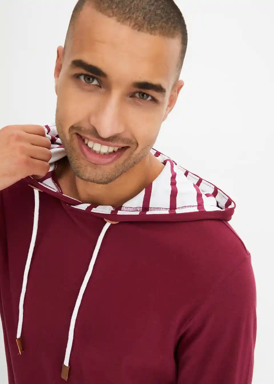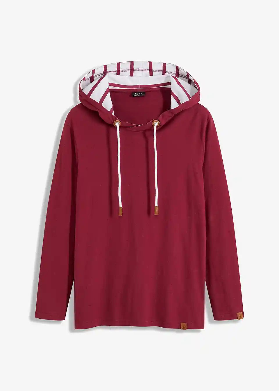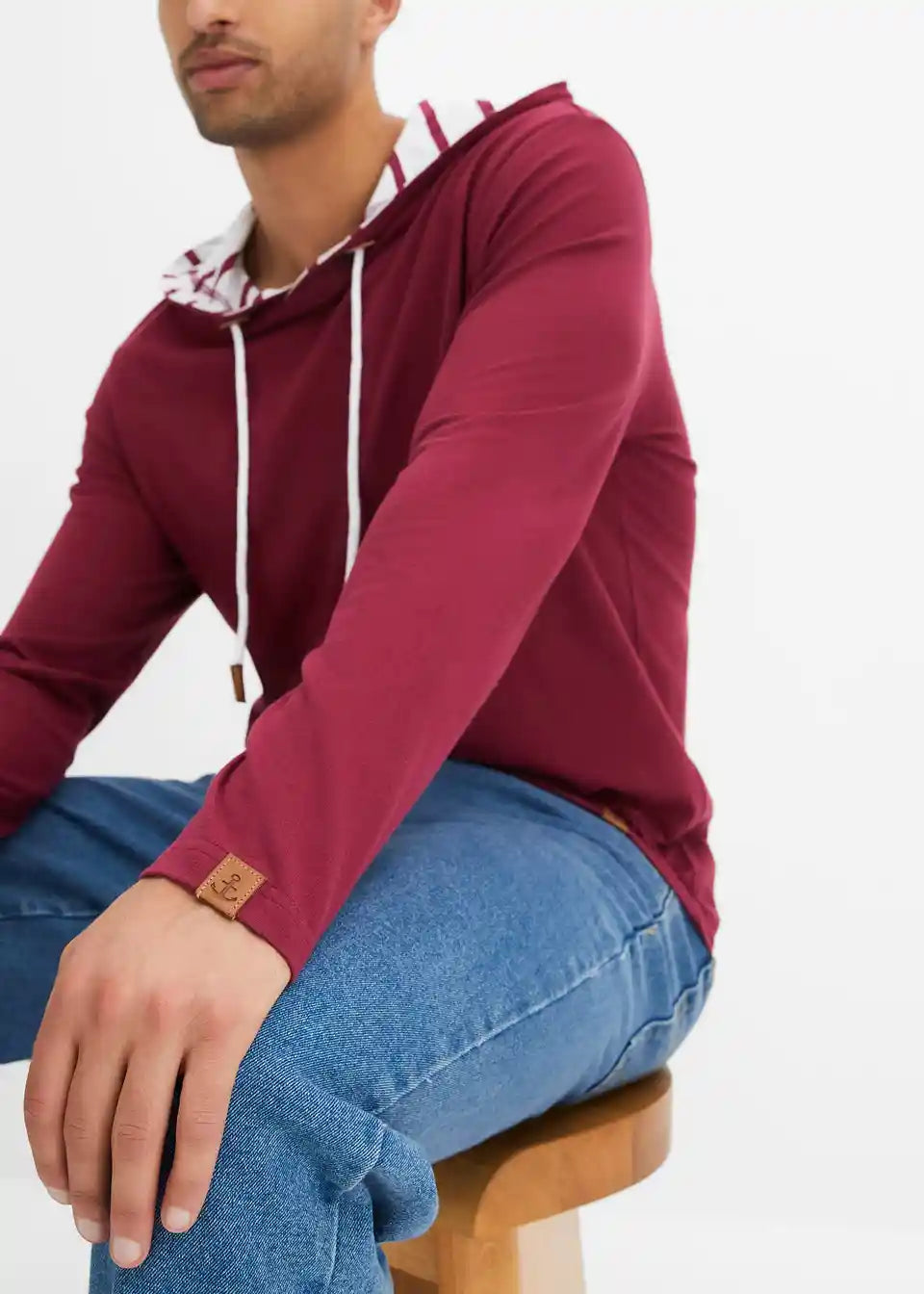 Čudovita majica z dolgimi rokavi s podlogo kapuce v črtastem vzorcu in lepimi detajli iz imitacije usnja, pralna v pralnem stroju