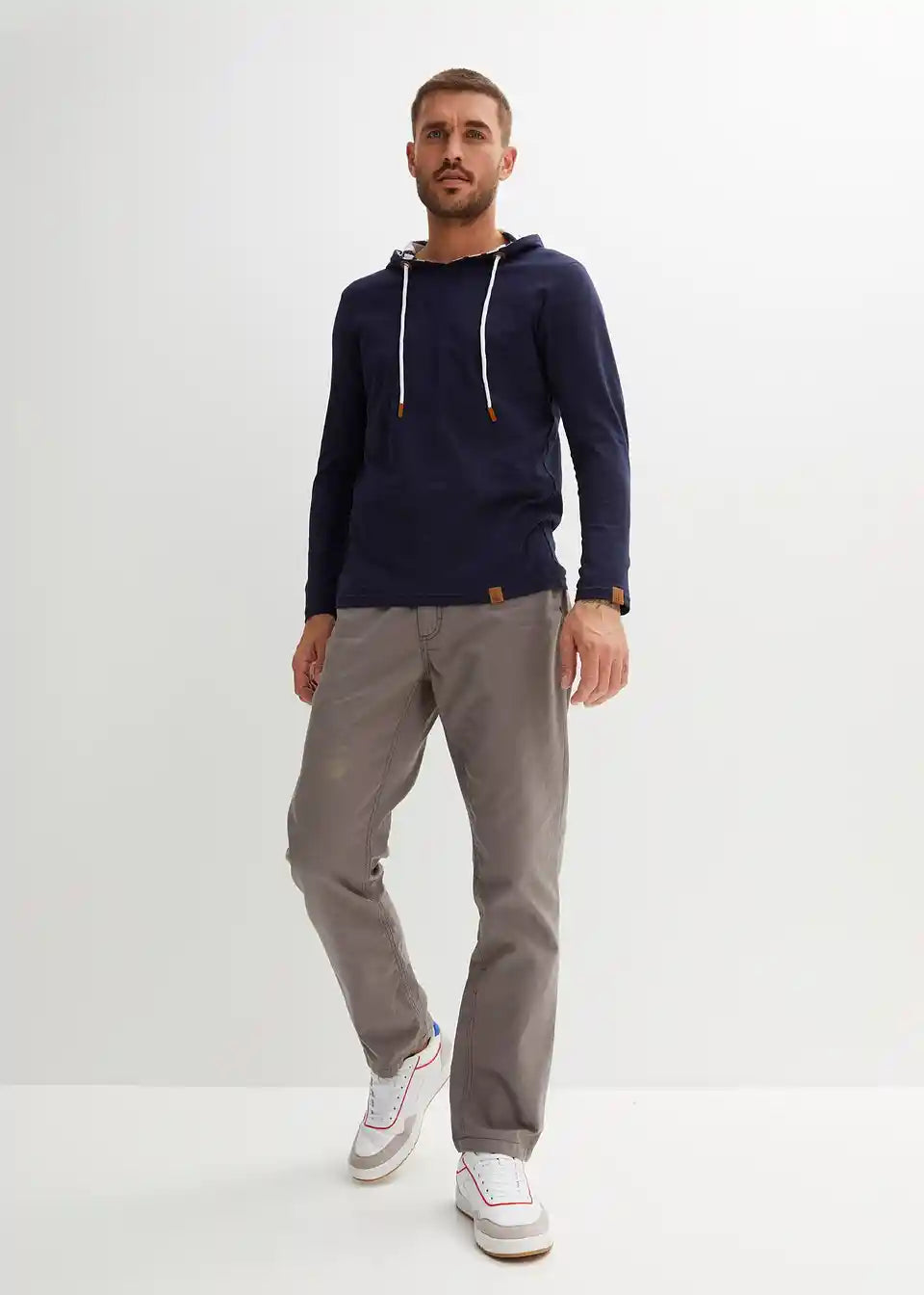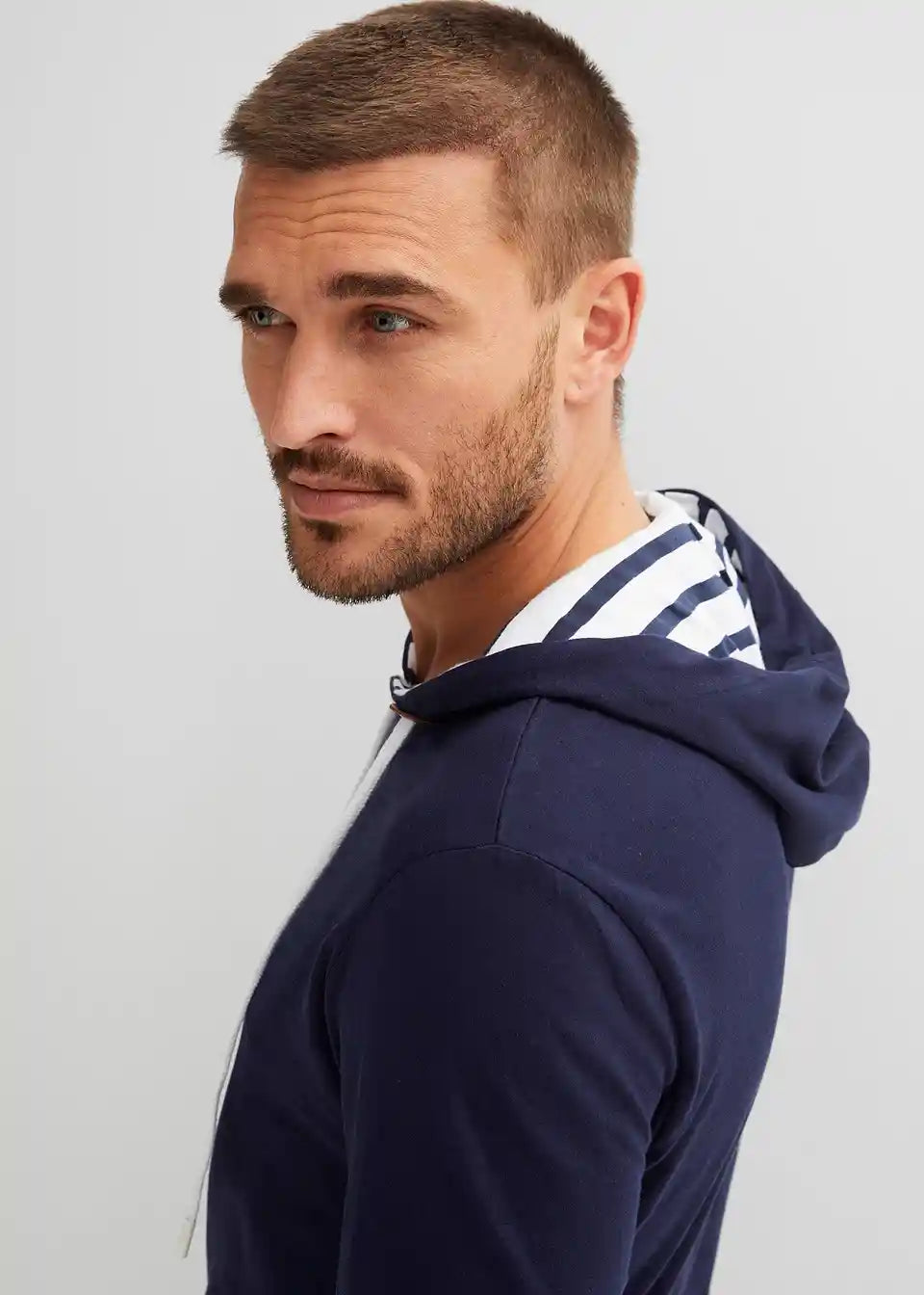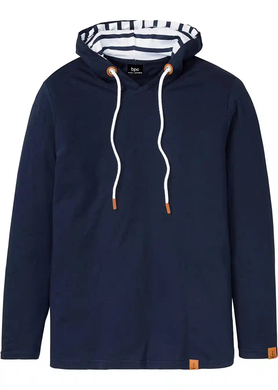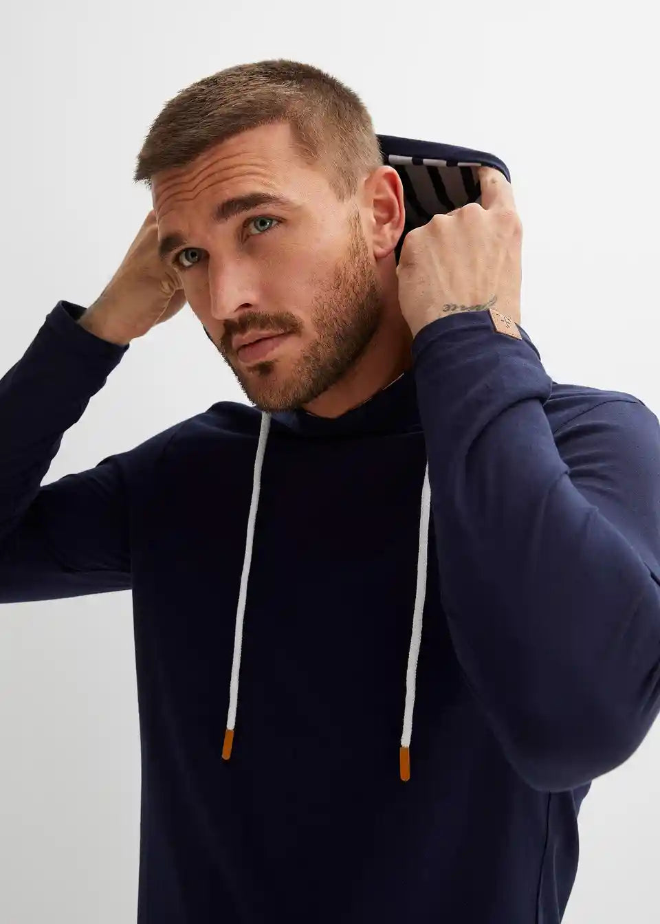 Čudovita majica z dolgimi rokavi s podlogo kapuce v črtastem vzorcu in lepimi detajli iz imitacije usnja, pralna v pralnem stroju