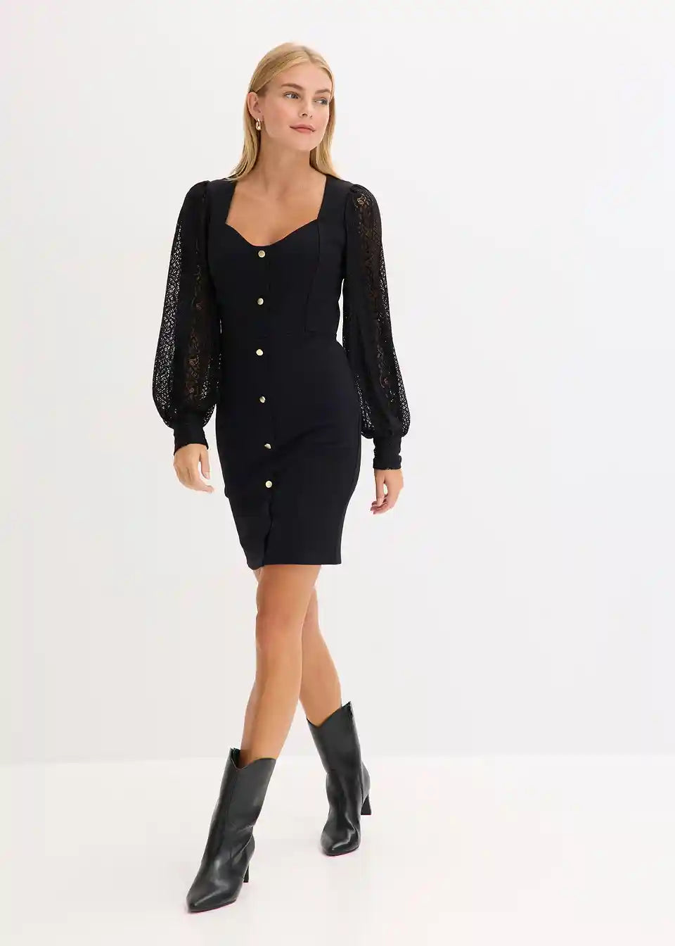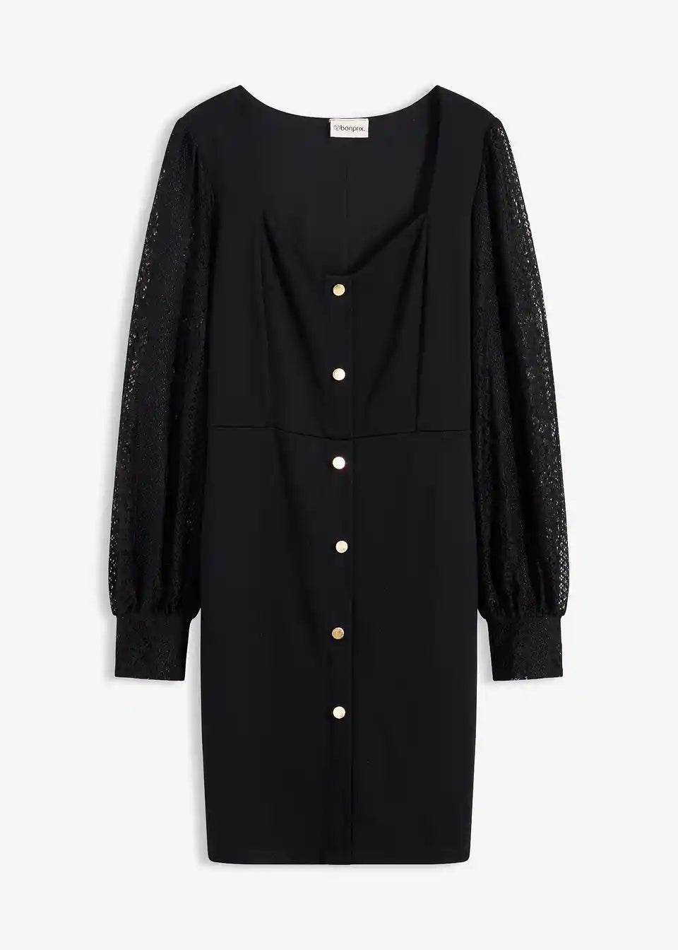 Stilna obleka z odličnim prileganjem z gumbi zlate barve
