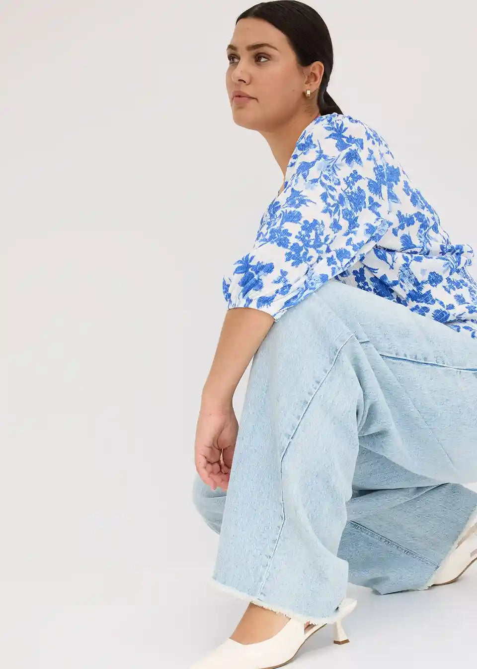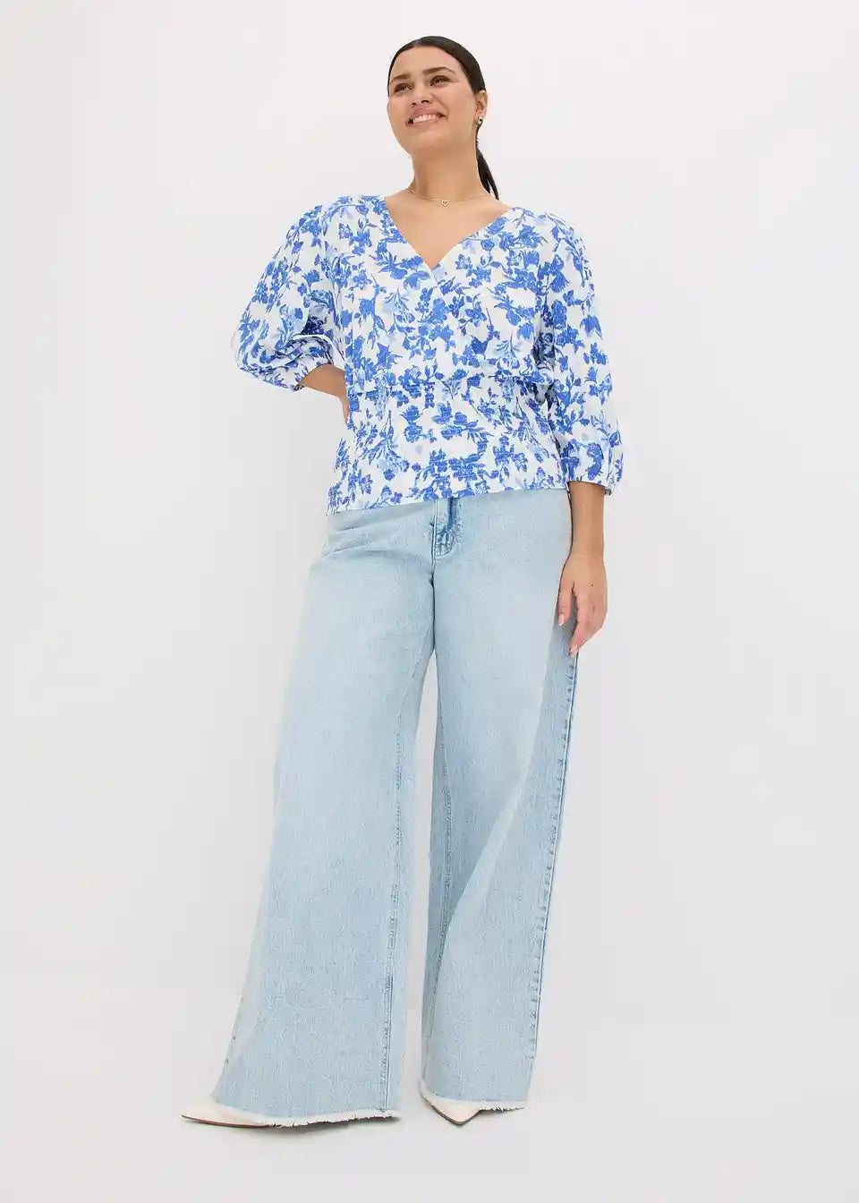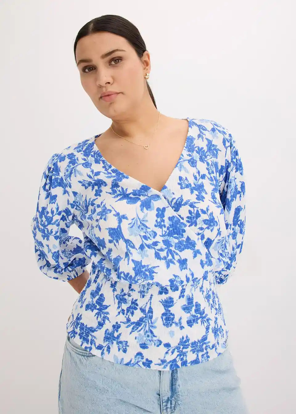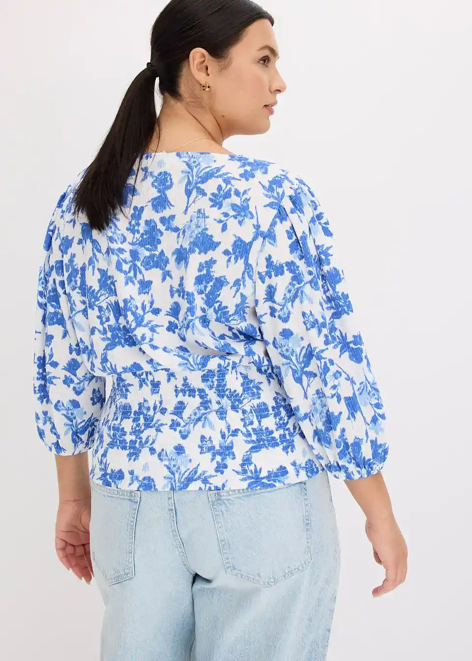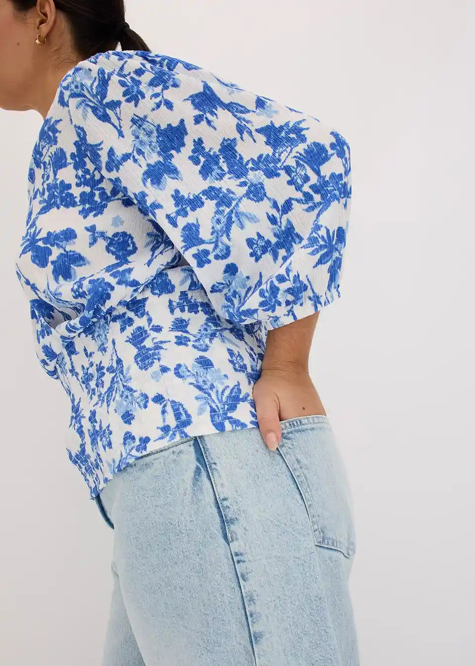 Ženstvena majica z drapirano obdelavo in balon rokavi