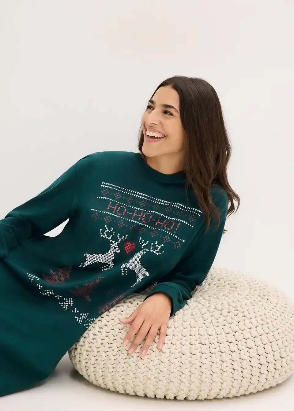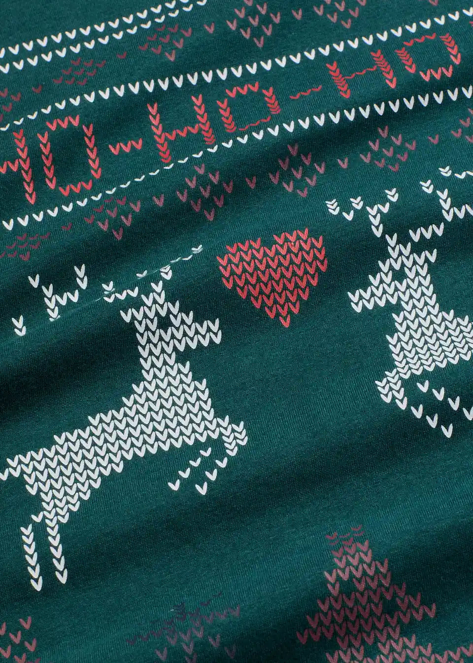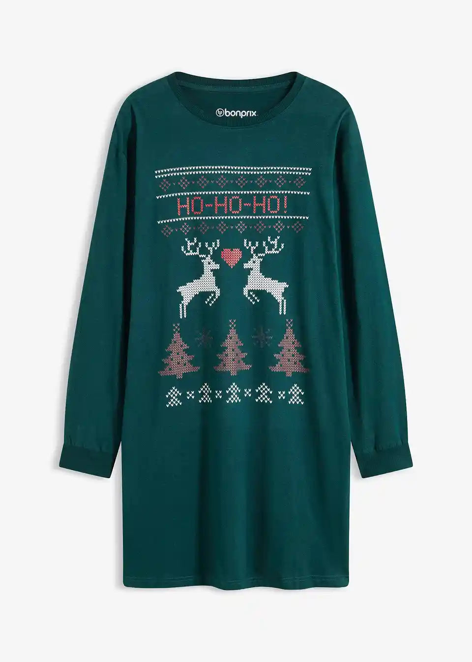 Udobna spalna srajca z lepim božičnim potiskom in rebrasto patentno obrobo na ovratnem izrezu ter na robu rokavov