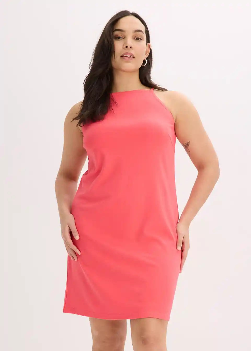 Moderna obleka s tankimi naramnicami in okrasnim šivom