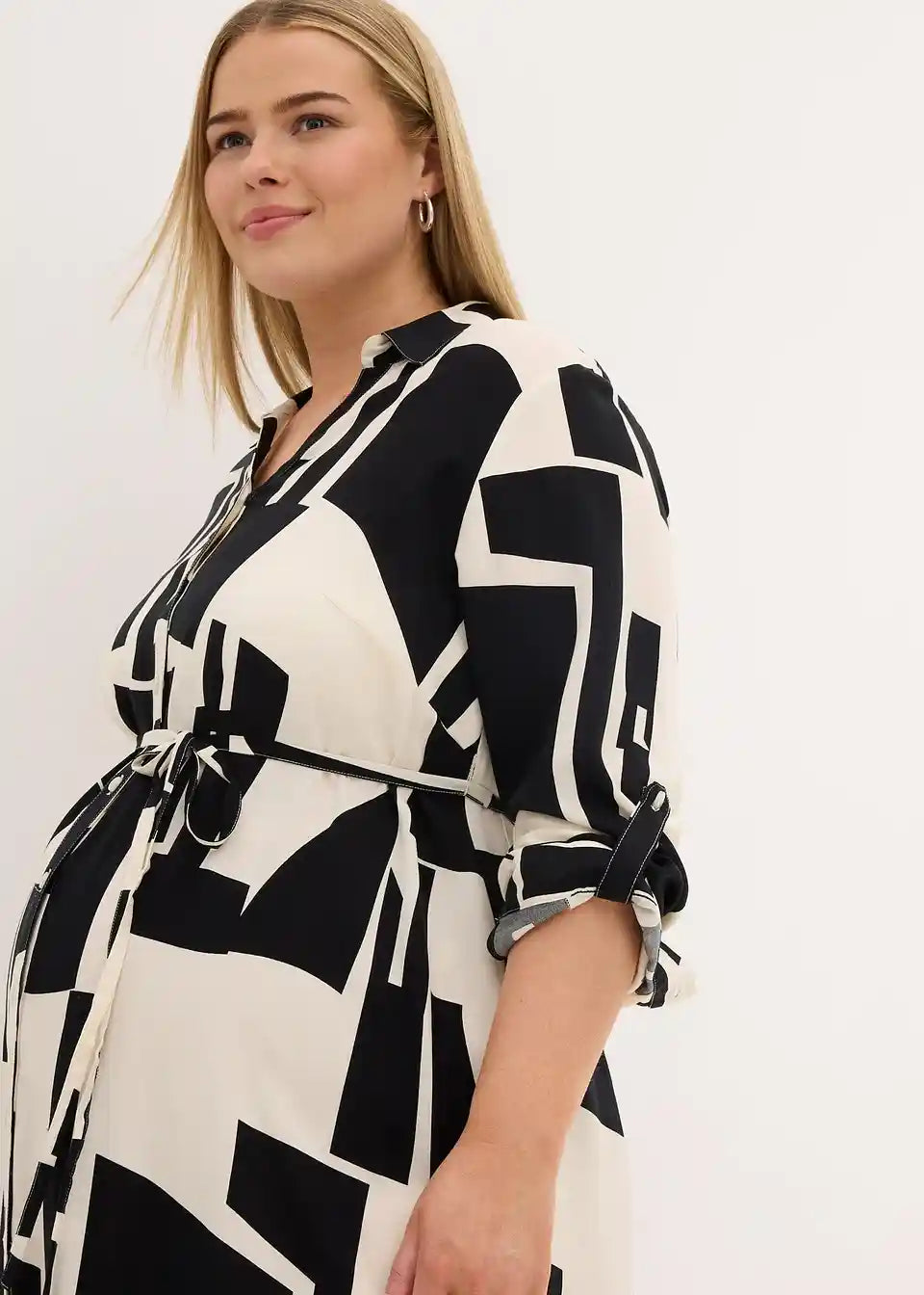 Srajčna obleka do kolen za nosečnost in čas po porodu