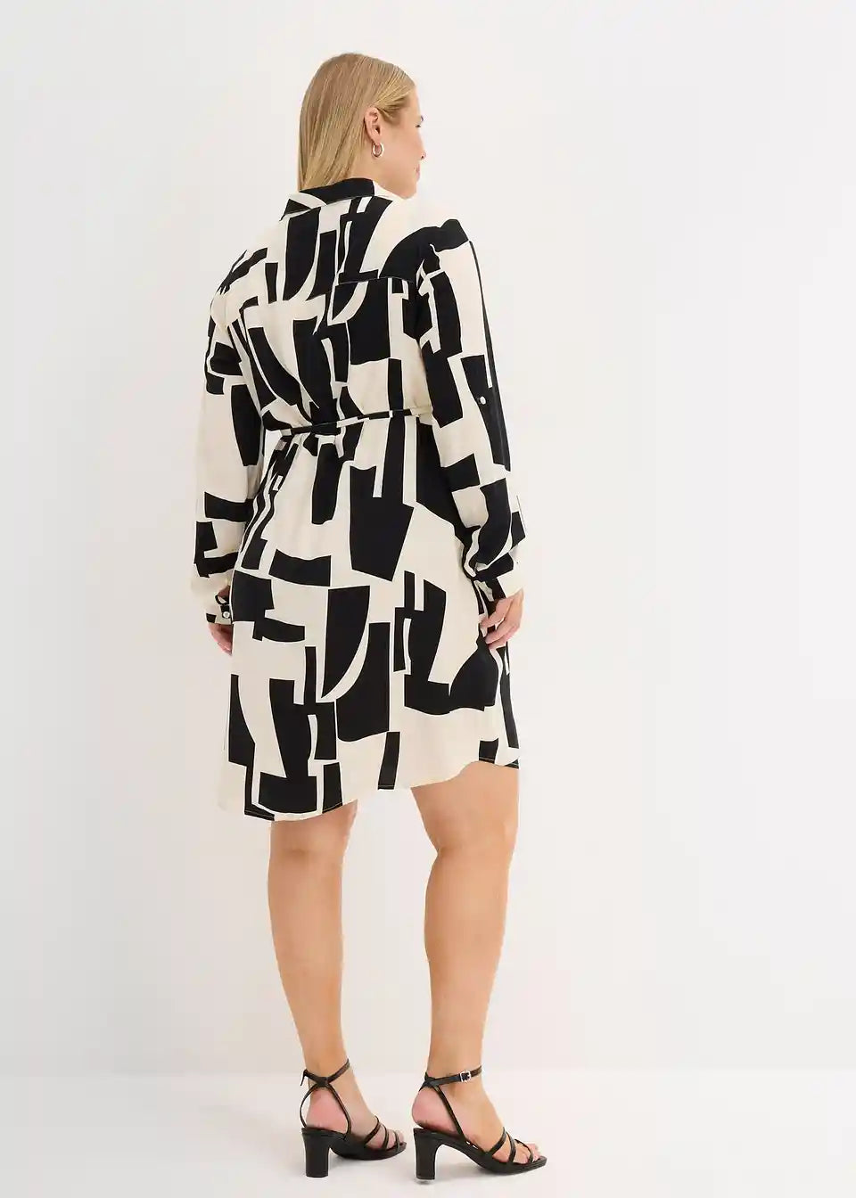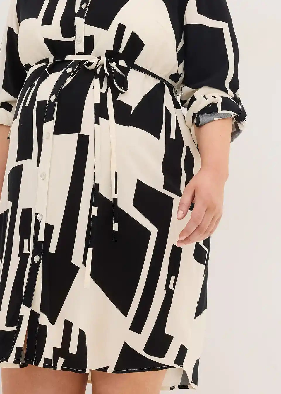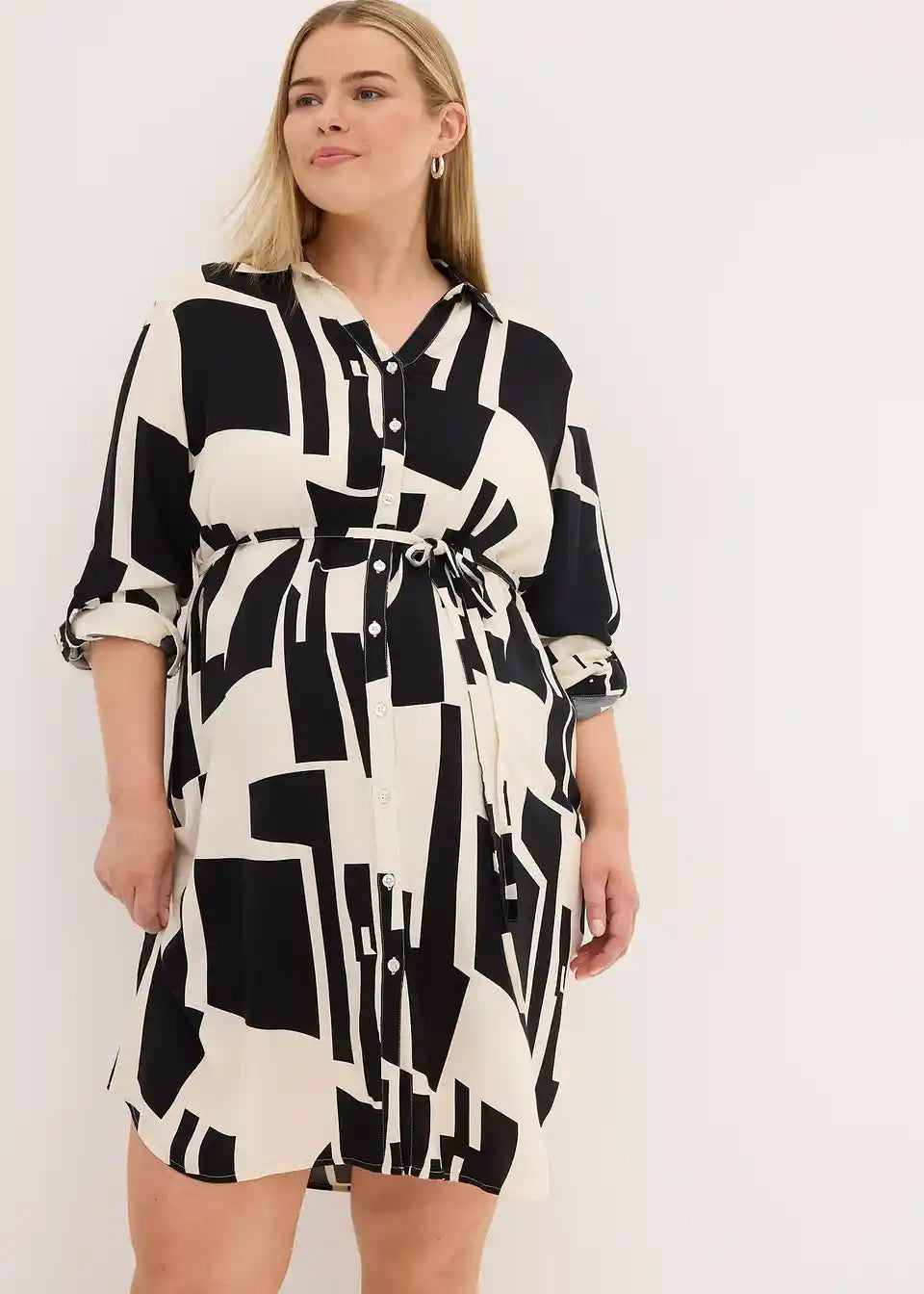 Oprijeta dolga bluza iz ležerno padajoče viskoze. Dolžina do kolen s srajčnim ovratnikom, neprekinjenim gumbnim zapenjanjem, ozkim snemljivim pasom za zavezovanje in rahlo zaobljenim robom. Rokavi imajo manšete z gumbi, njihovo dolžino pa je mogoče nastaviti s trakci in gumbi. Dolgo zapenjanje na gumbe omogoča enostavno dojenje ter udobno oblačenje in slačenje.