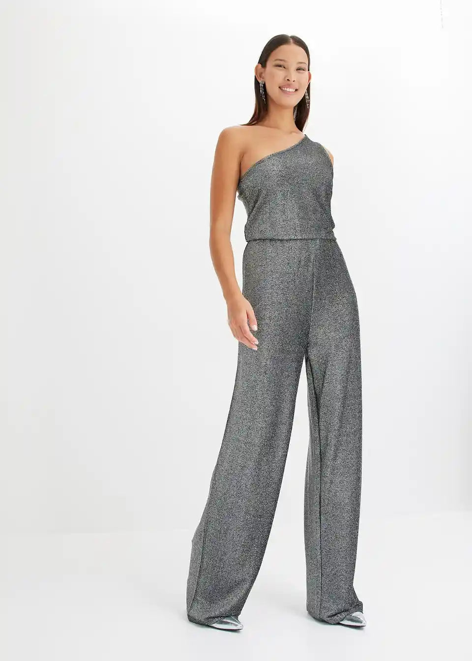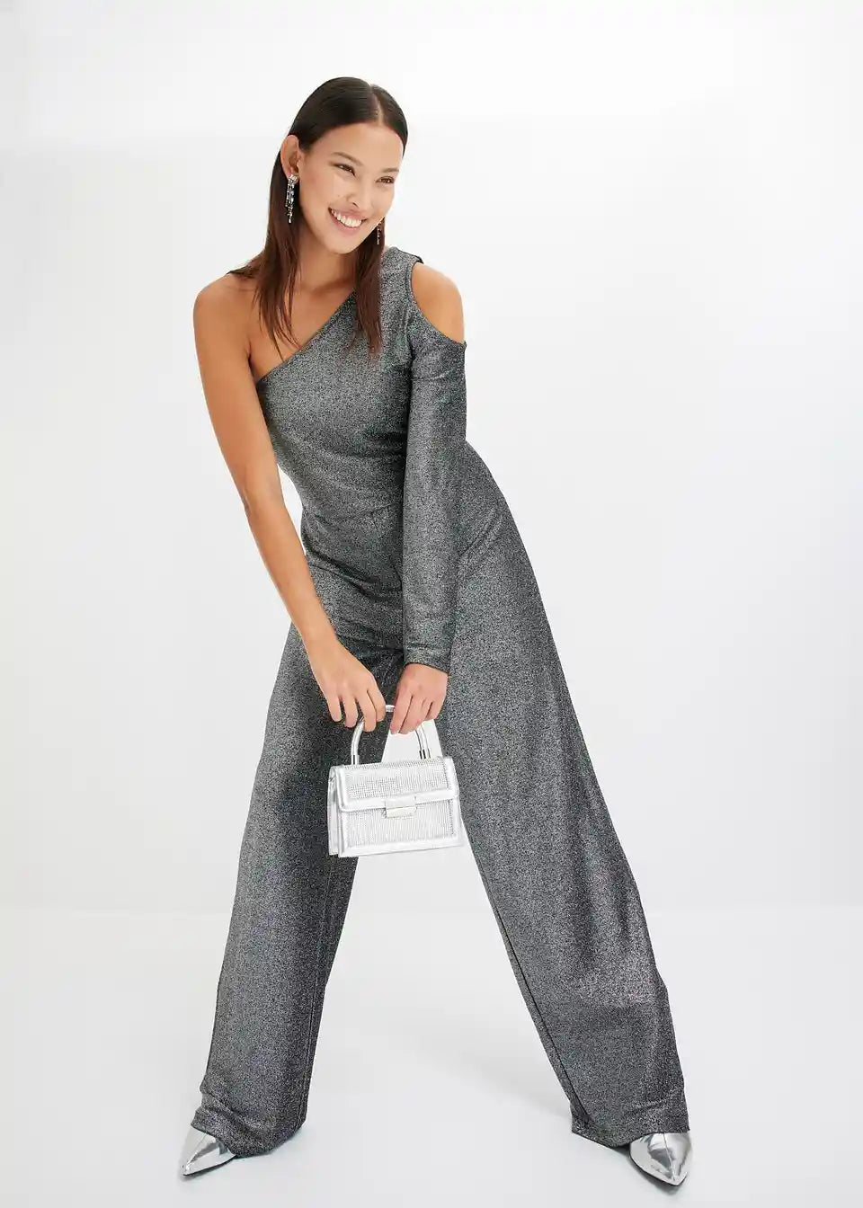 One-Shoulder Kombinezon z Bleščicami in Izrezom