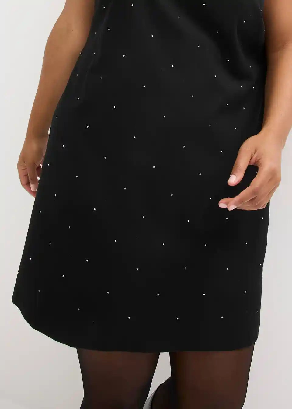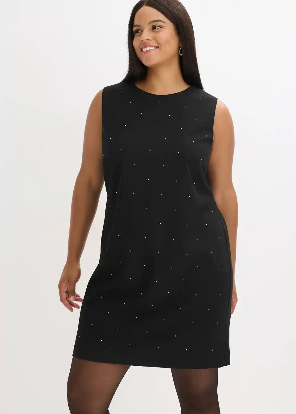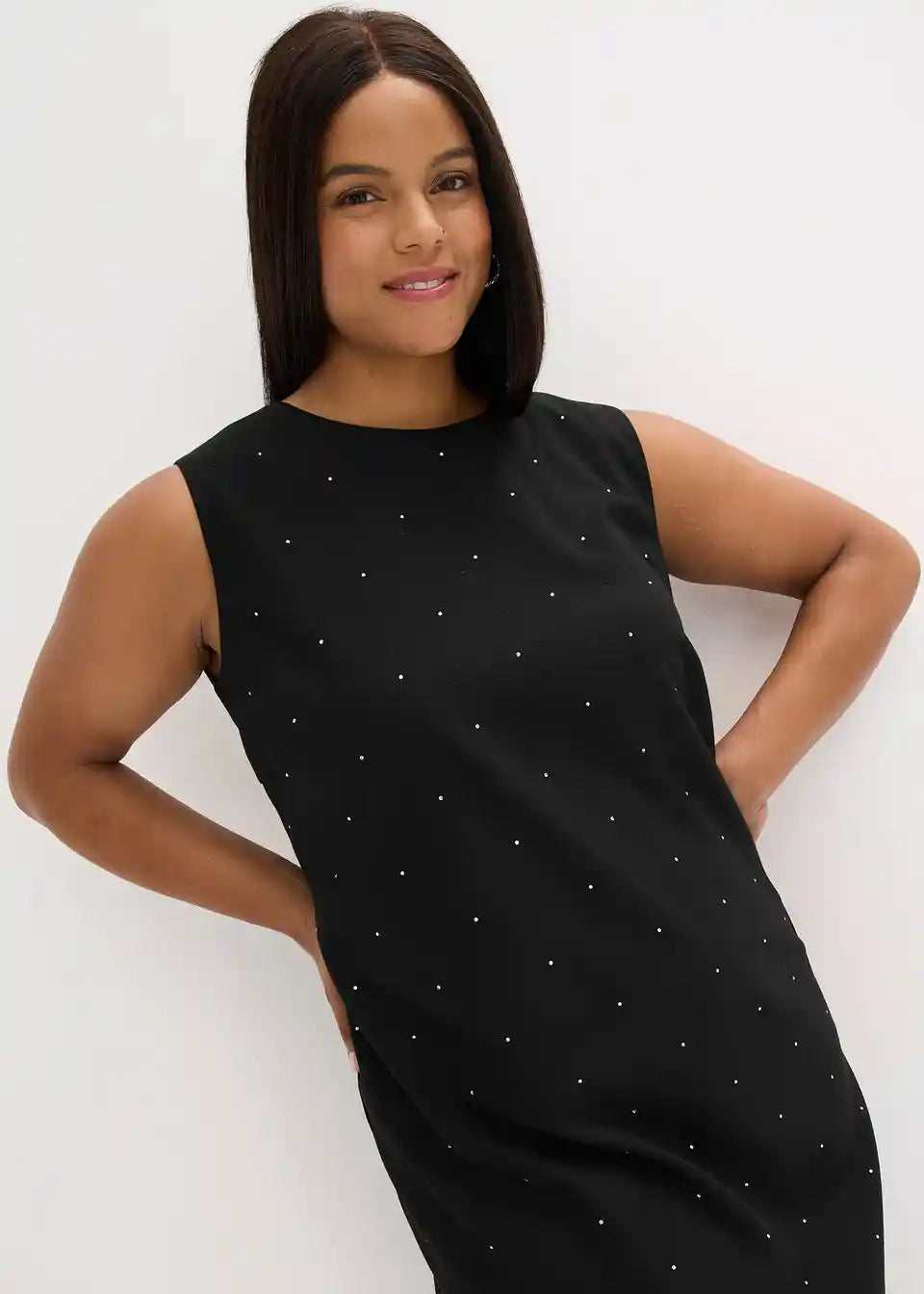 Mini obleka brez rokavov okrašena s svetlikajočimi bleščečimi kamenčki