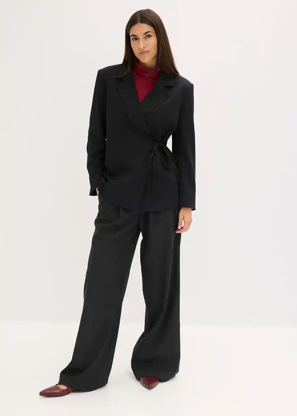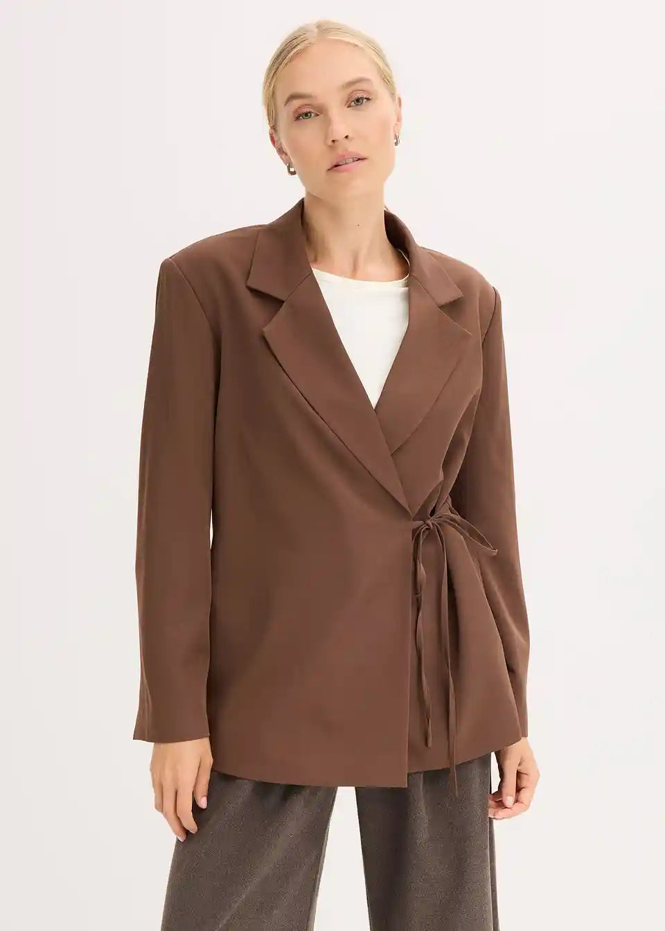 Ohlapen padajoč blazer z asimetričnim zavezovanjem v pasu