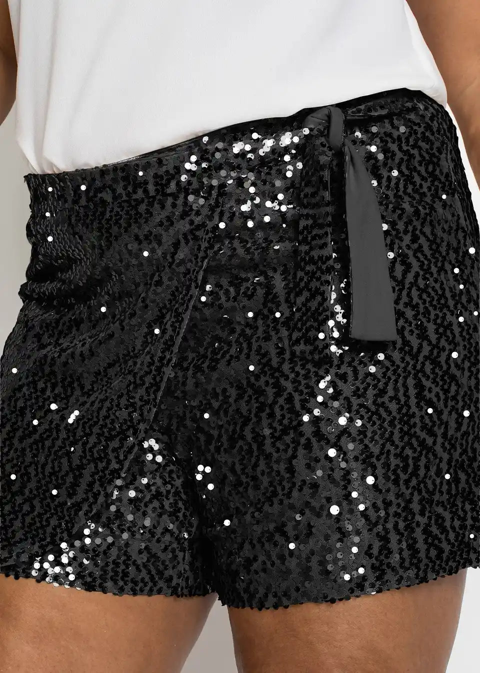 Party-Shorts v ovitem videzu z bleščicami in detajlom za zavezovanje