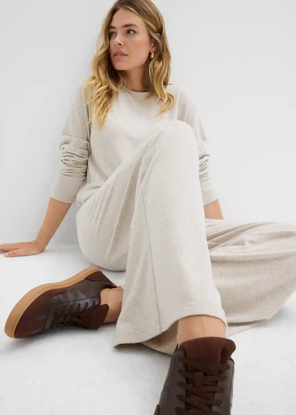 Široko krojene hlače z visoko krojenim ter z elastičnim pasom.