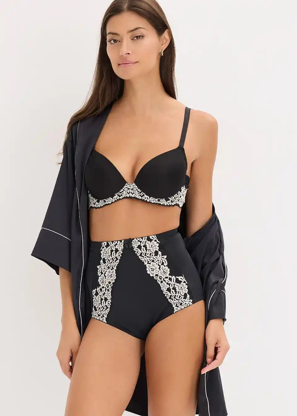 Penasto oblikovan nedrček z dvobarvno čipko in recikliranim poliamidom.