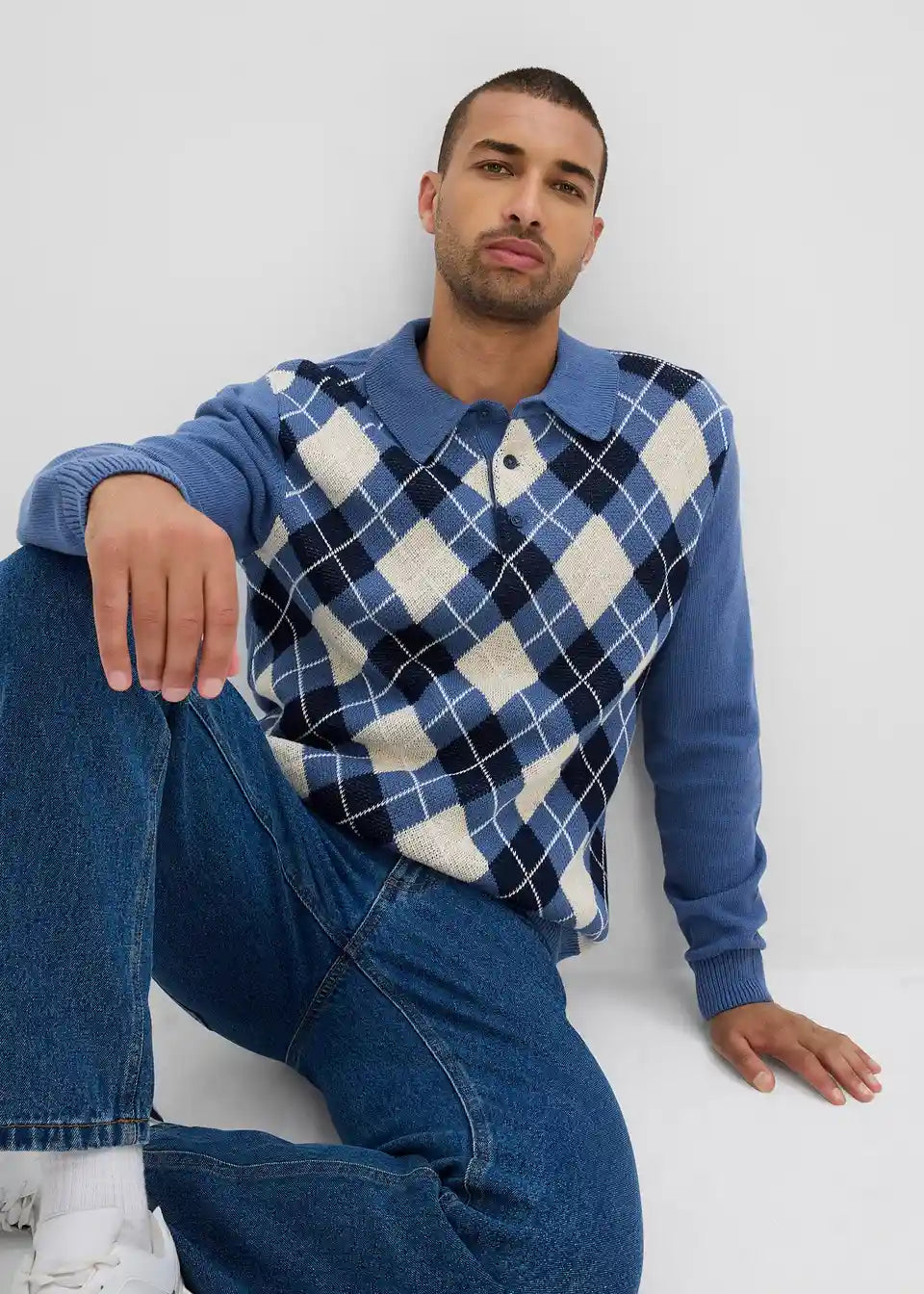Eleganten polo pulover z brezčasnim vzorcem rombov
