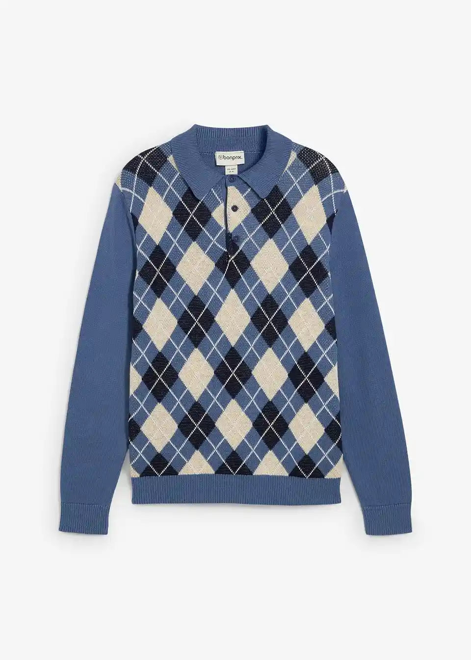 Polo pulover z rombastim vzorcem iz čistega bombaža