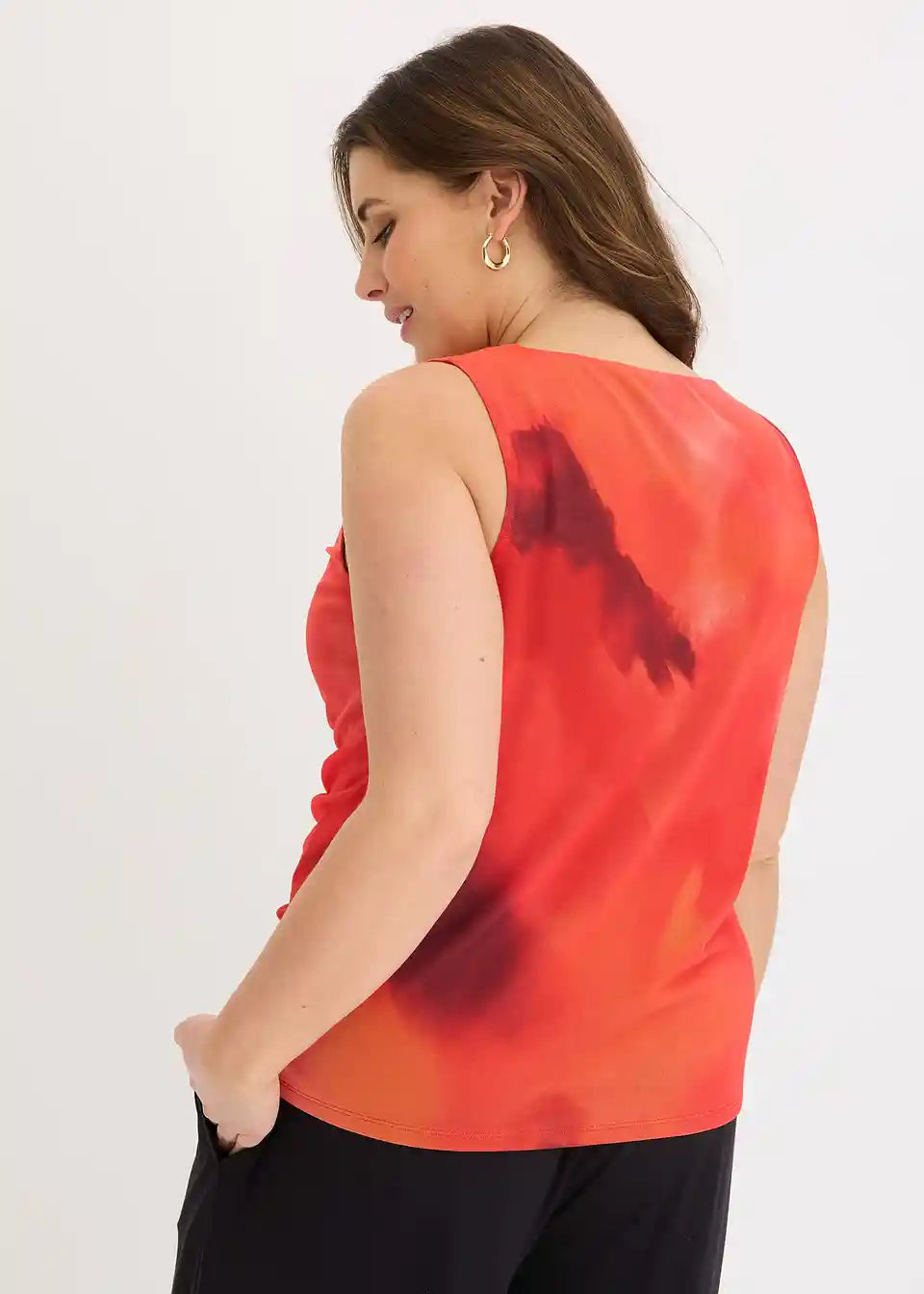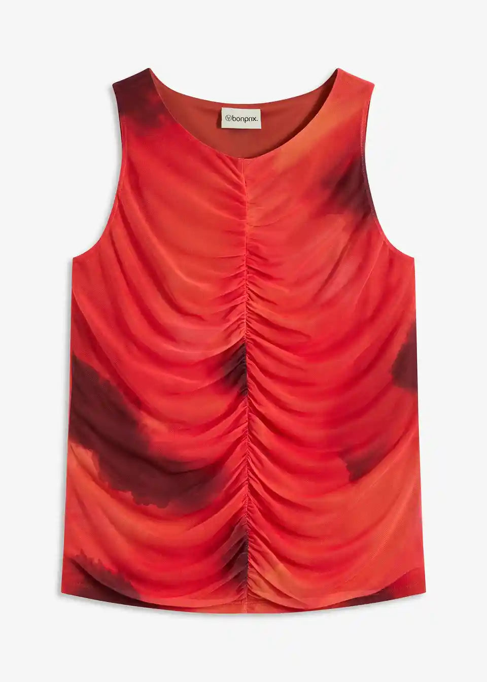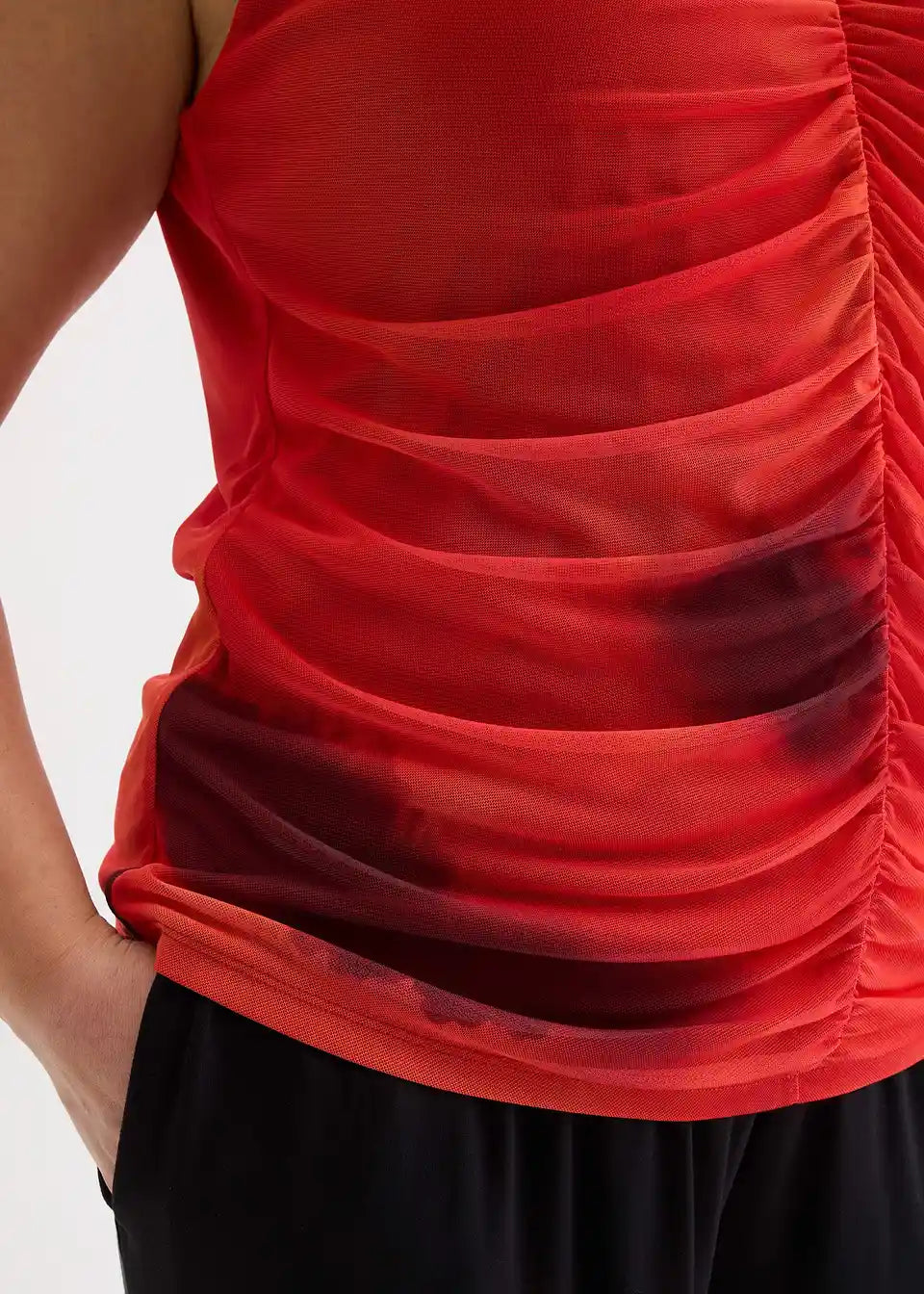 modno potiskan top iz jerseya iz mehkega mrežastega materiala z gubami spredaj