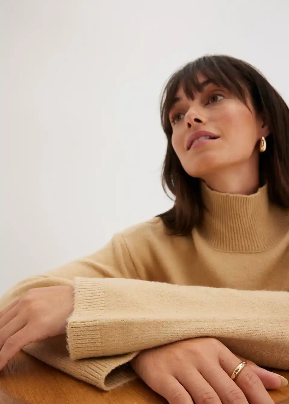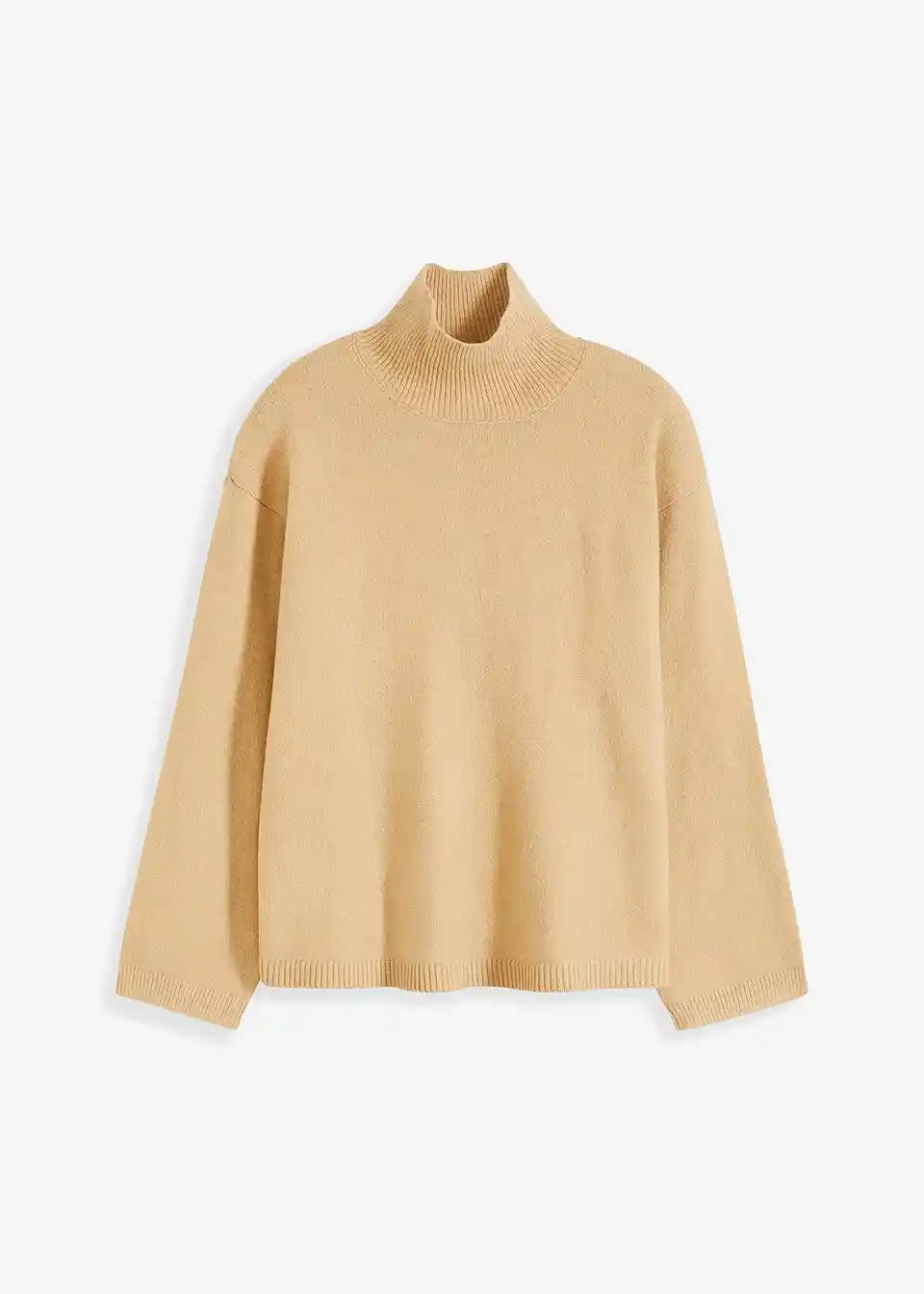 Ležeren pleten pulover s puli ovratnikom in zvončastimi rokavi