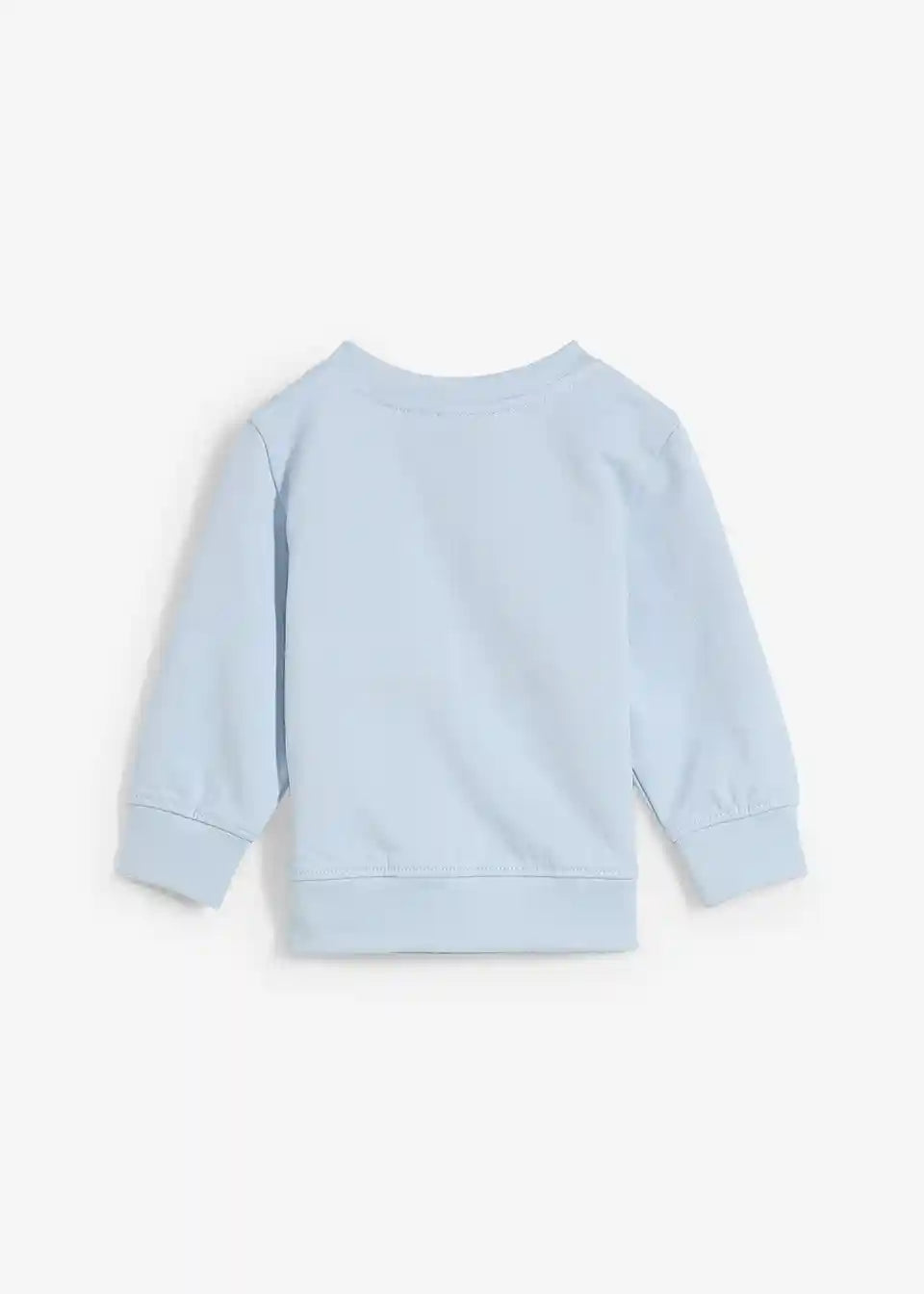 Pulover iz čiste ekološke bombažne tkanine s poletnim potiskom in spuščenimi rameni za sproščen oversize videz. Gumbi na pritisk na rami omogočajo lažje oblačenje in slačenje, medtem ko elastični rokavni zaključki zagotavljajo udobno prileganje. Ohlapen kroj, idealen za deklice in dečke.