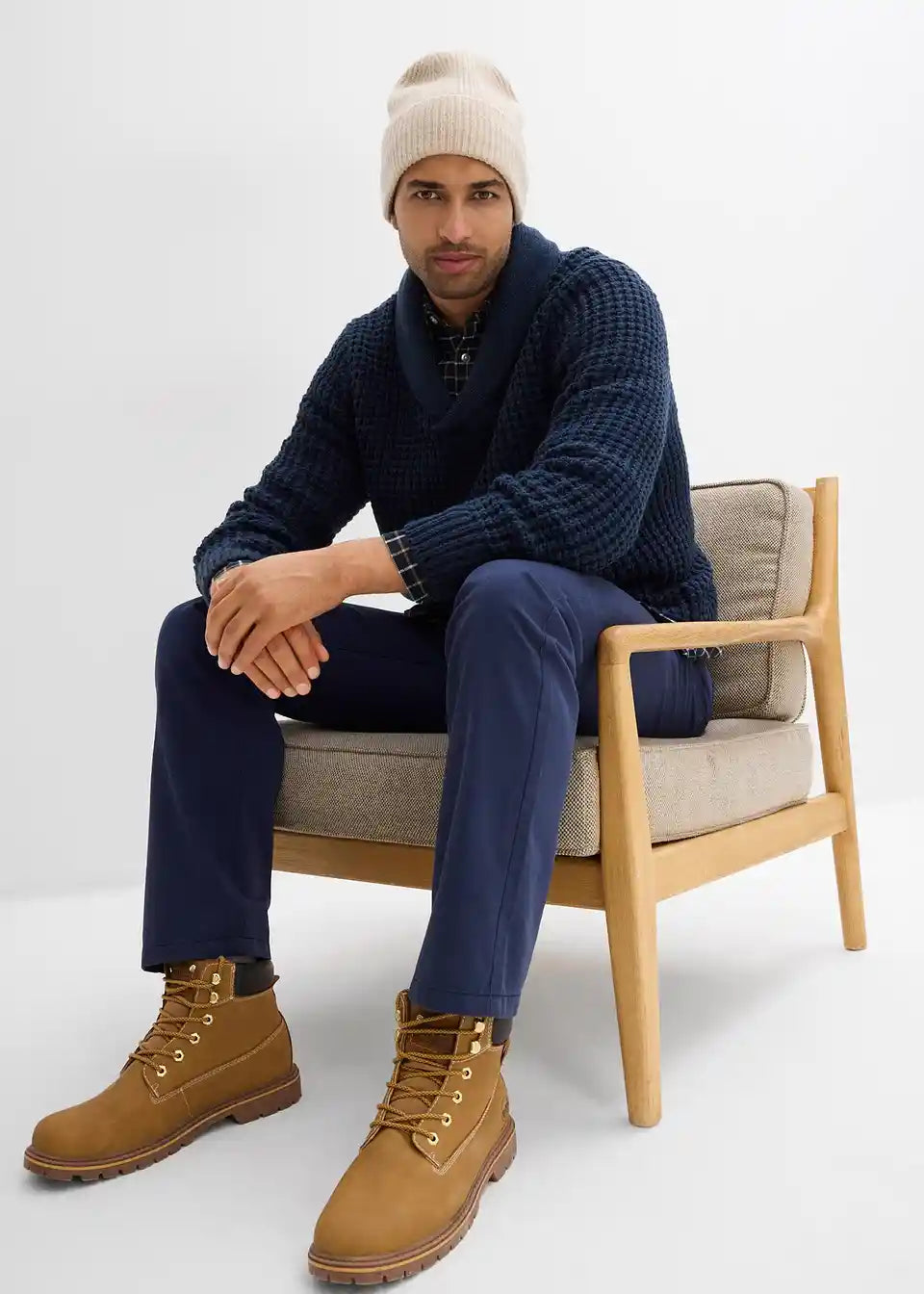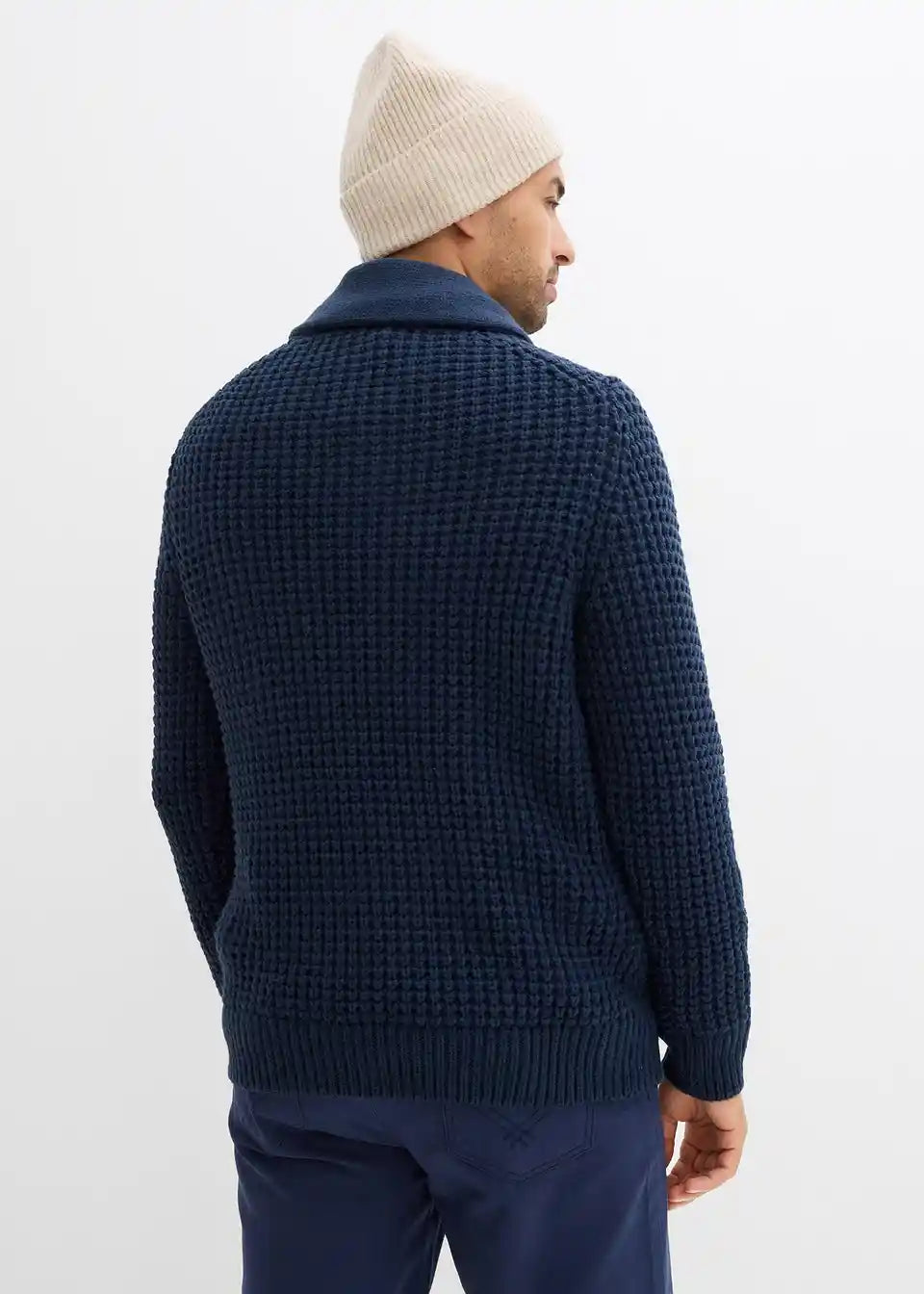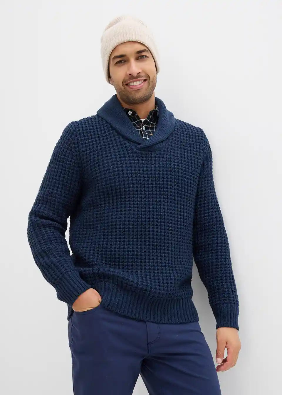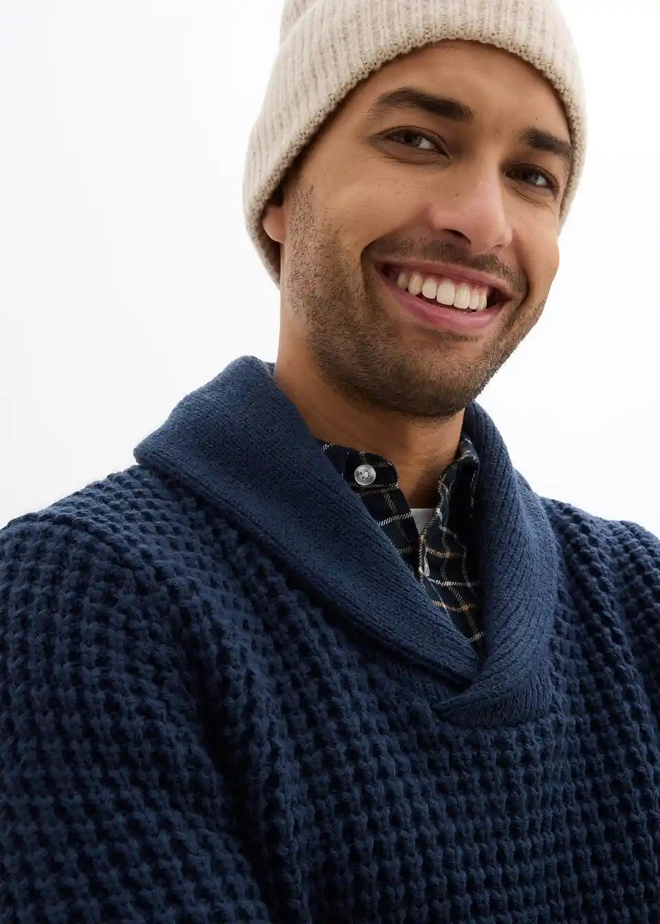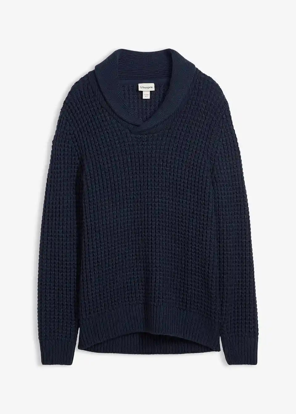 Grobo pleten pulover s šal ovratnikom s satasto strukturo
