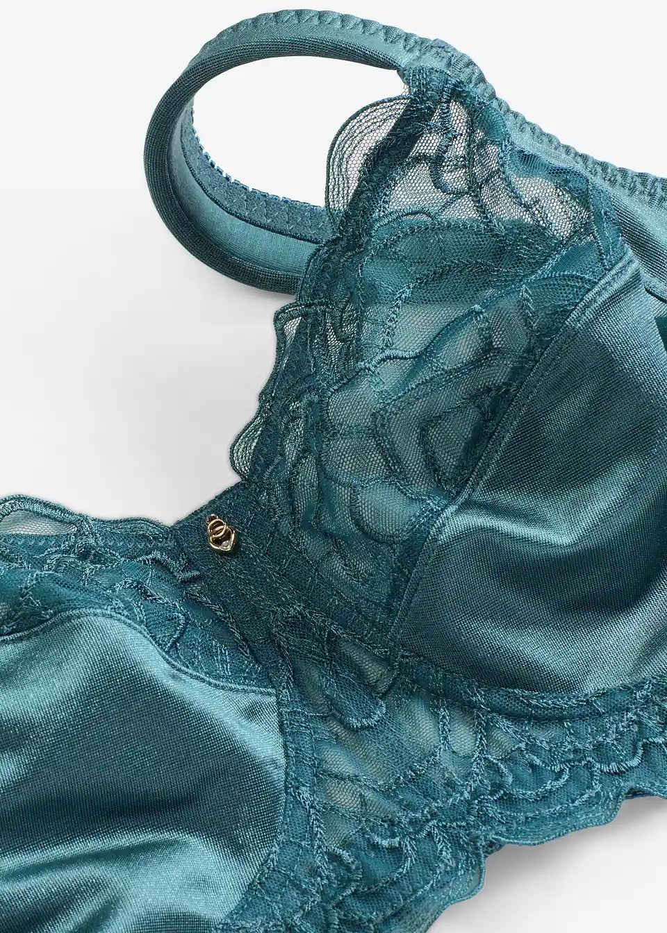 Material:zgornji material: 84% poliamid (recikliran), 16% elastan, podloga: 100% bombaž, čipka: 66% poliester, 34% poliamid