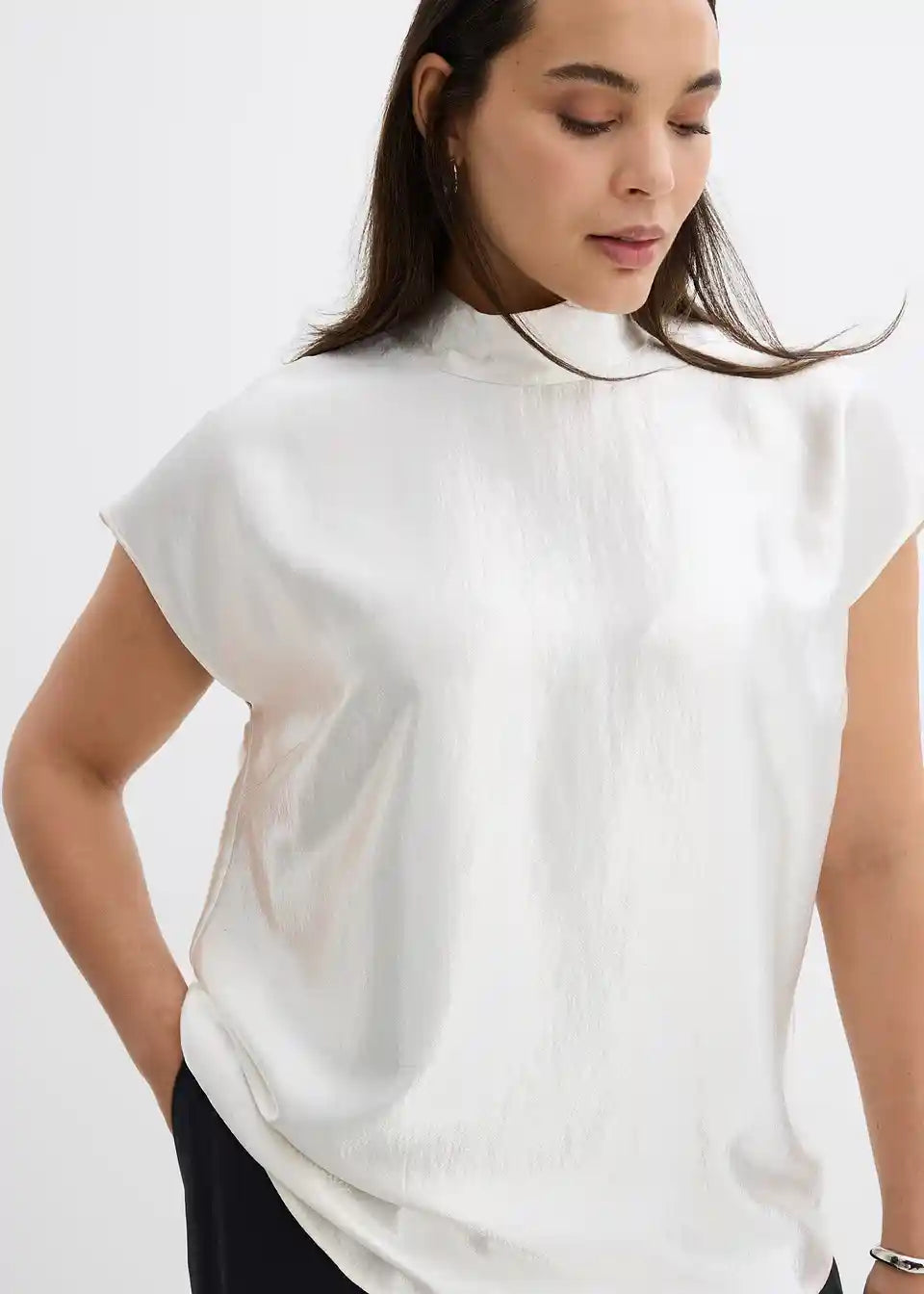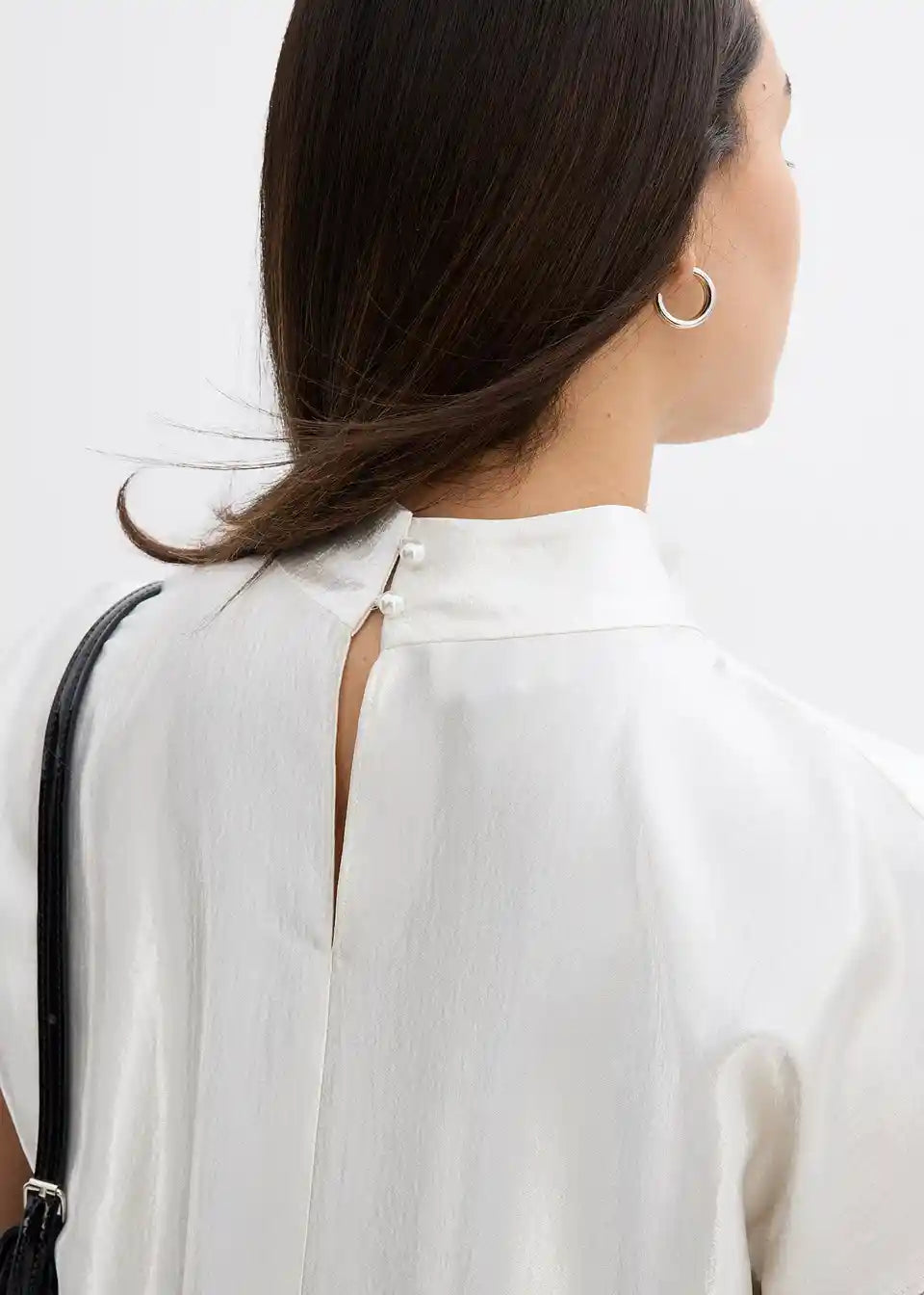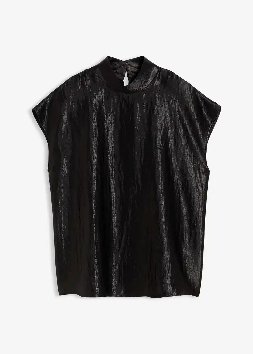 Bluza brez rokavov iz padajočega materiala z zapenjanjem z gumbi zadaj